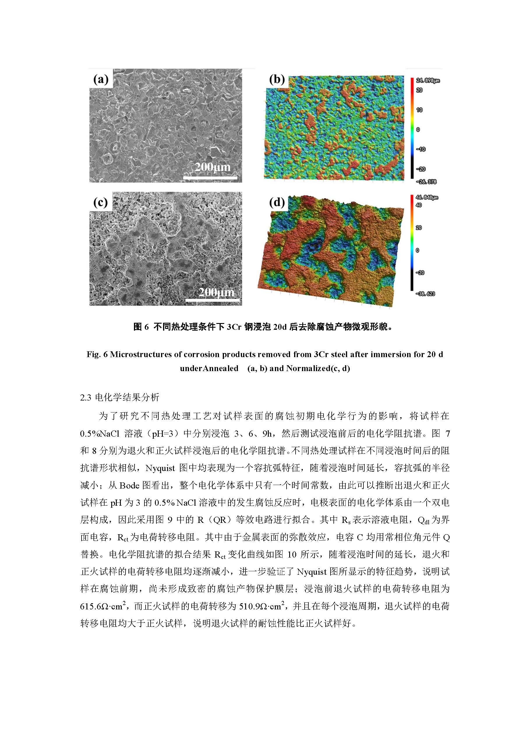 两种热处理工艺对 3Cr 钢腐蚀行为影响及机理研究