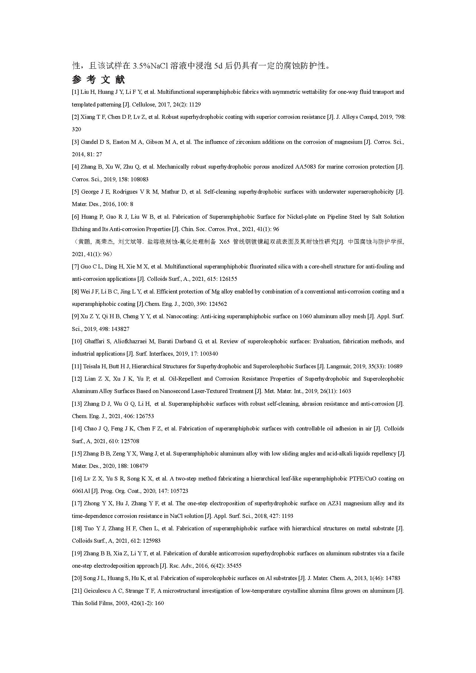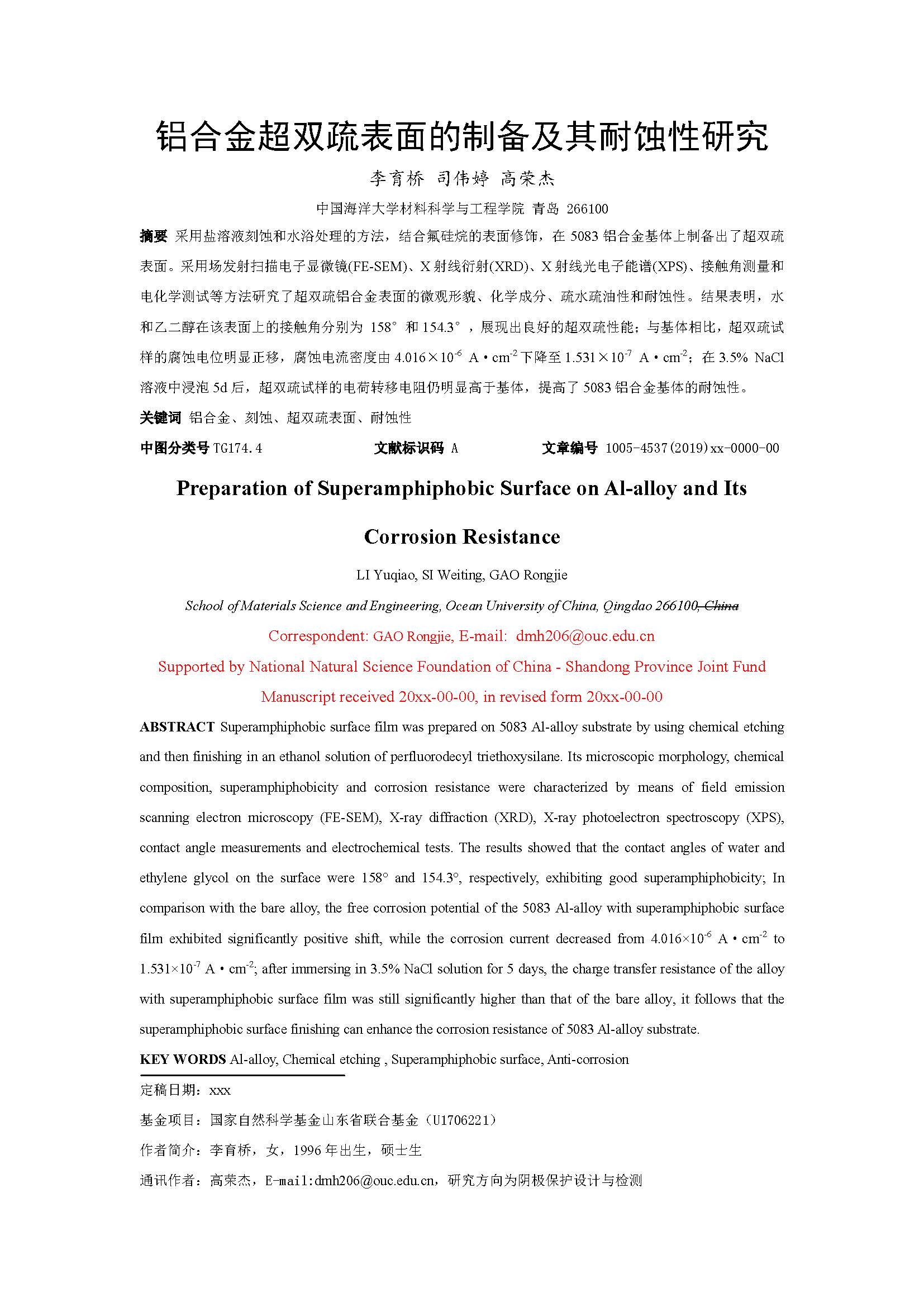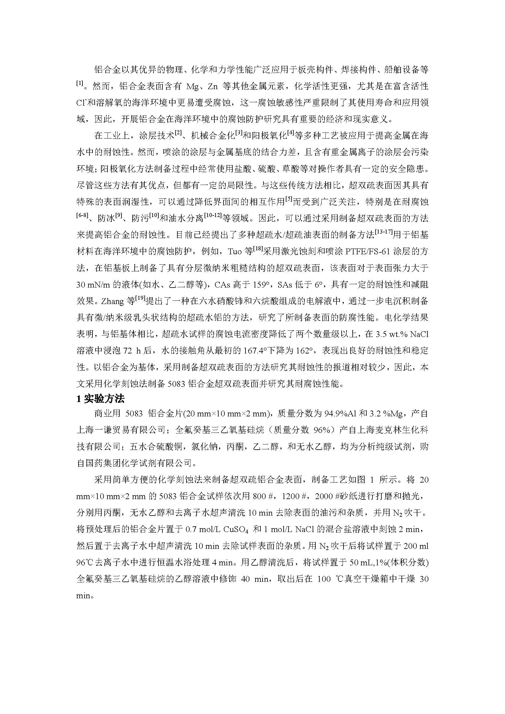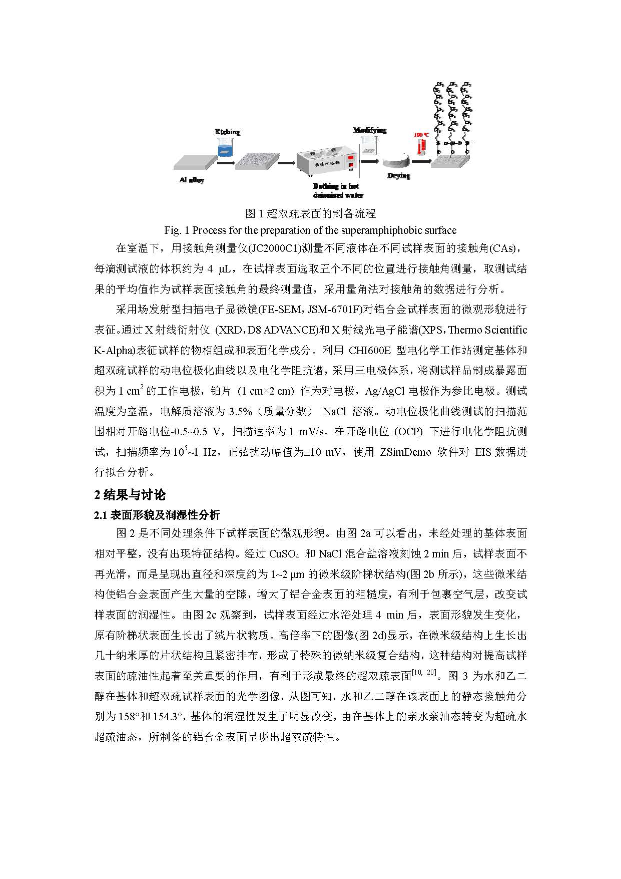 铝合金超双疏表面的制备及其耐蚀性研究