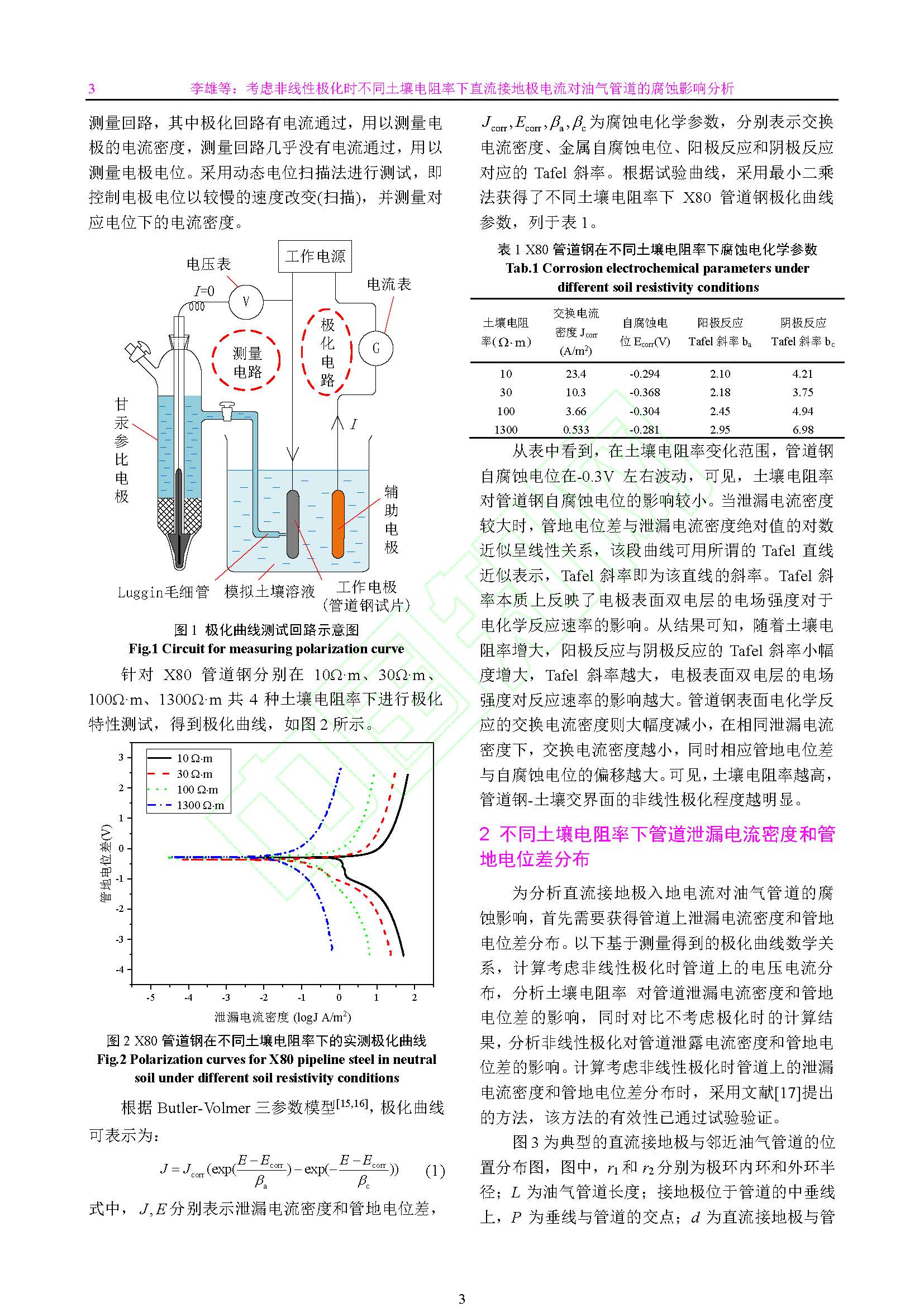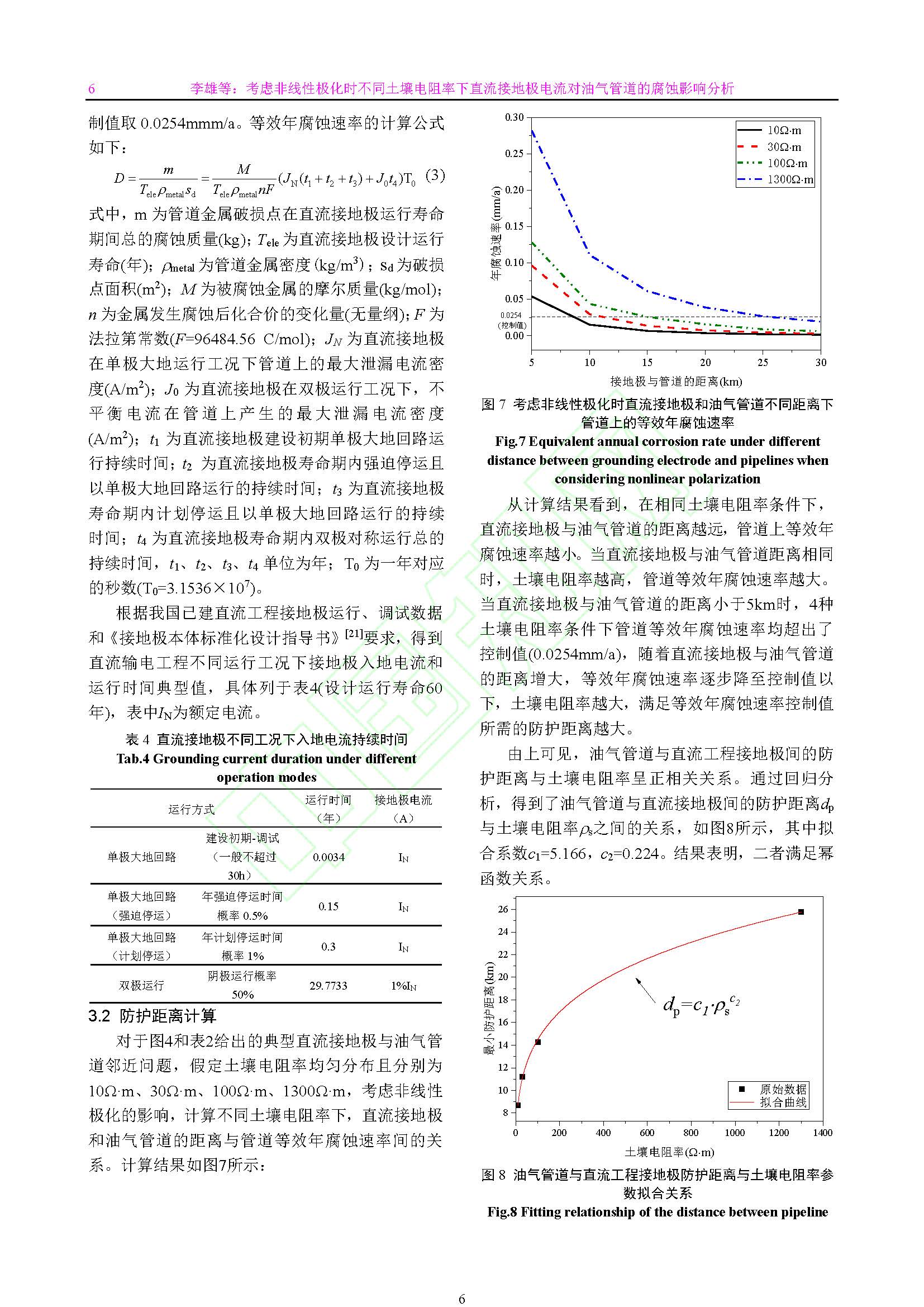 考虑非线性极化时不同土壤电阻率下直流接地极电流对油气管道的腐蚀影响分析