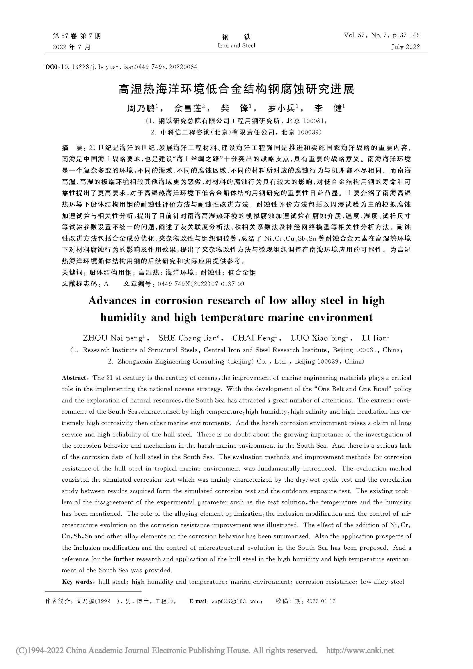 高湿热海洋环境低合金结构钢腐蚀研究进展