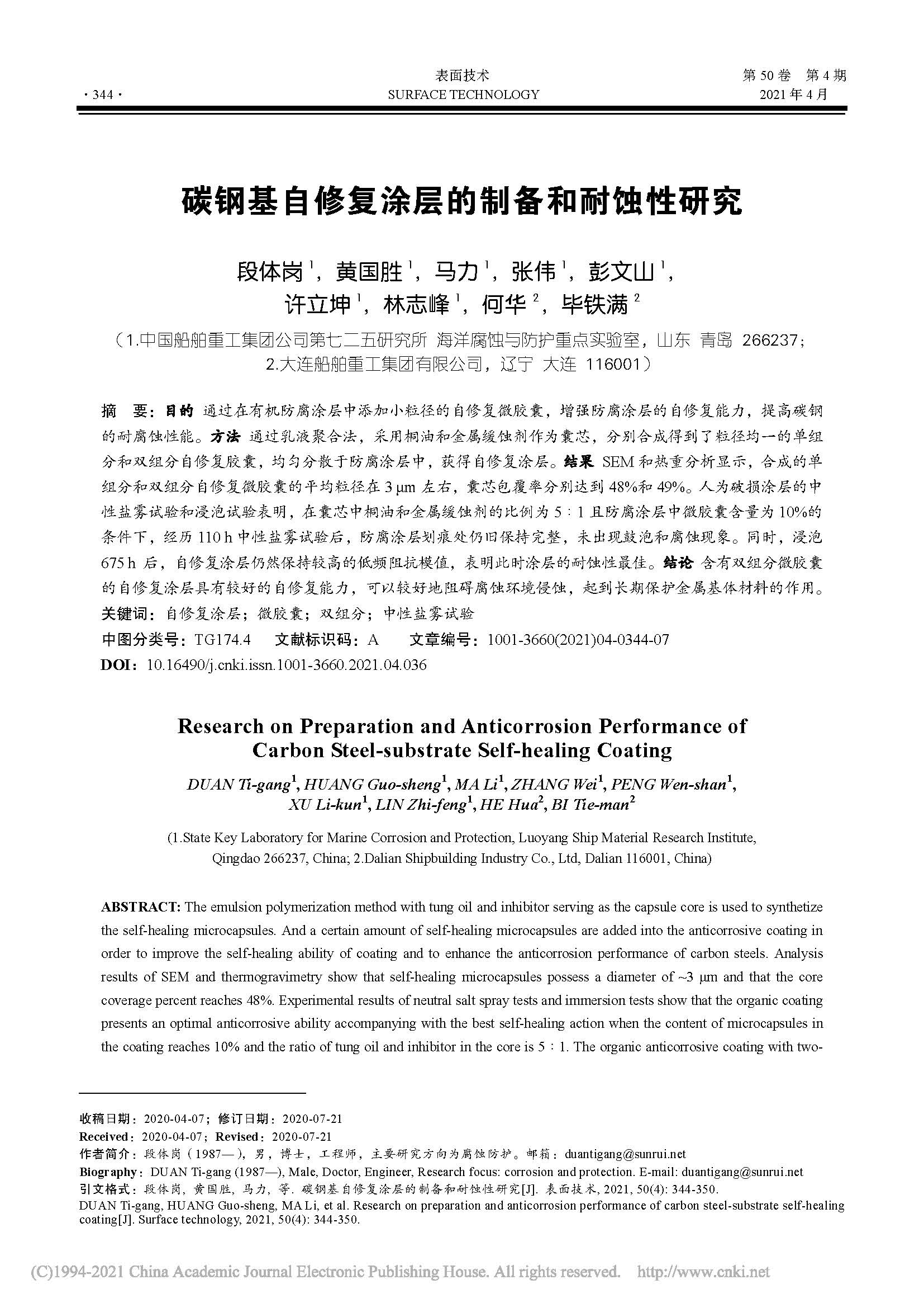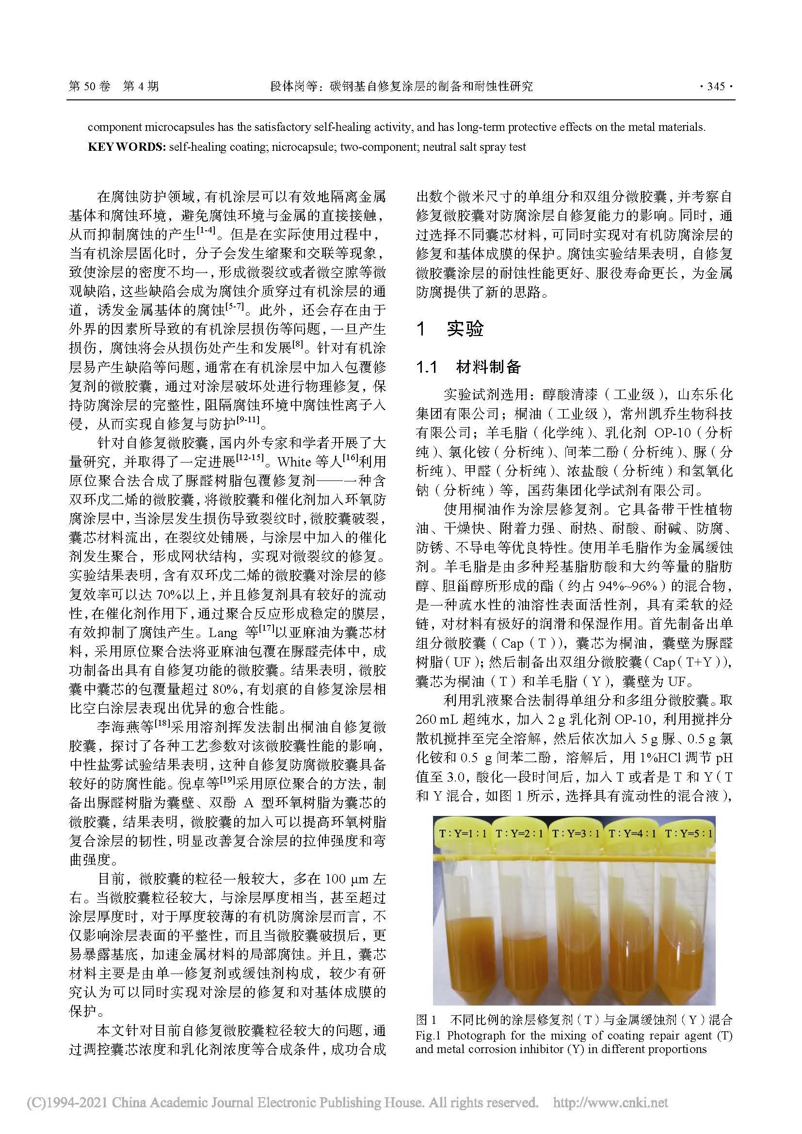 碳钢基自修复涂层的制备和耐蚀性研究