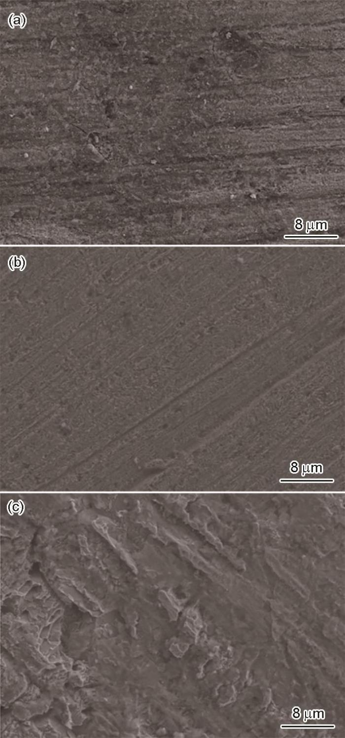 图7为B30铜镍合金在不同流速海水中浸泡20 d的SEM图。由图可见,相较0 m/s的海水,0.8 m/s的海水中成膜更加致密完整。当流速达到2.0 m/s时,试样的表面产生了冲刷作用,从而使表面膜层发生破裂,因此B30铜镍合金在流速为2.0 m/s的海水中相比0.8 m/s成膜质量下降,这也与表3所示的不同流速海水下的电化学阻抗拟合数据中nf值的变化相符。流动的海水会对试样表面产生冲刷作用,这也导致在DO为14.0 mg/kg的静止海水中11 d左右就形成了较为致密的膜层,而在流速为0.8 m/s的海水中在15 d左右才形成了致密的膜层。