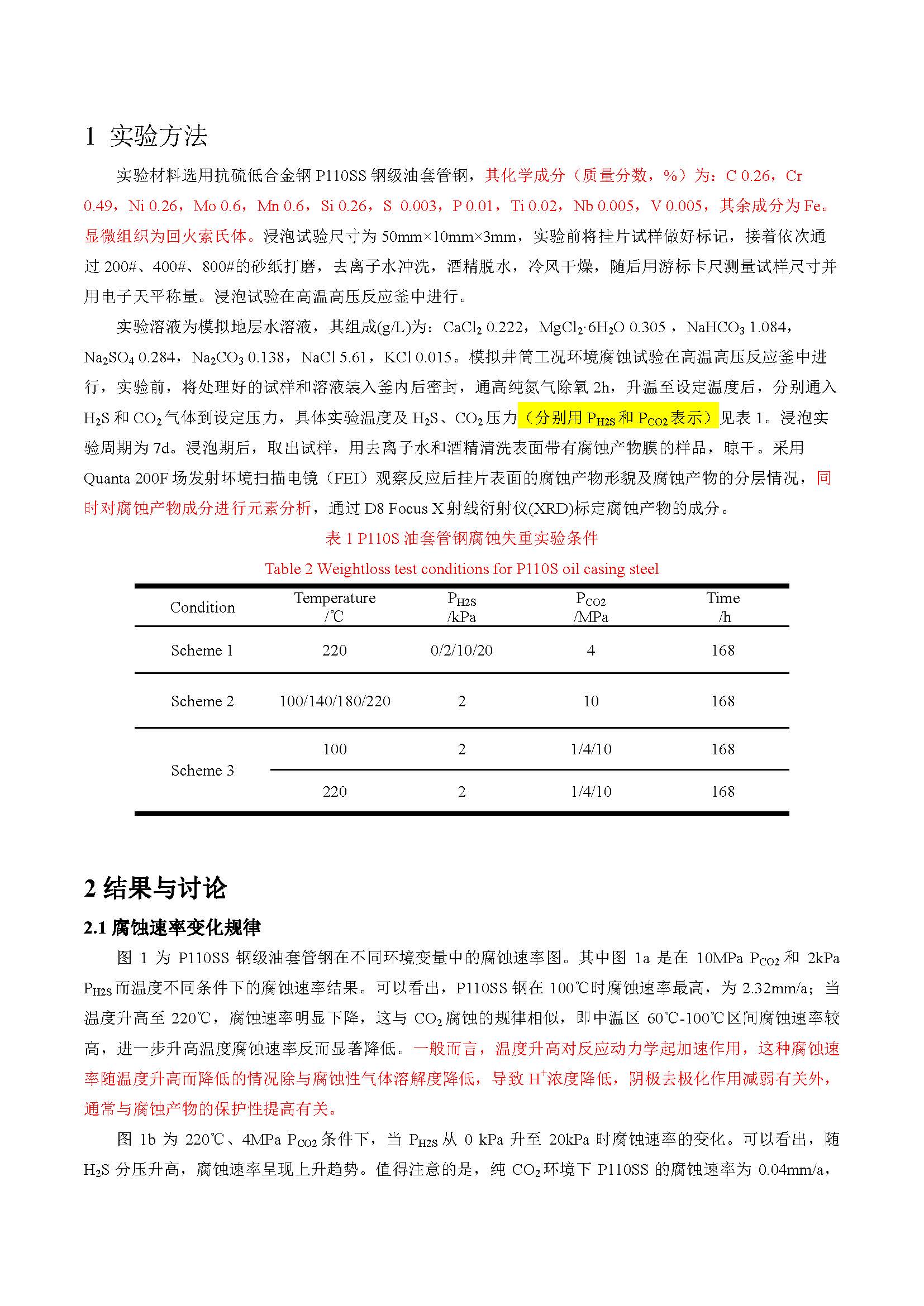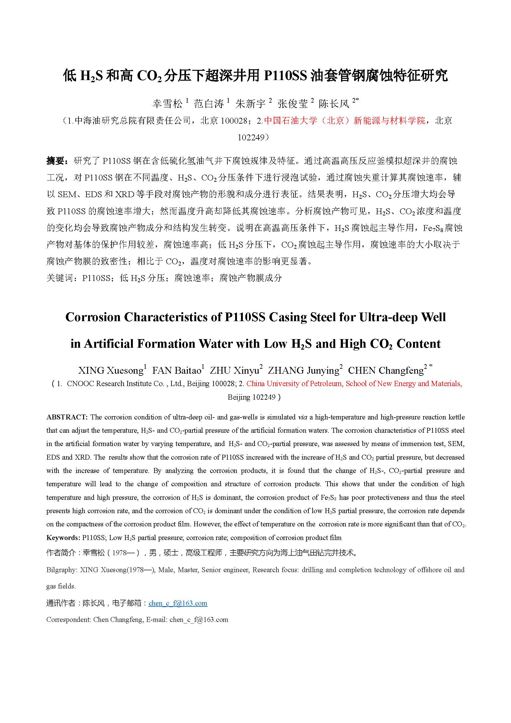 低 H2S 和高 CO2分压下超深井用 P110SS 油套管钢腐蚀特征研究
