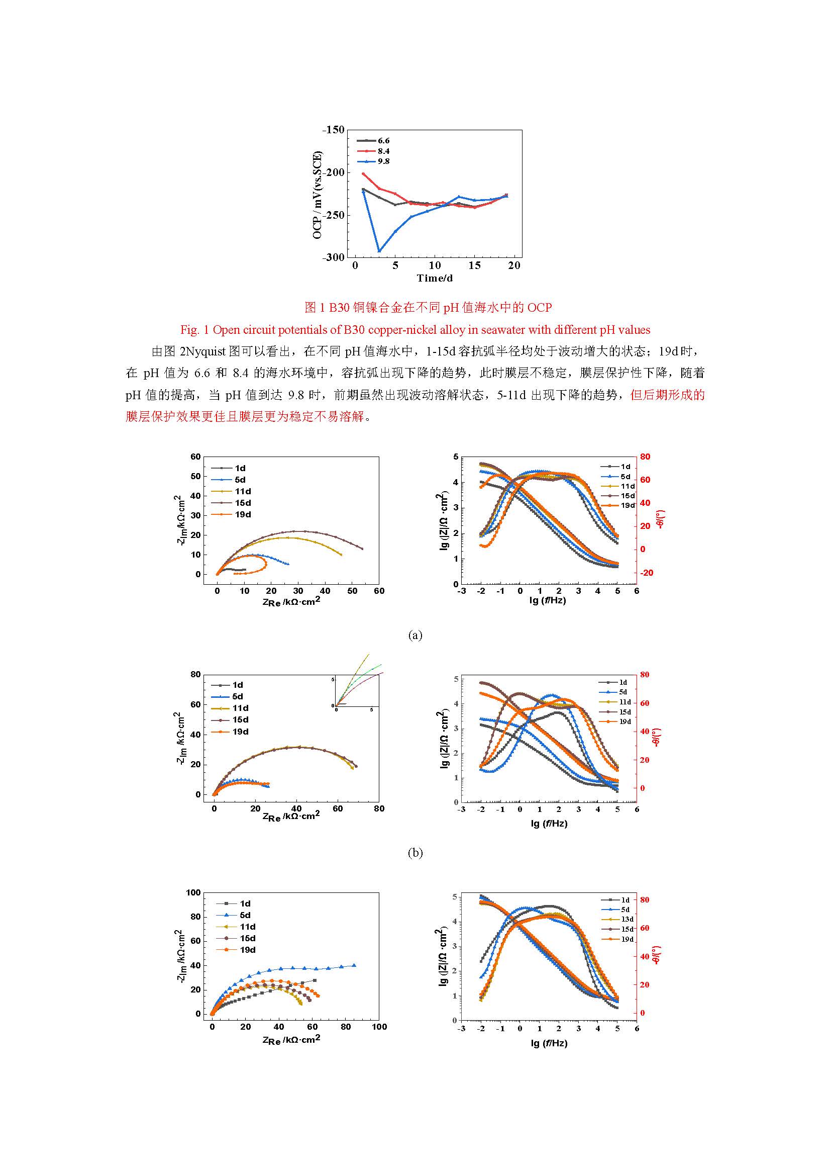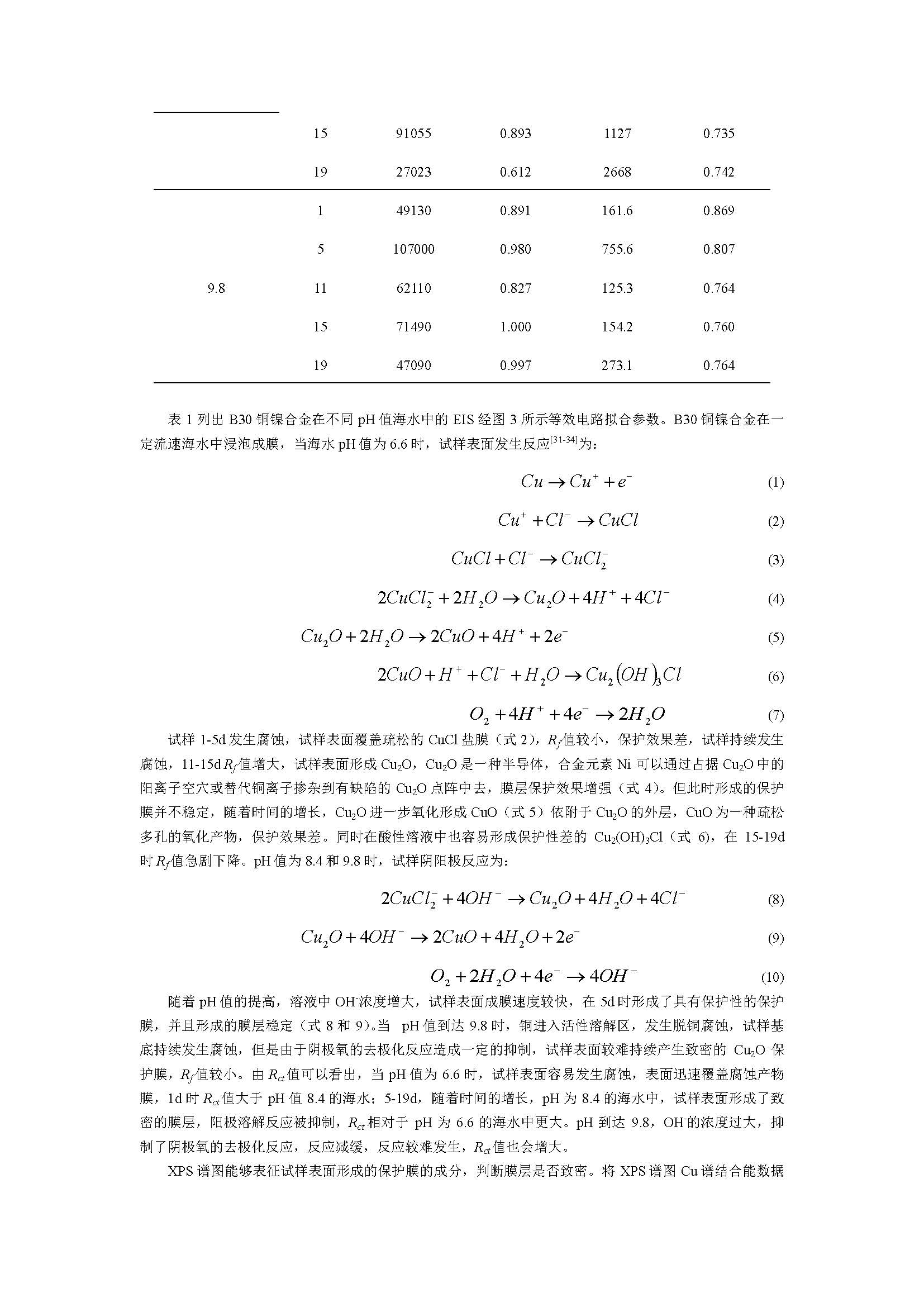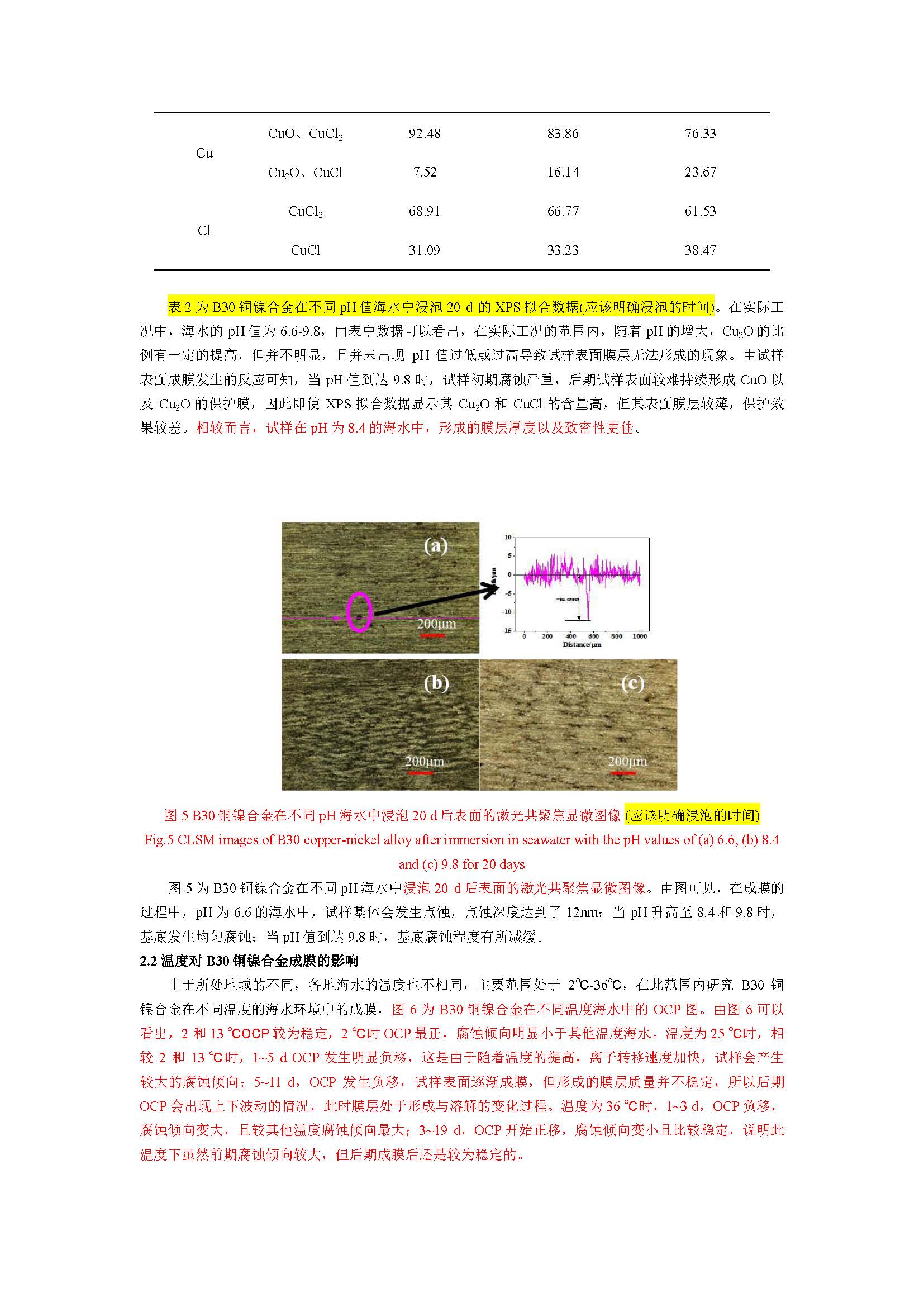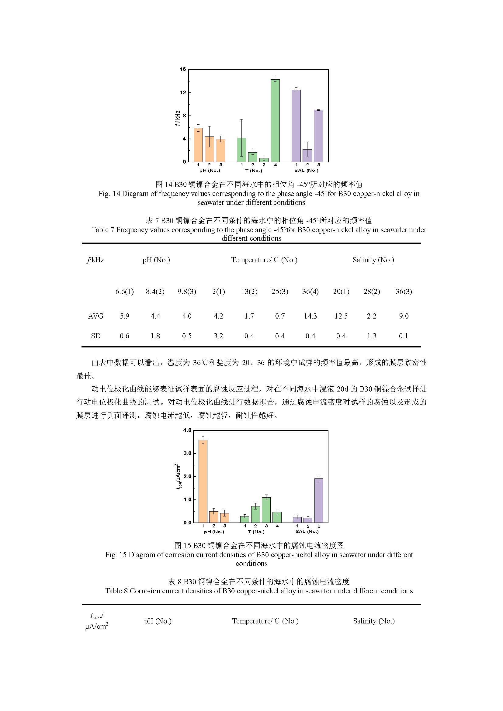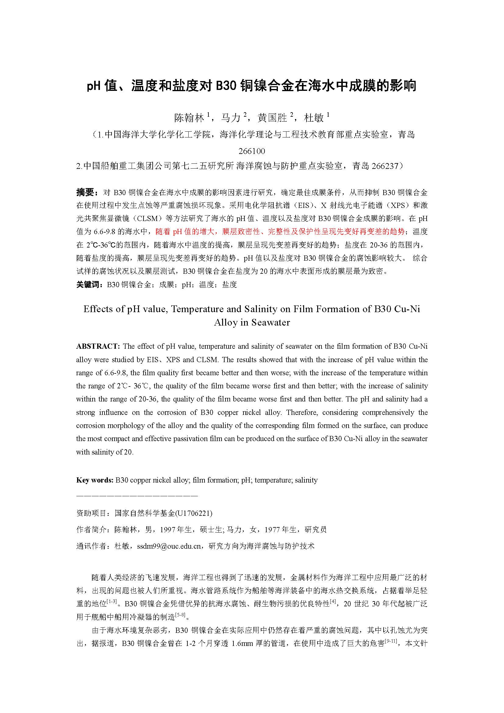pH 值、温度和盐度对 B30 铜镍合金在海水中成膜的影响