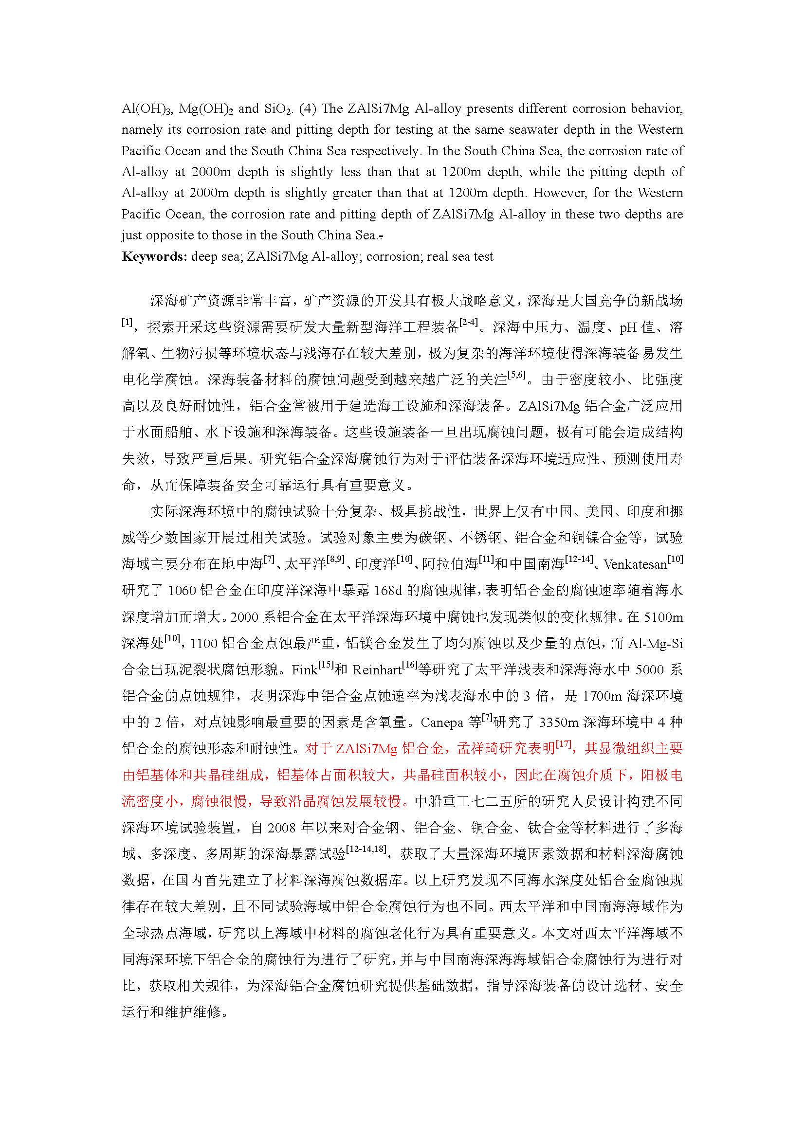 标签: 深海, ZAlSi7Mg铝合金, 腐蚀, 实海试验
