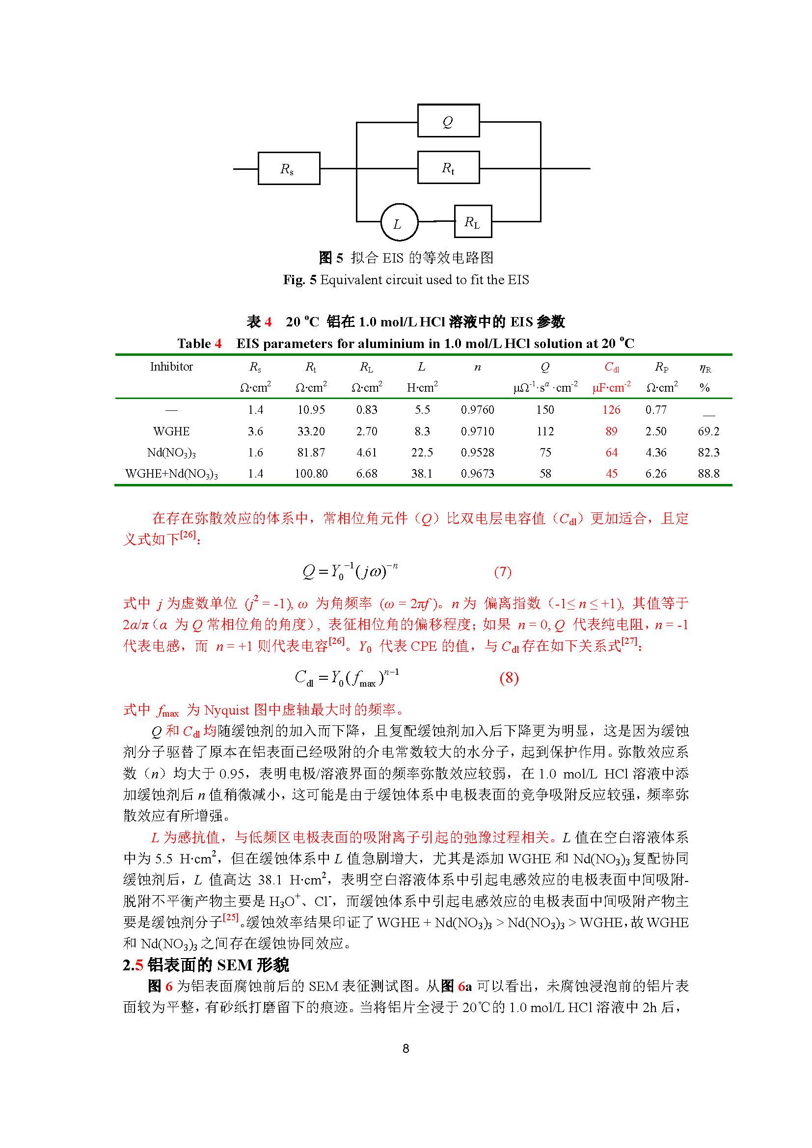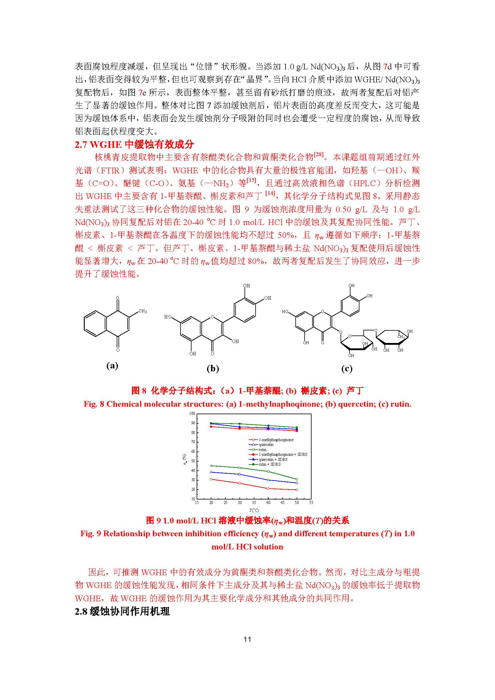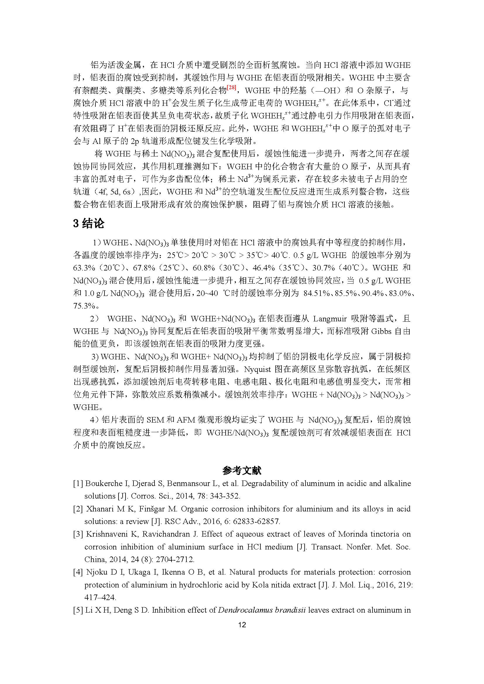 核桃青皮提取物与Nd(NO3)3对铝在HCl溶液中的缓蚀协同效应