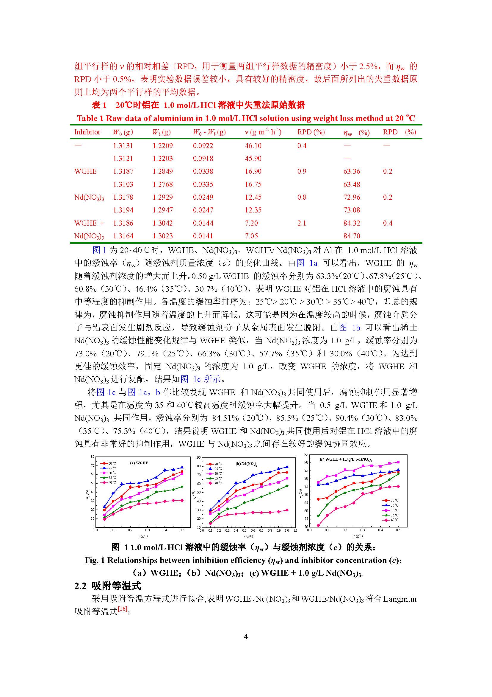 核桃青皮提取物与 Nd(NO3)3对 Al 在 HCl 溶液中的缓蚀