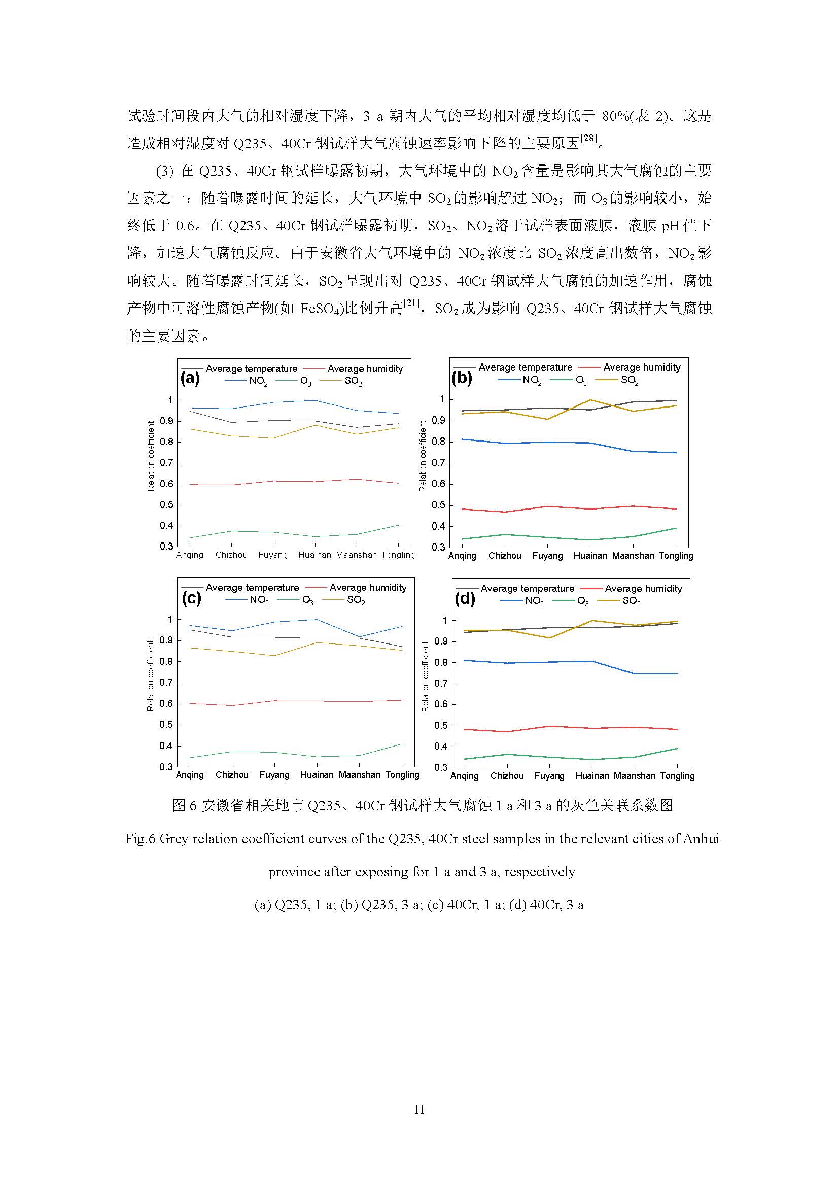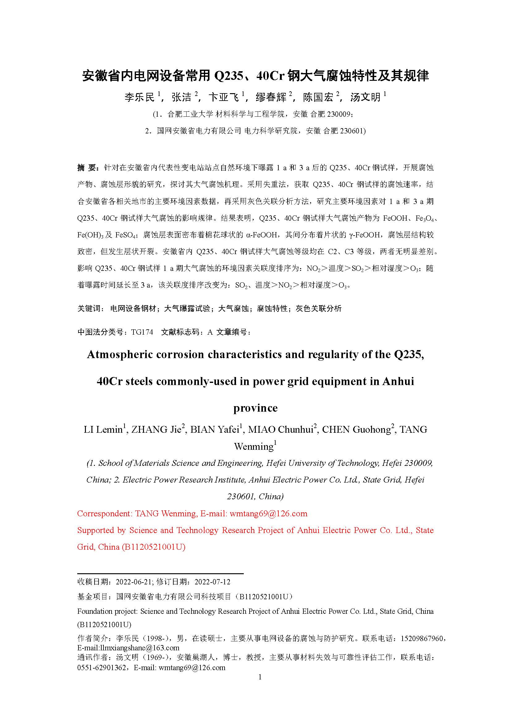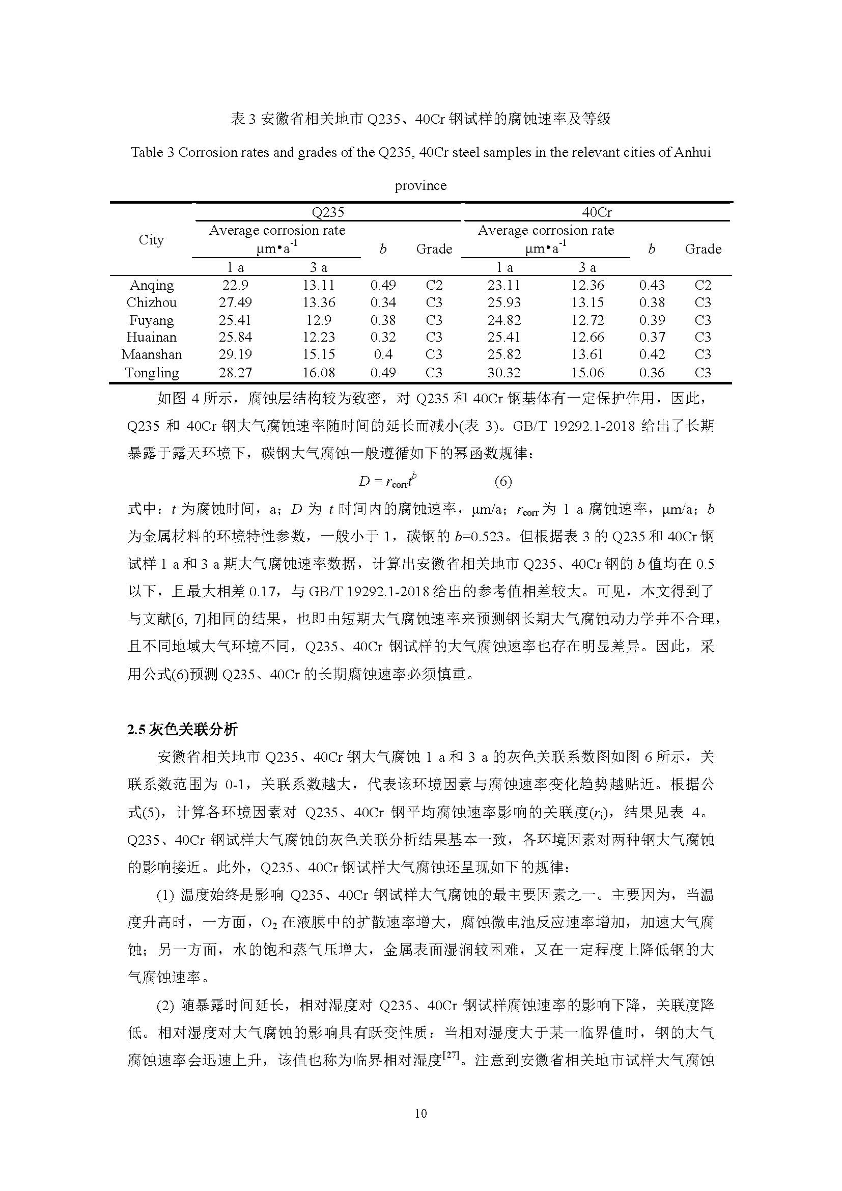 安徽省内电网设备常用Q235、40Cr钢大气腐蚀特性及其规律