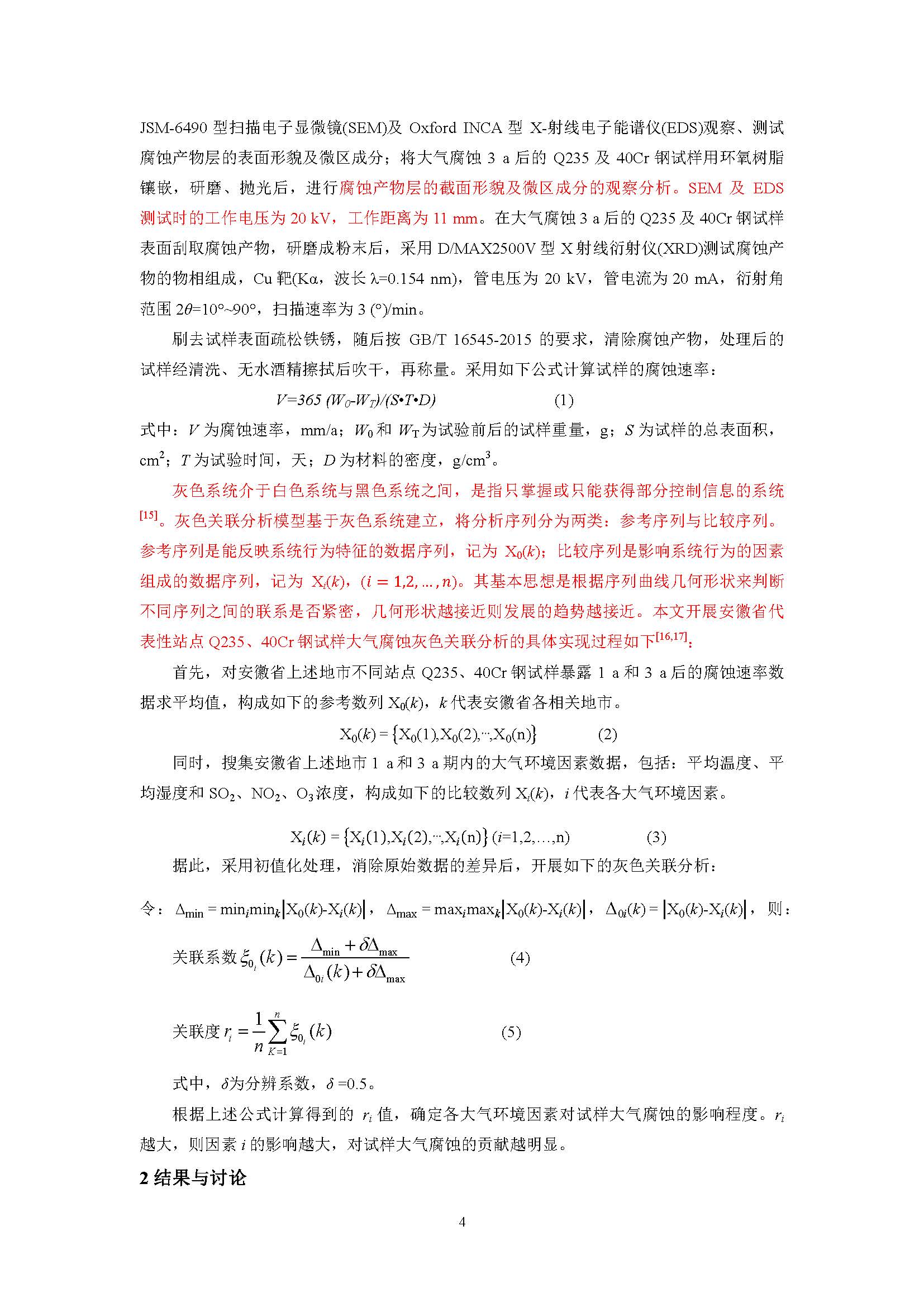 安徽省内电网设备常用 Q235、40Cr 钢大气腐蚀特性及其
