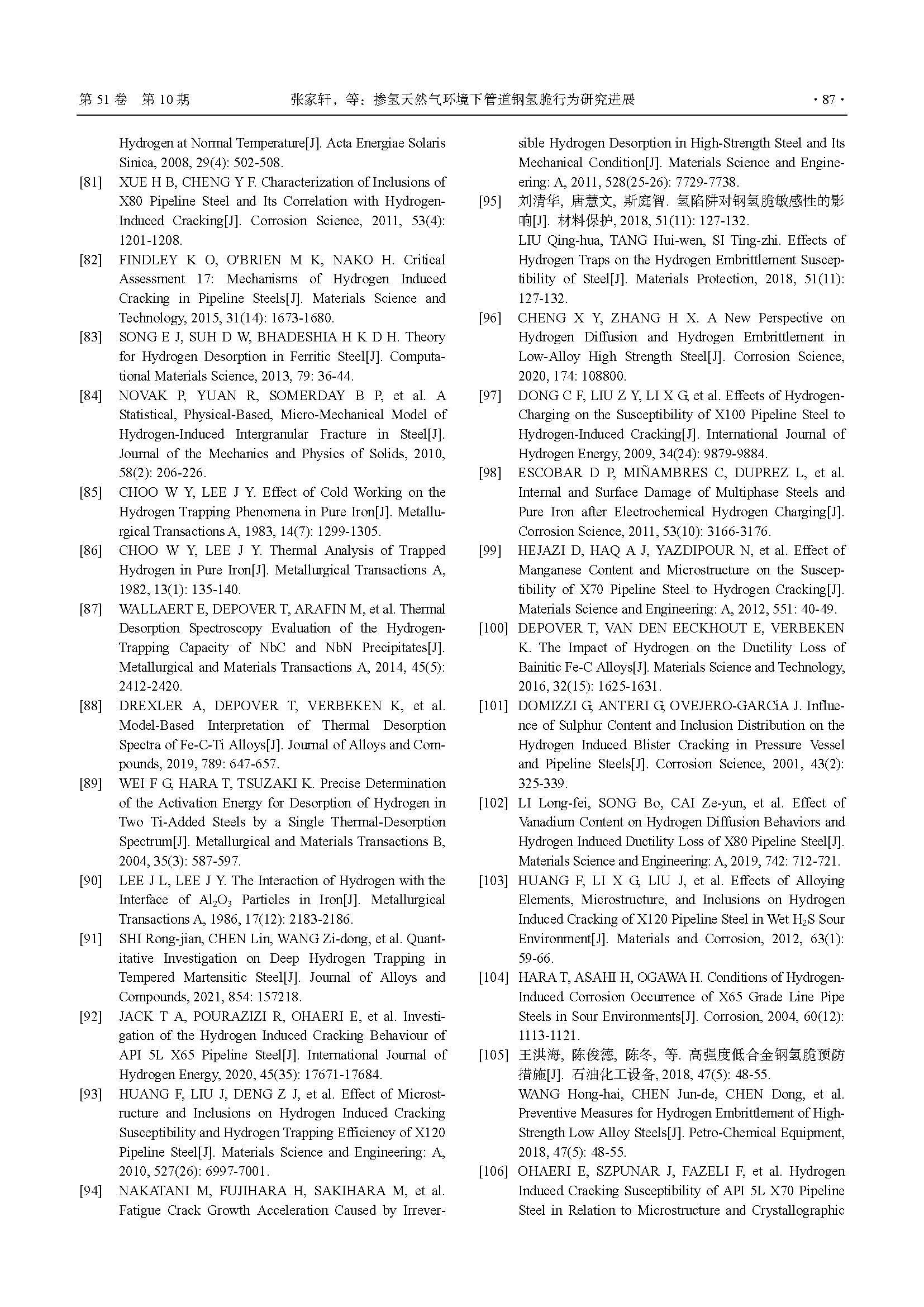 掺氢天然气环境下管道钢氢脆行为研究进展