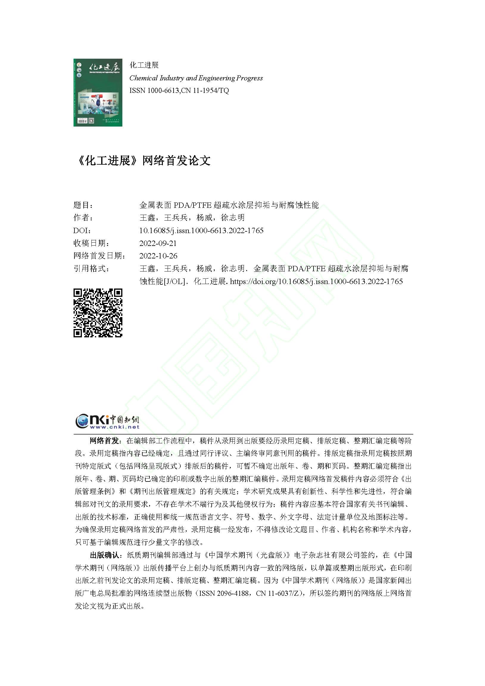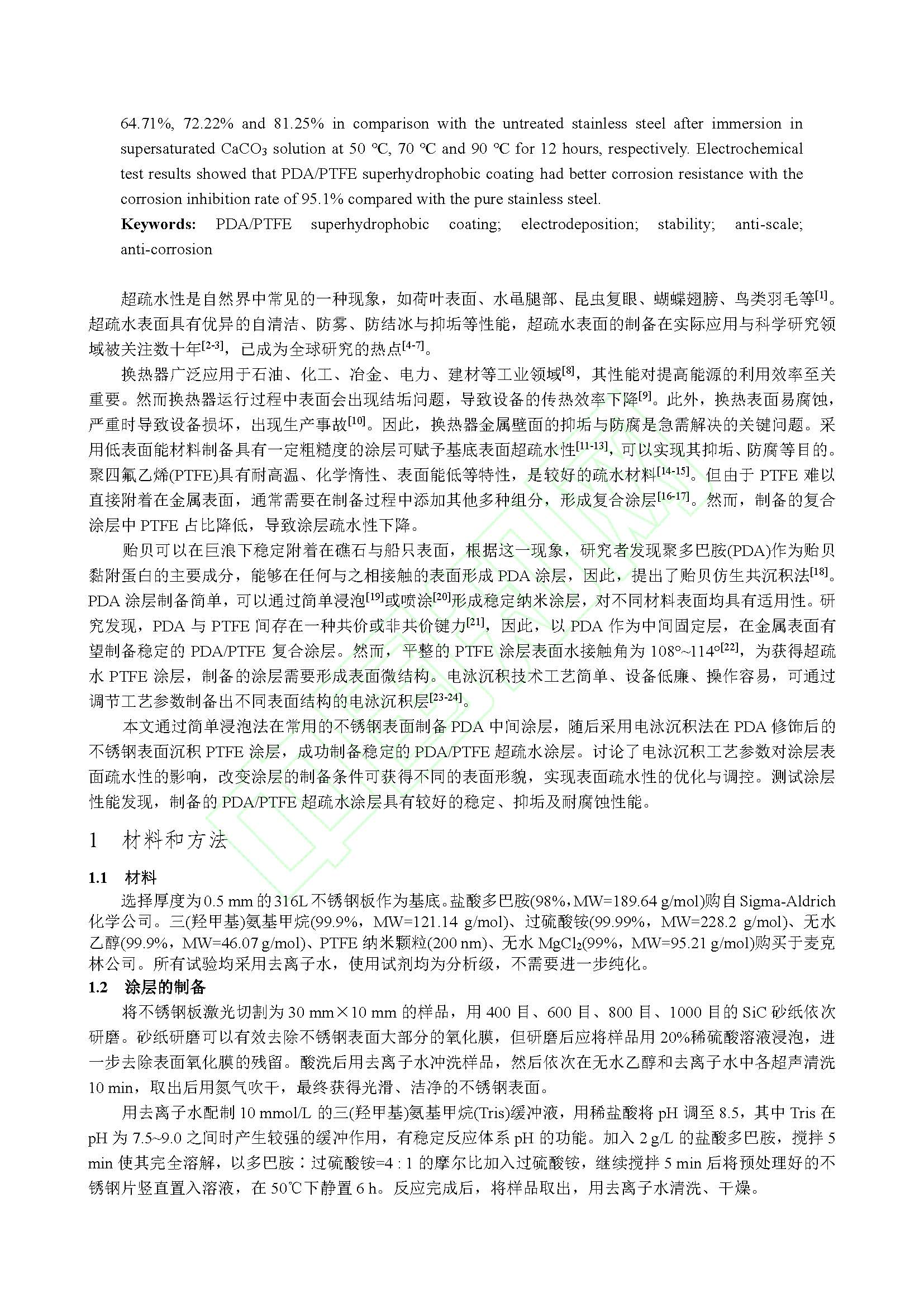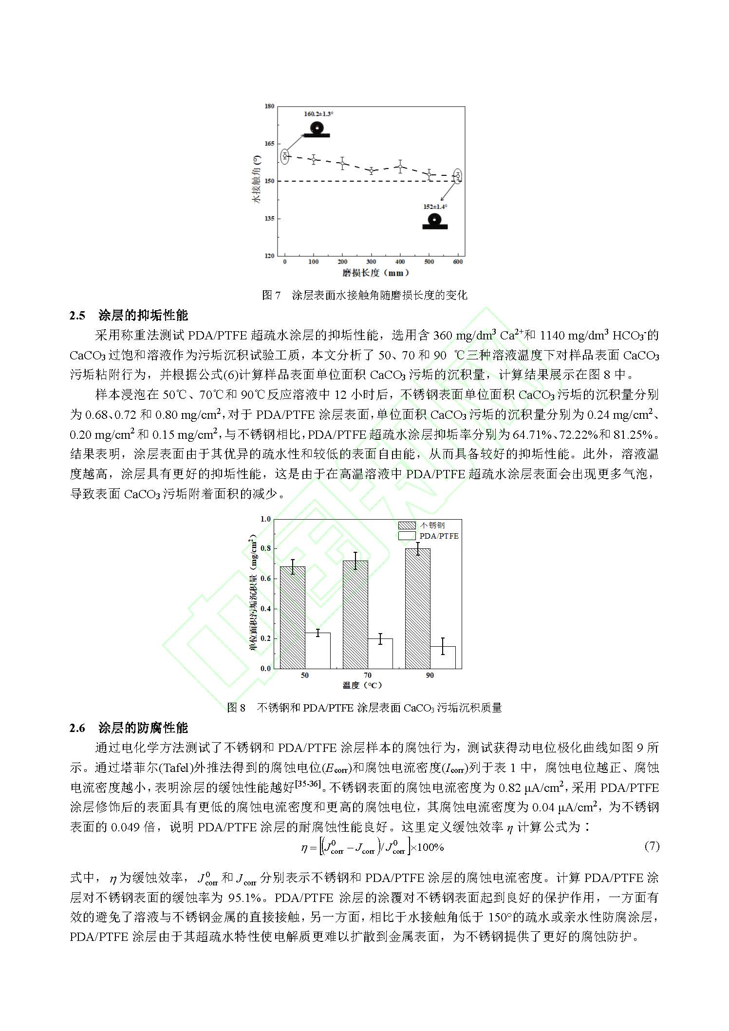 金属表面 PDA/PTFE 超疏水涂层抑垢与耐腐蚀性能