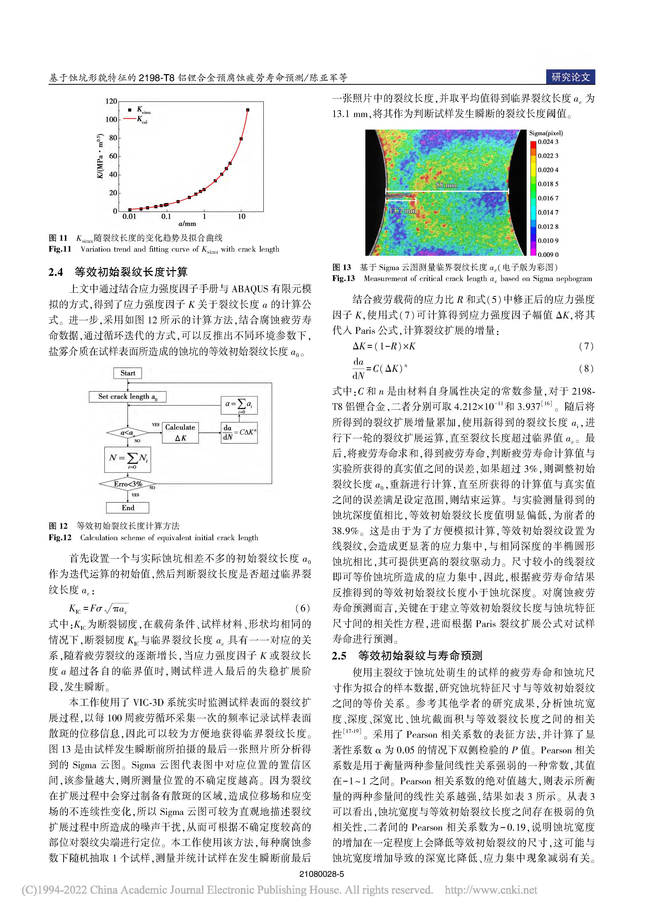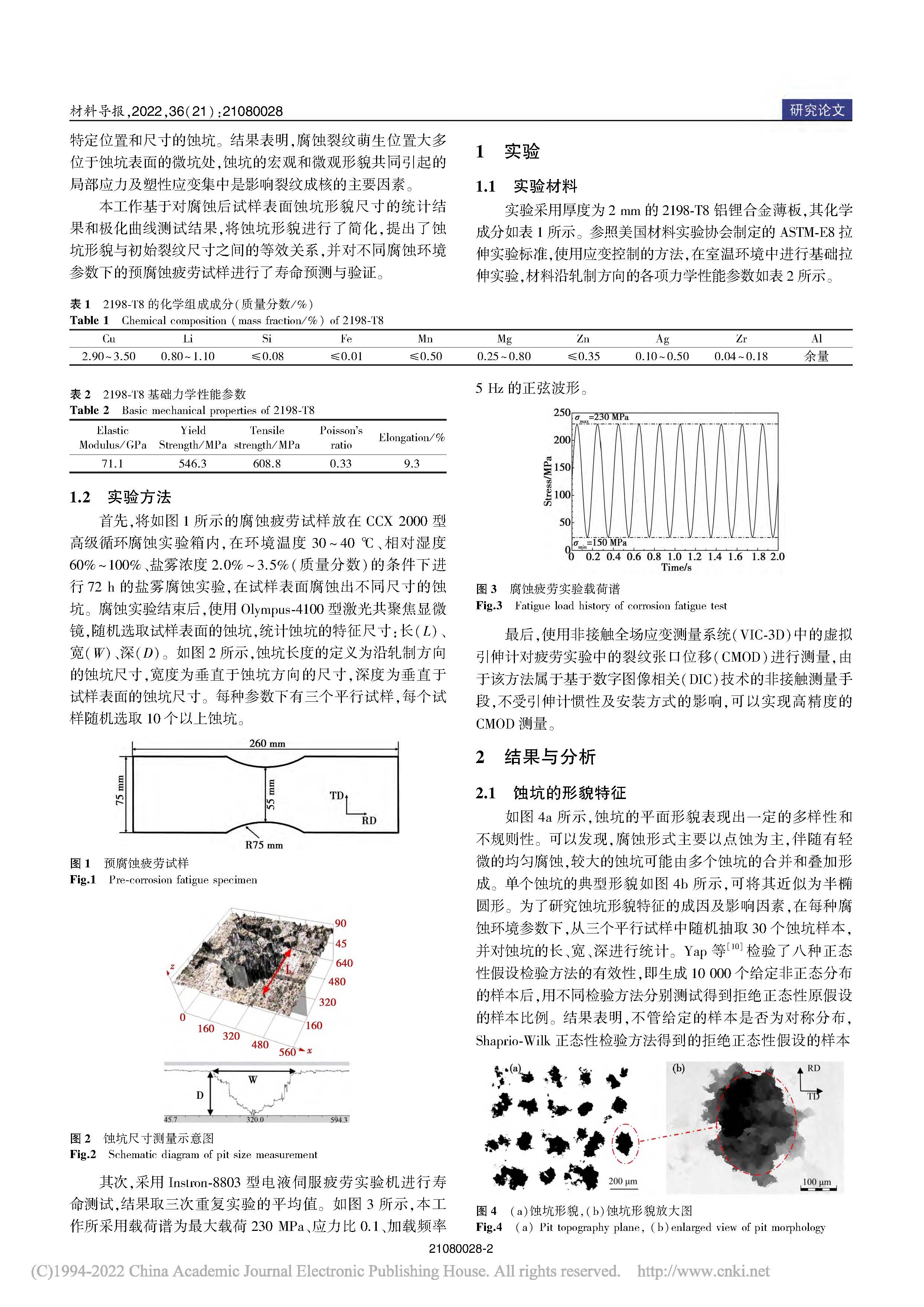 基于蚀坑形貌特征的2198-T8 铝锂合金预腐蚀疲劳寿命预测