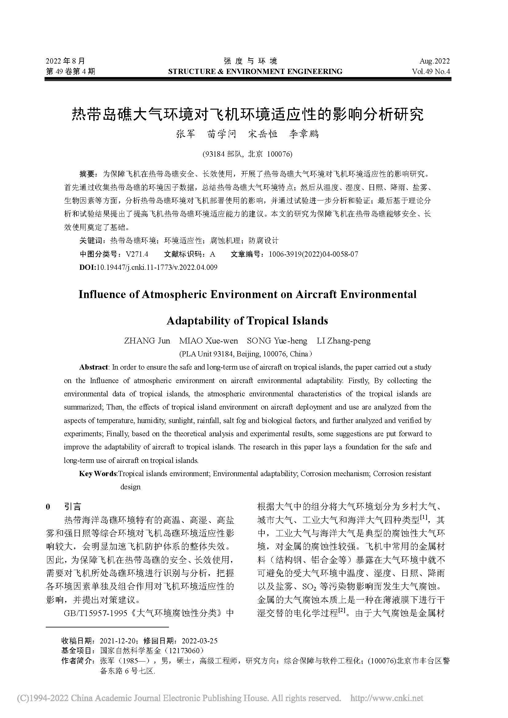 热带岛礁大气环境对飞机环境适应性的影响分析研究