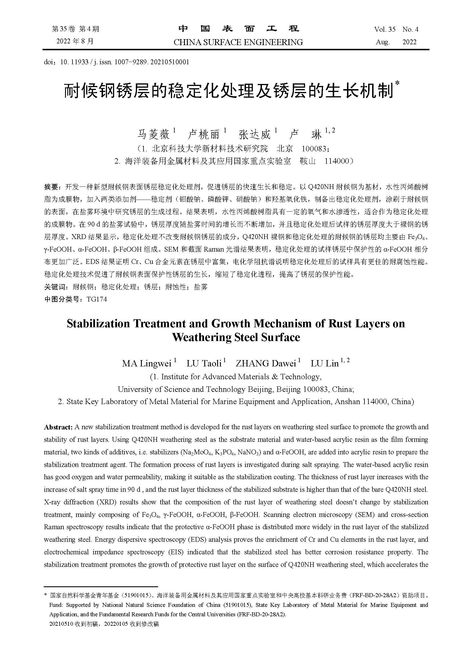 耐候钢锈层的稳定化处理及锈层的生长机制