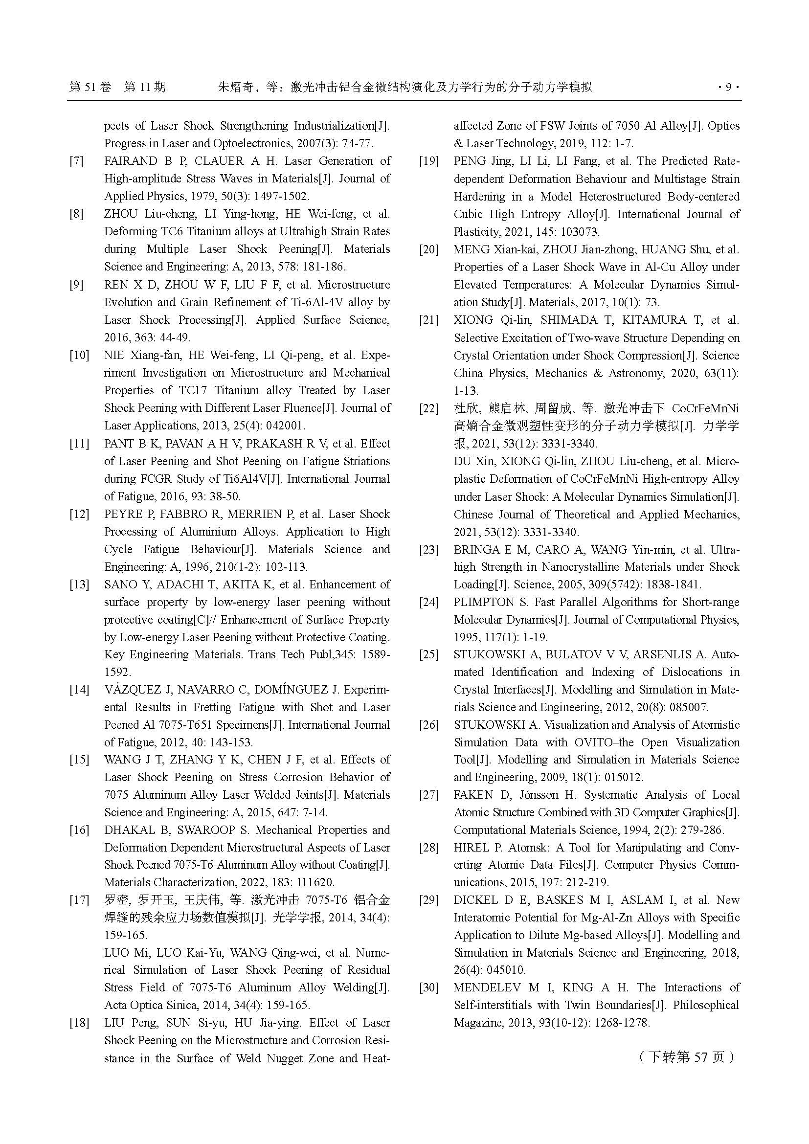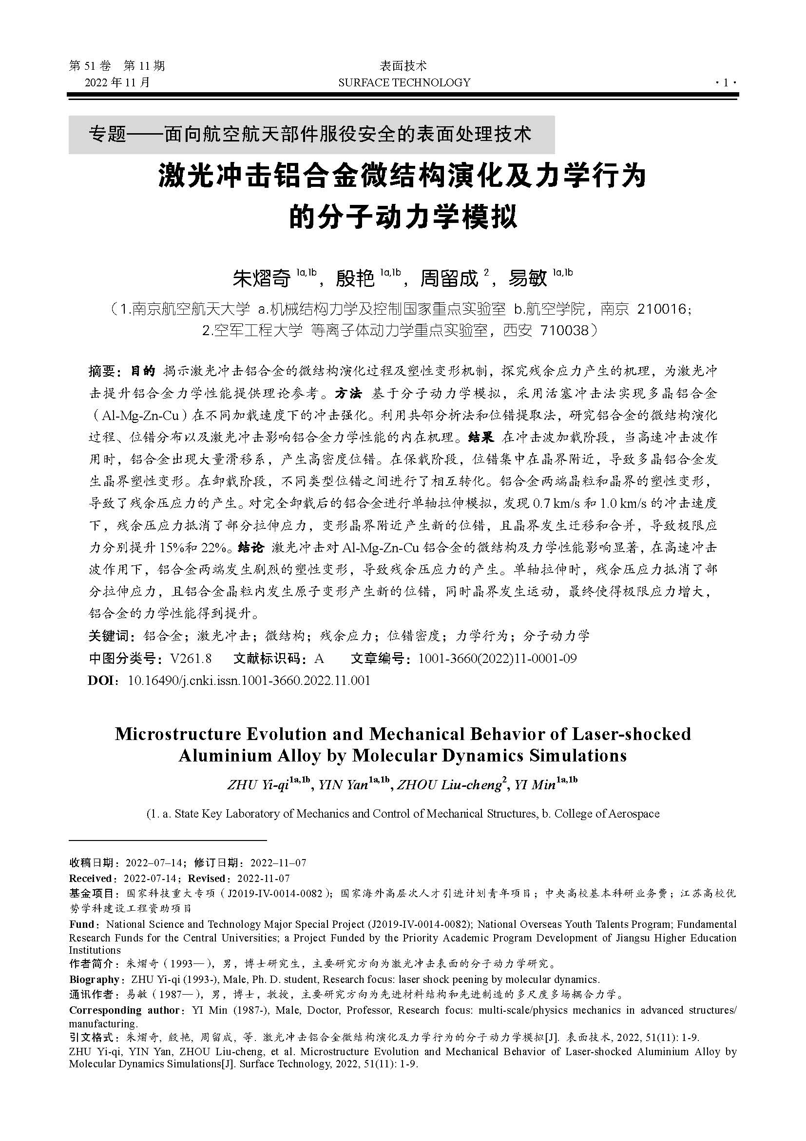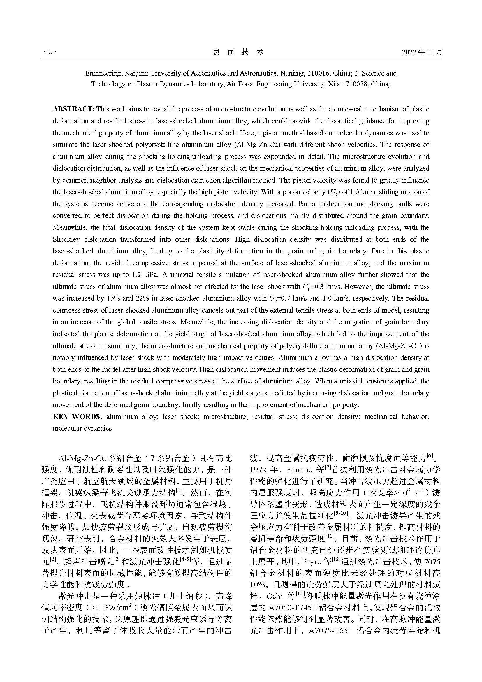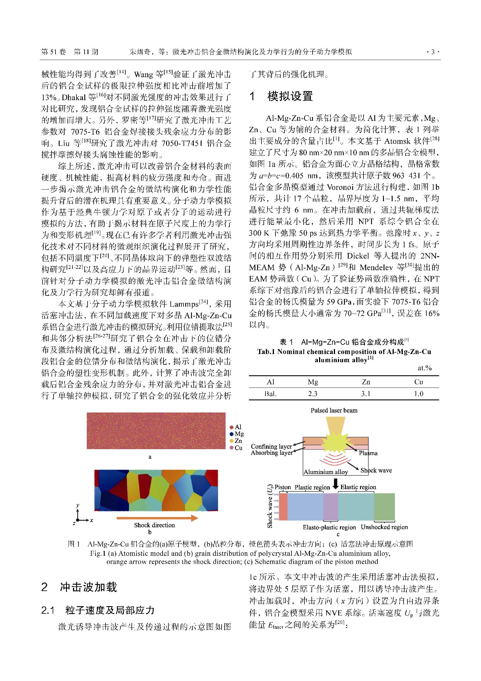 激光冲击铝合金微结构演化及力学行为的分子动力学模拟