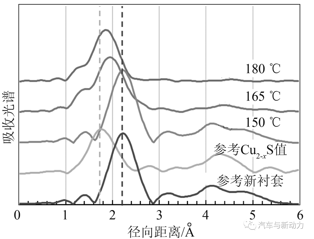 为了更详细地检测锌对腐蚀路径的影响,研究人员采用XANES/EXAFS进行了分析。图10显示铜的K层吸收光谱边缘的XANES结果。至于样品a试件,研究人员发现光谱与铜相同(全新衬套)。这与横截面的腐蚀检测结果一致。另一方面,在已确认腐蚀的样品b和样品c试件中,随着硫化腐蚀进行,出现了基于Cu2S的光谱。图11显示铜的K层吸收光谱边缘的EXAFS结果。虽然研究人员在样品a的试件(全新衬套)中发现光谱与铜的光谱相同,但在样品b和样品c的试件中发现了基于Cu2-xS的光谱。