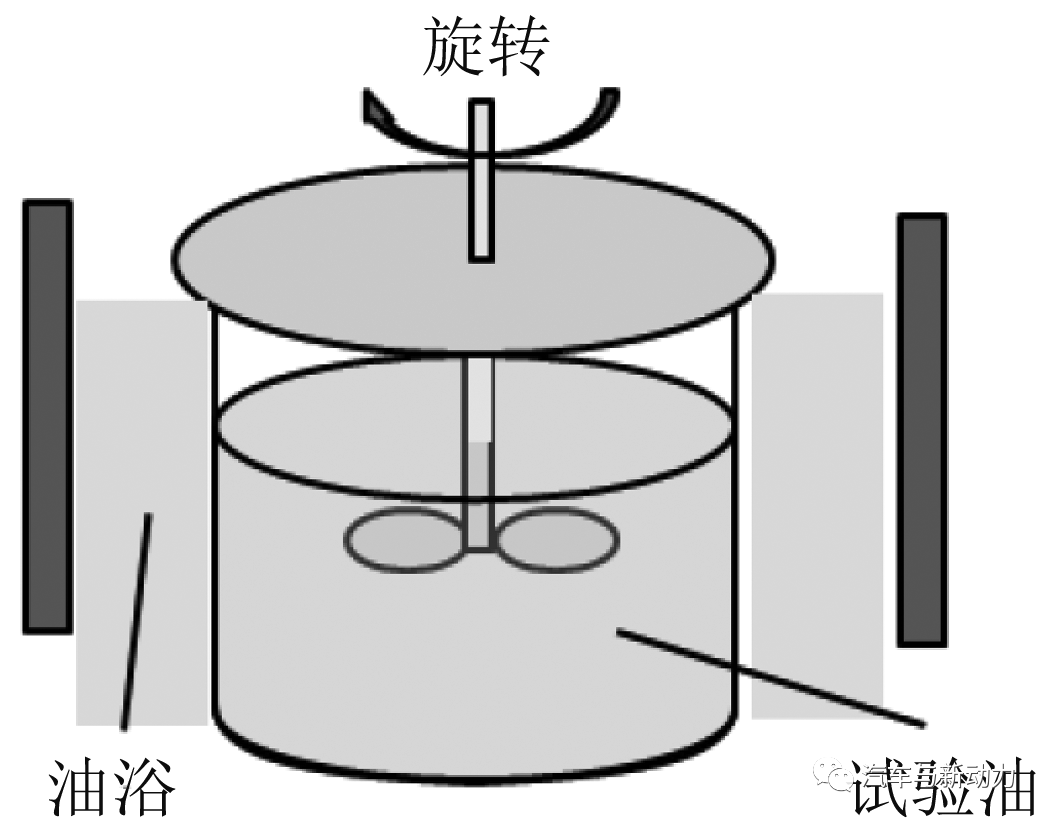 研究人员将GF-5兼容发动机机油(0W-20)作为新机油。对于热劣化机油,研究人员采用符合JISK2514标准的内燃机润滑油氧化稳定性试验台(ISOT,用于印第安纳搅拌氧化试验)对新机油进行热劣化处理。图3为ISOT试验台的原理示意图。ISOT装置有1个装满了发动机机油的玻璃烧杯,在油浴中加热。