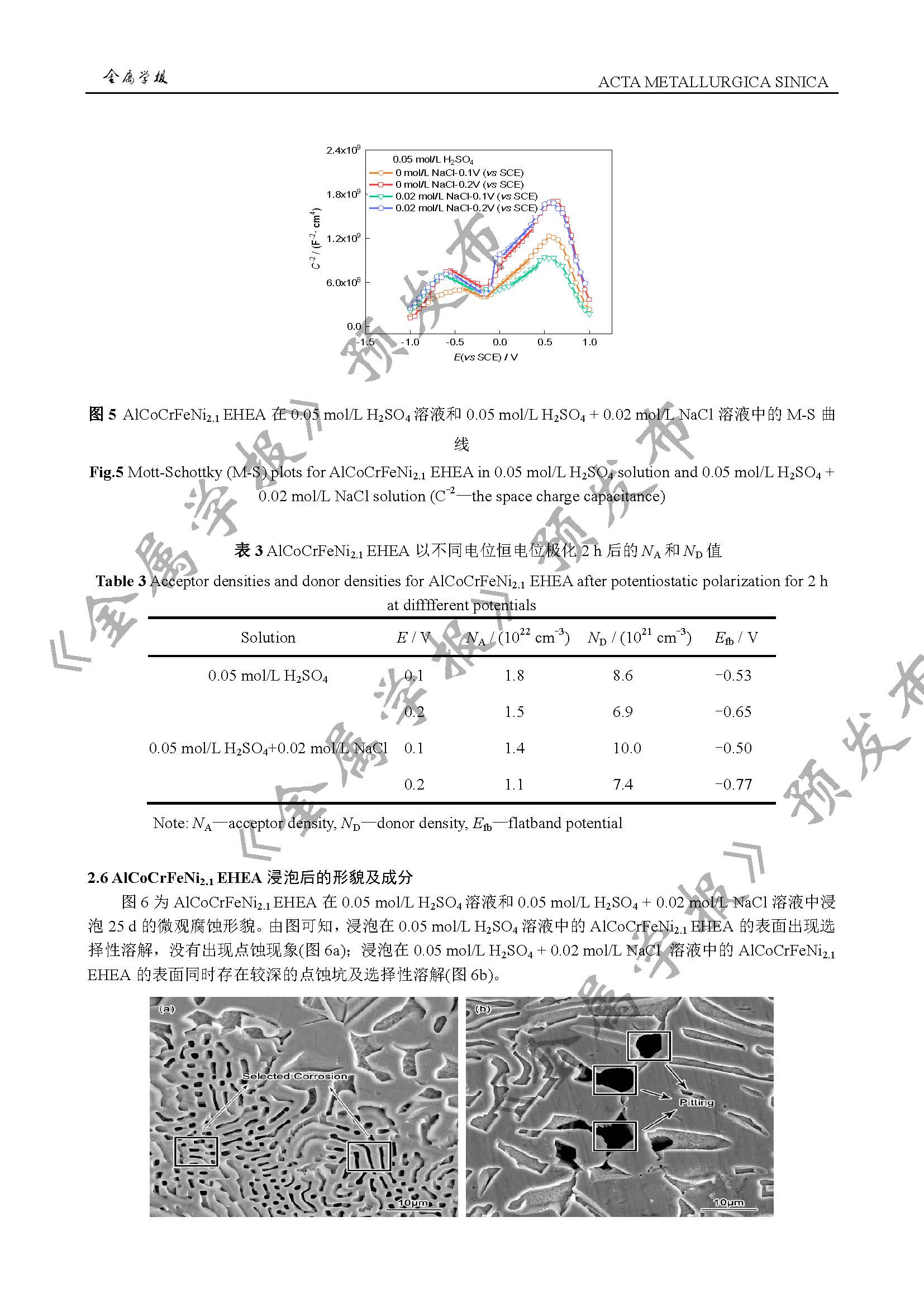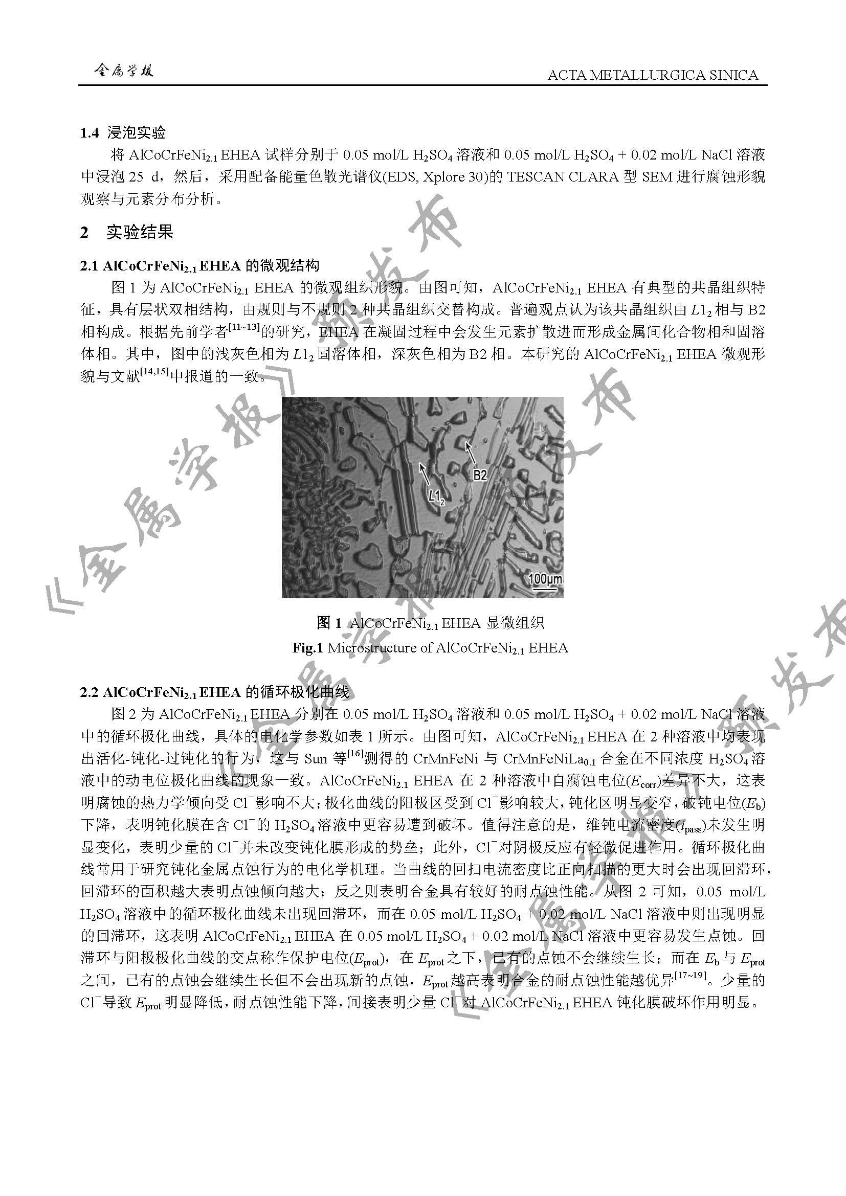 共晶高熵合金AlCoCrFeNi2.1在H2SO4溶液中的腐蚀行为