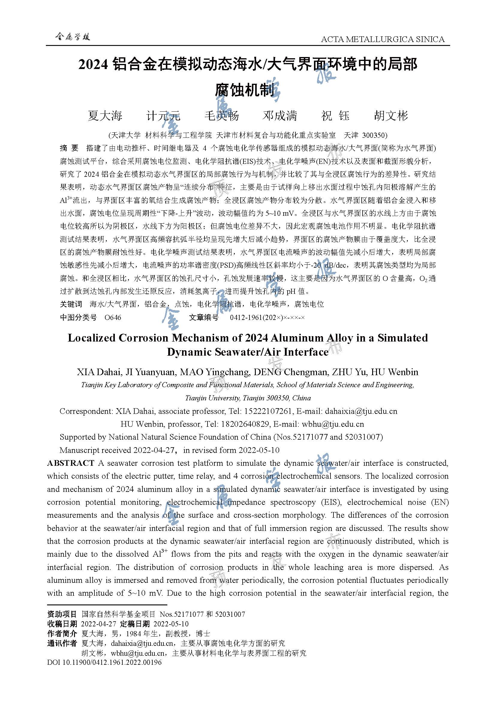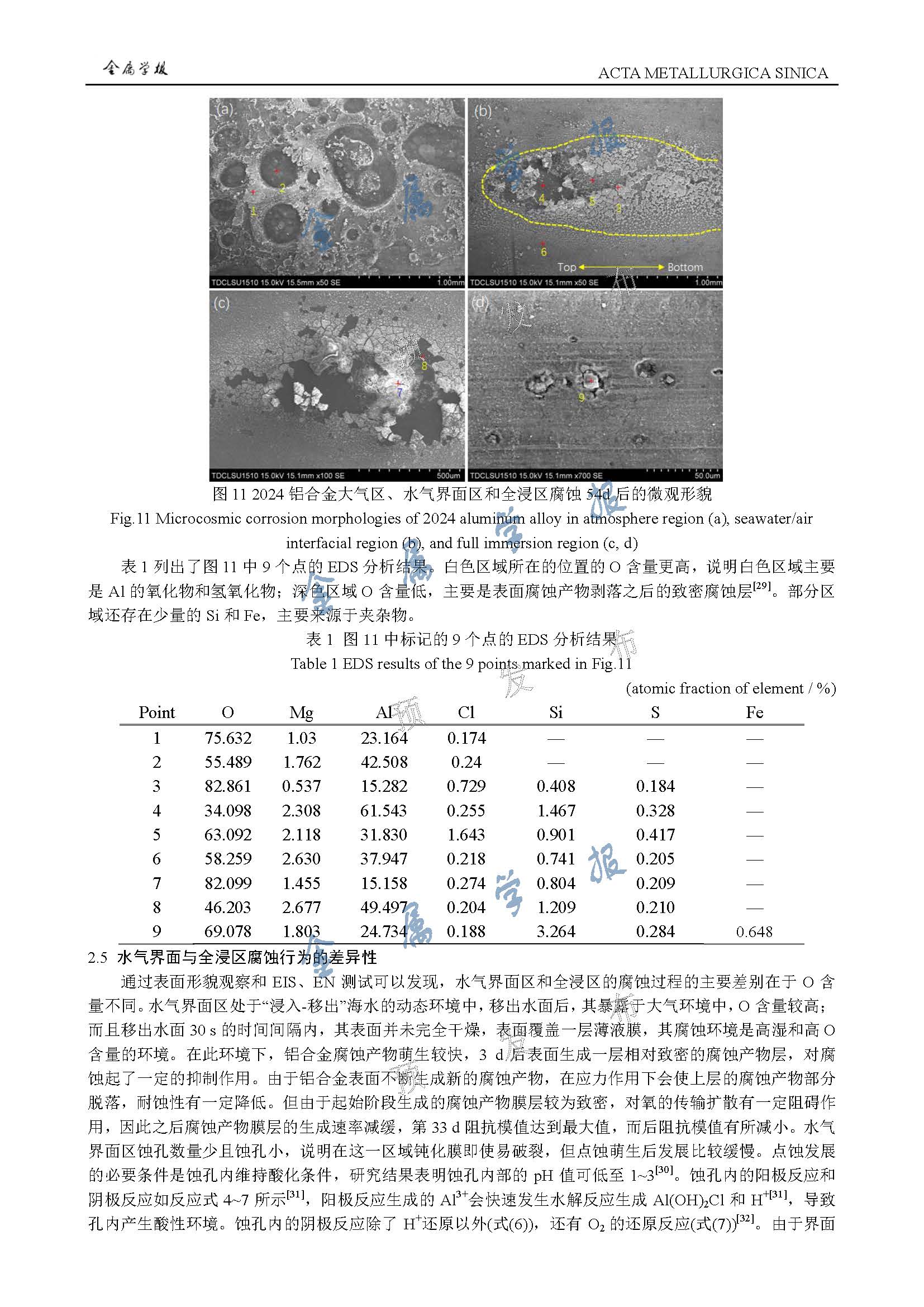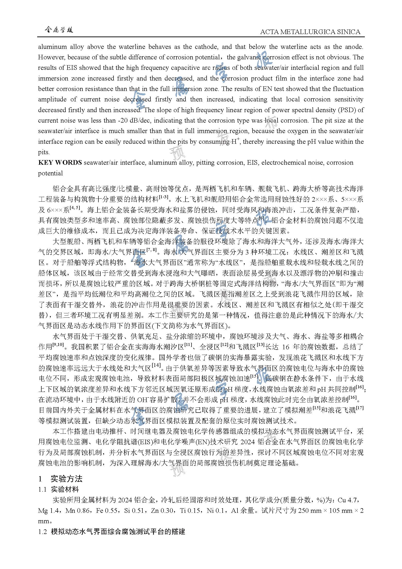2024铝合金在模拟动态海水水气界面作用下的局部腐蚀机制