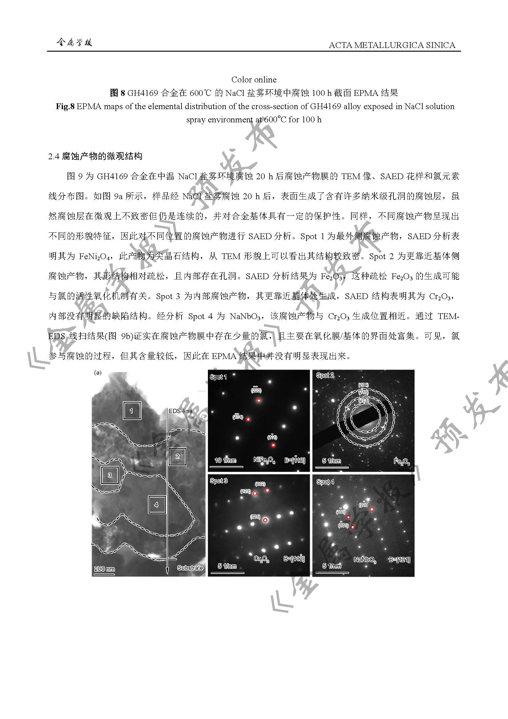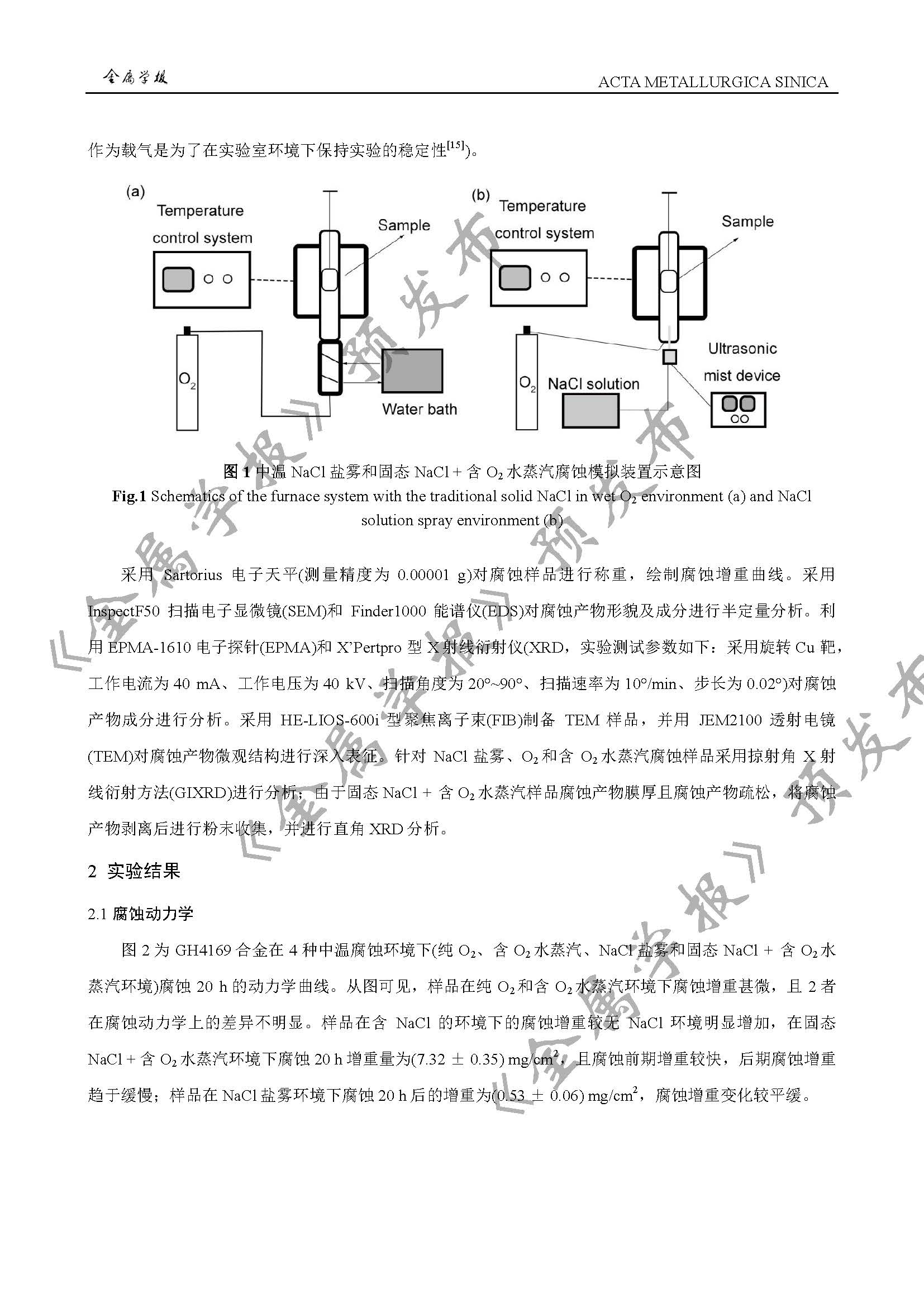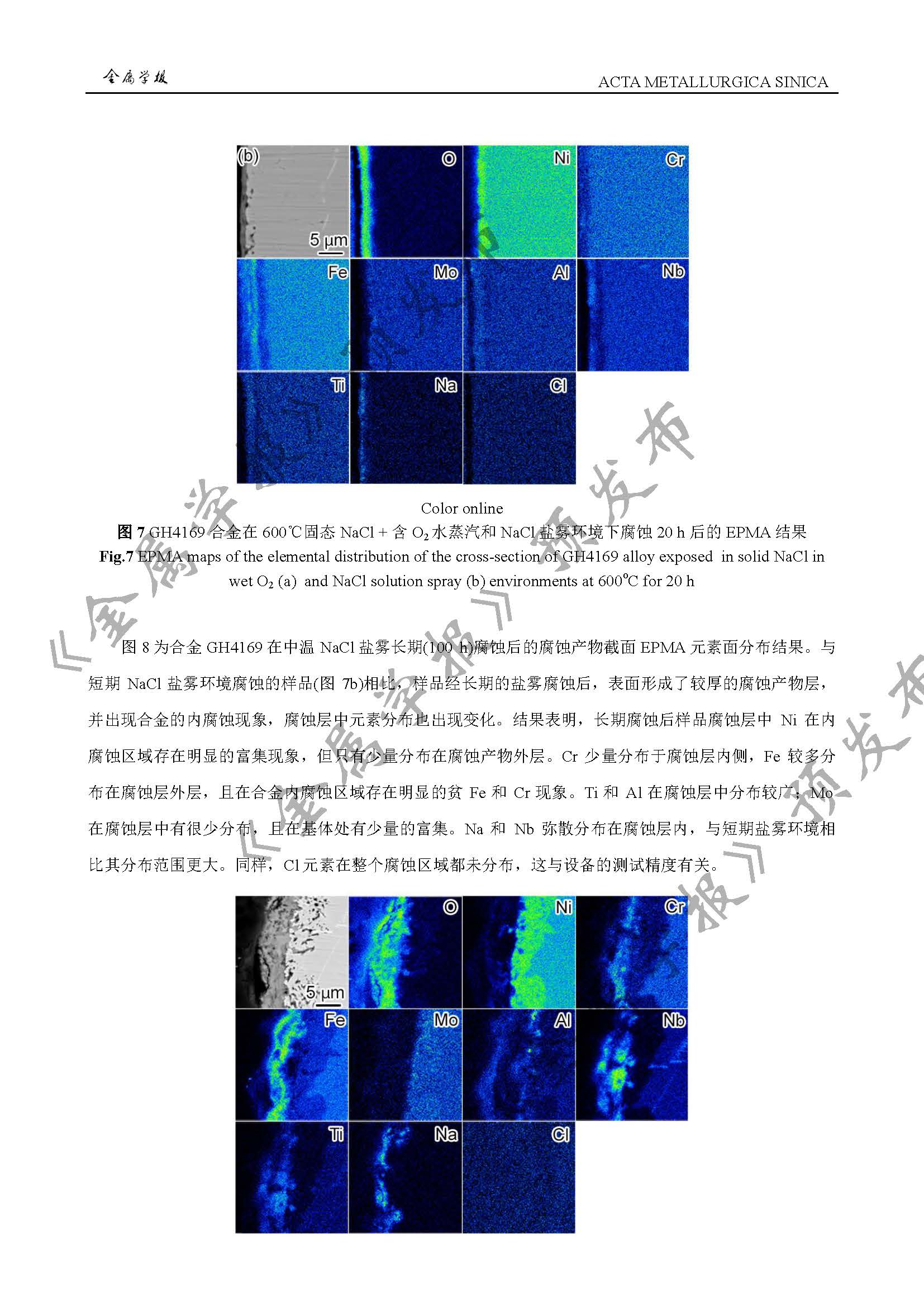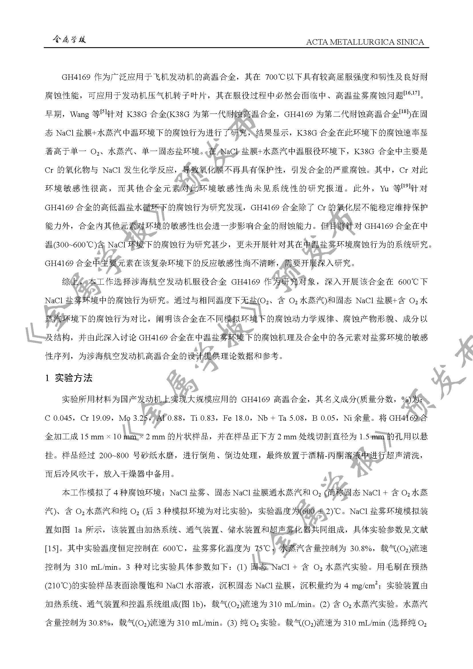 600℃ NaCl盐雾环境下GH4169合金的腐蚀行为