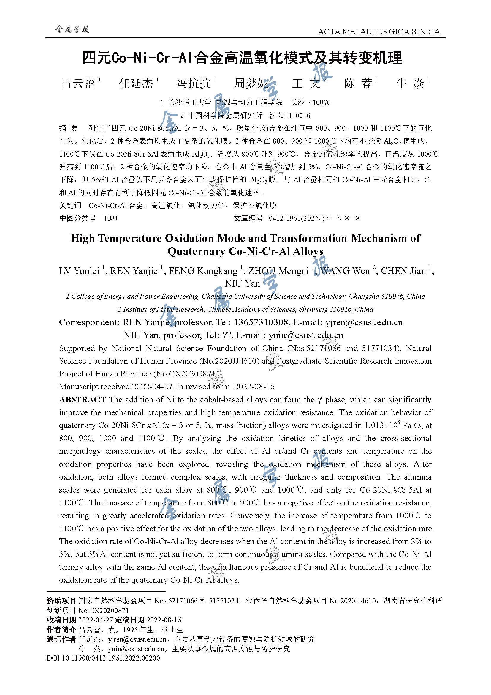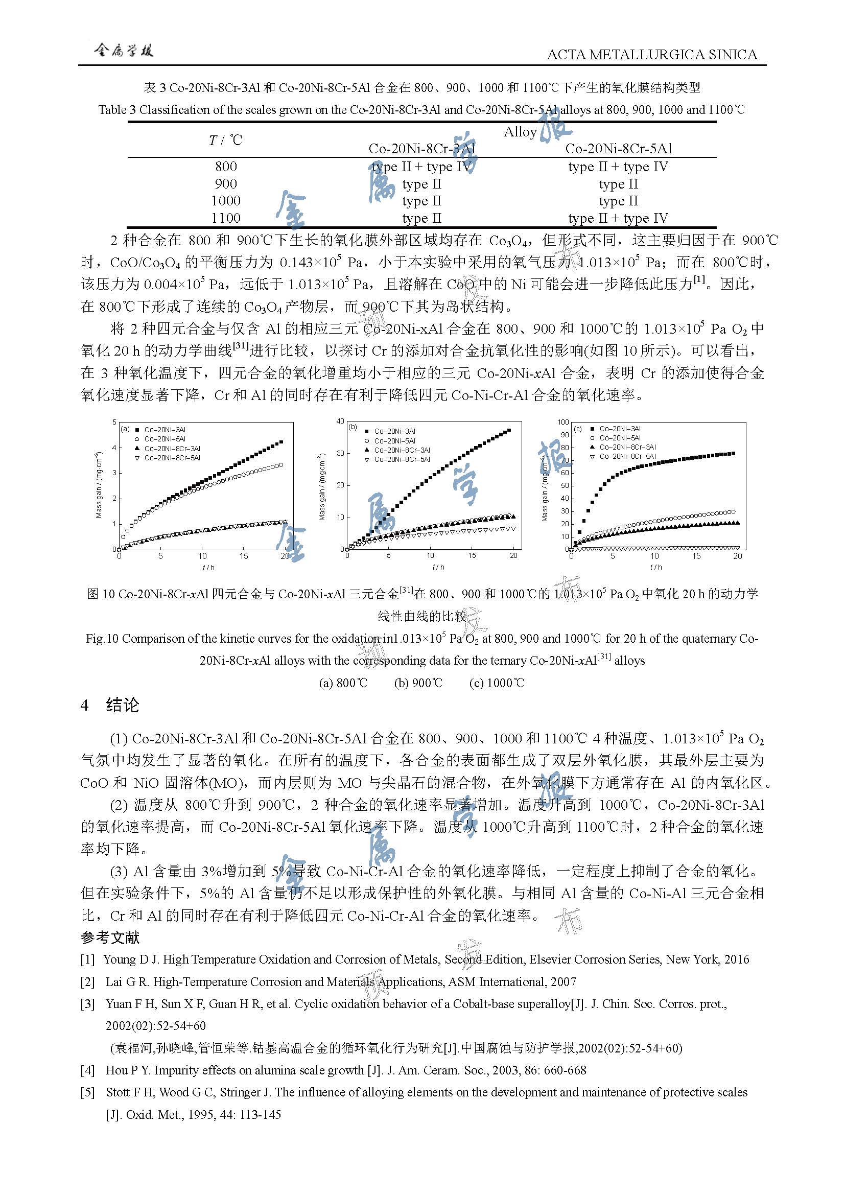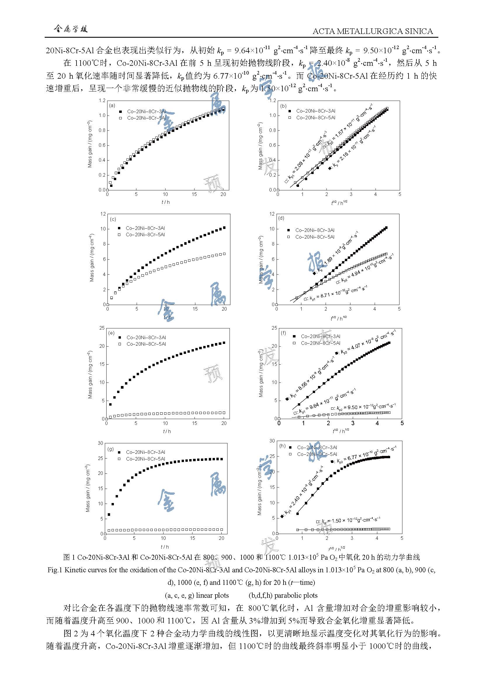 标签: Co-Ni-Cr-Al合金, 高温氧化, 氧化动力学