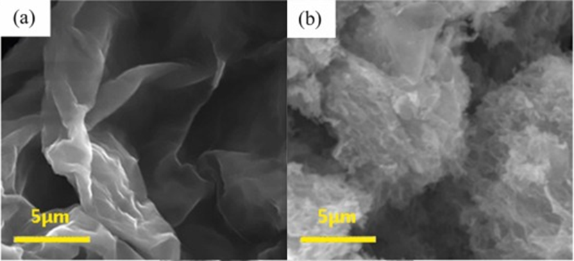 图2. 石墨烯(a)、Ni@石墨烯(b)的SEM图像