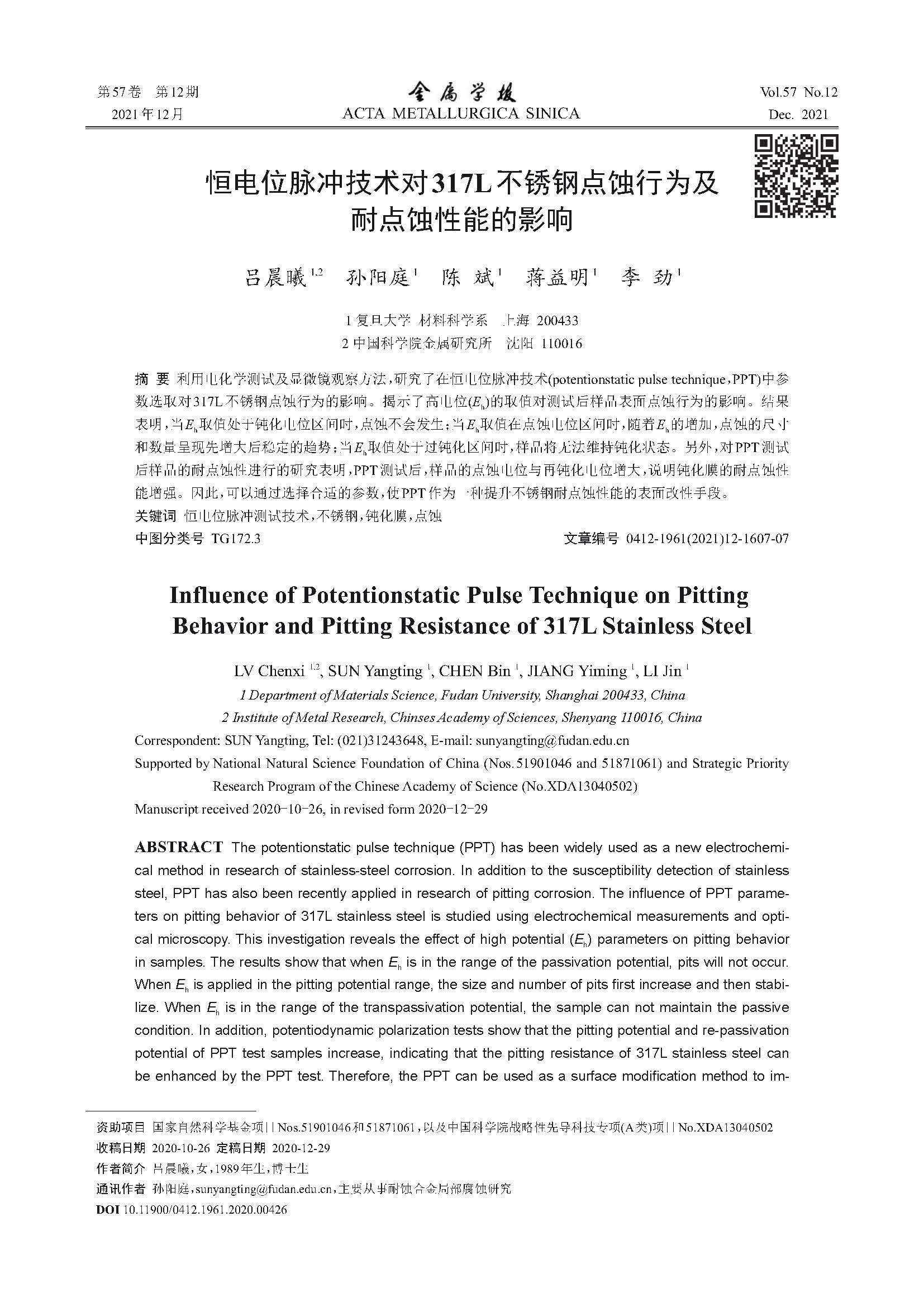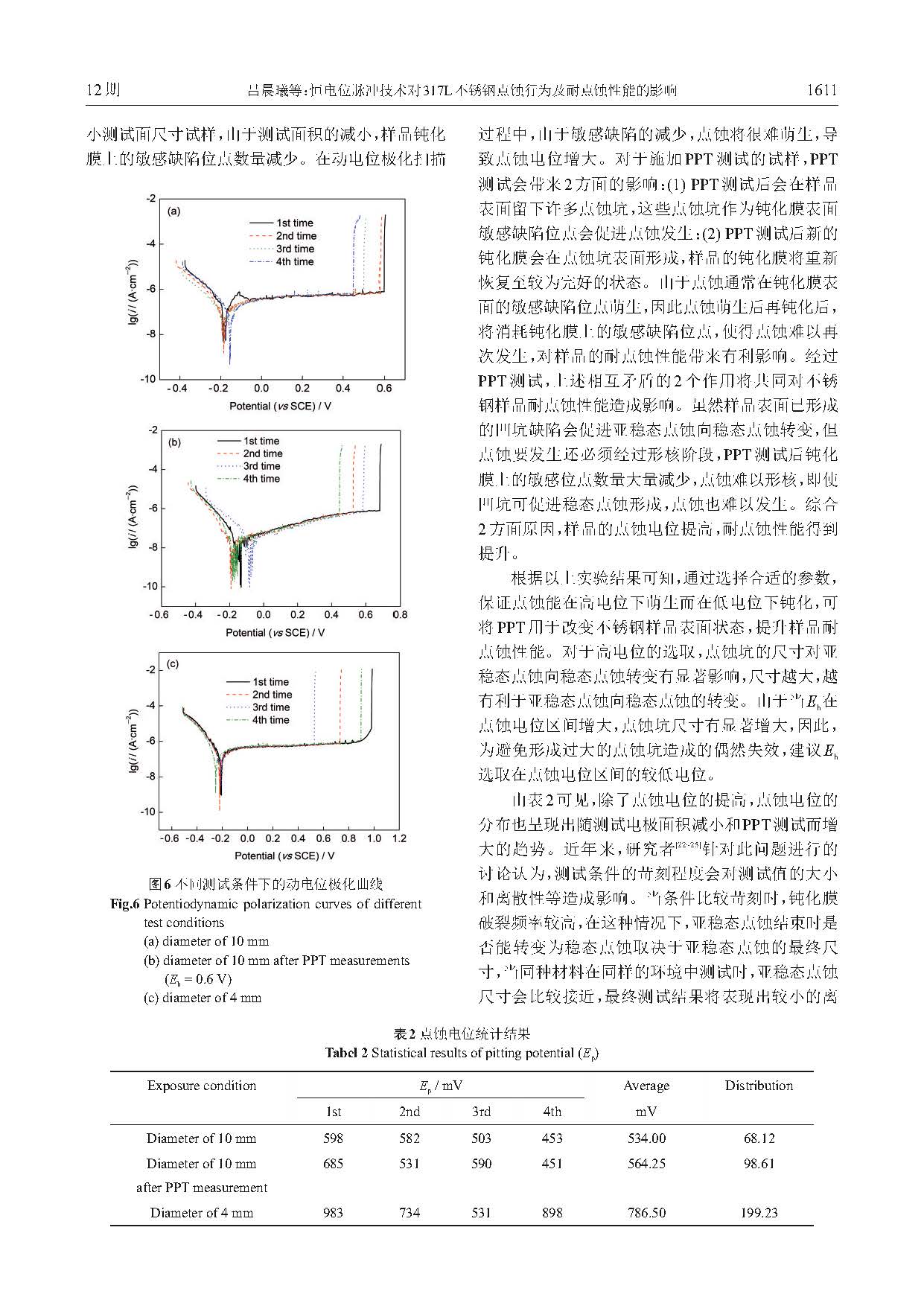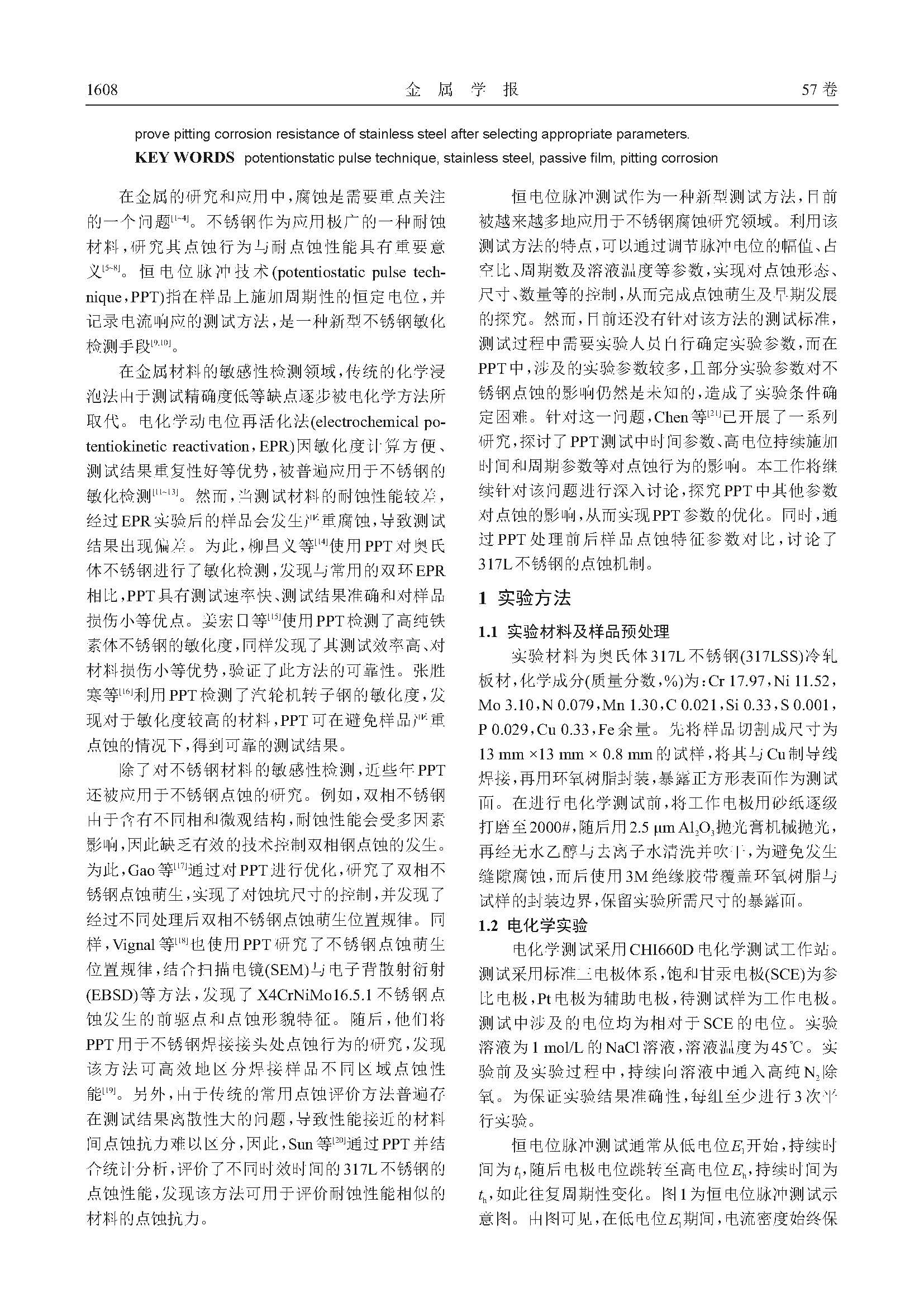 恒电位脉冲技术对317L不锈钢点蚀行为及耐点蚀性能的影响