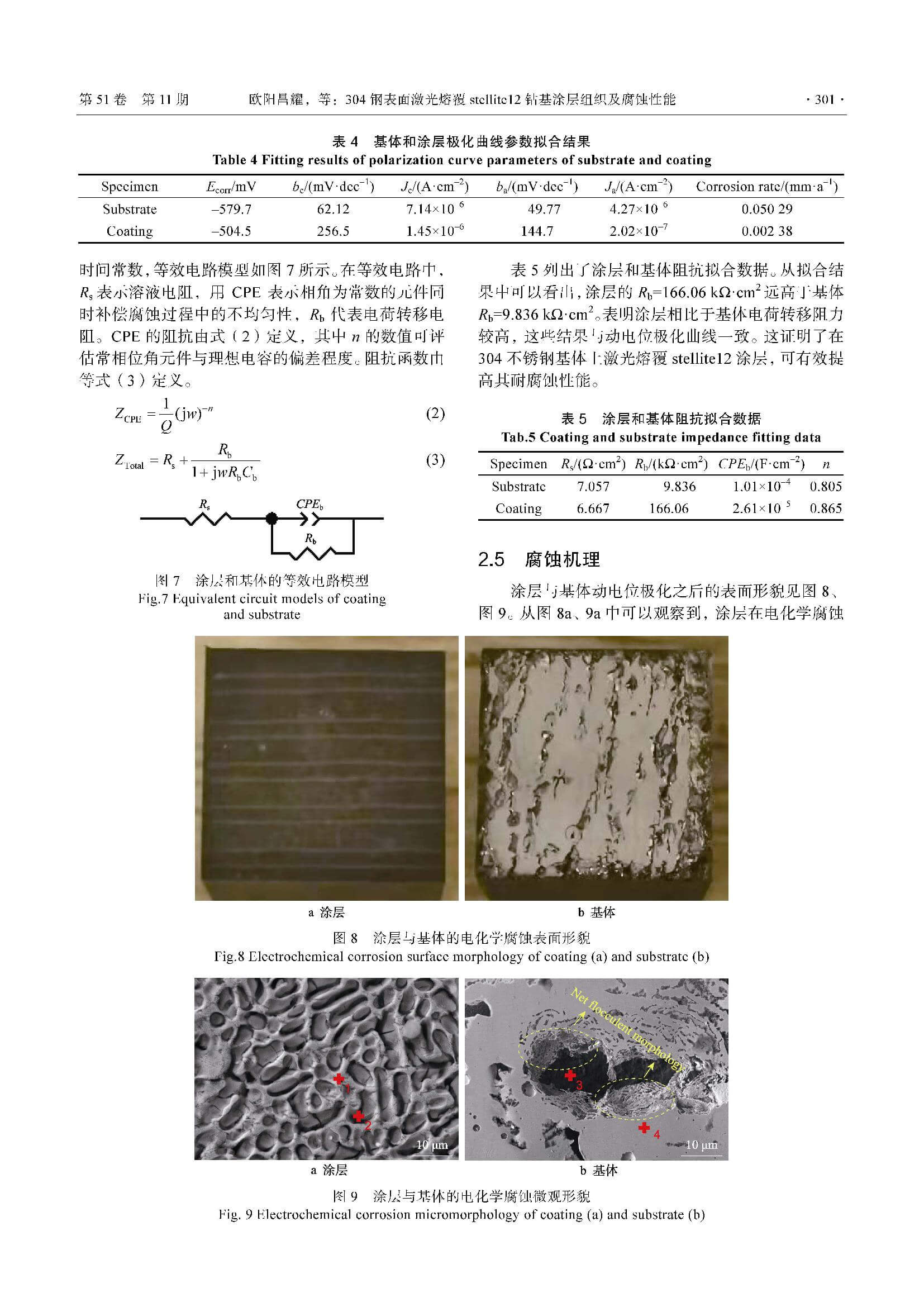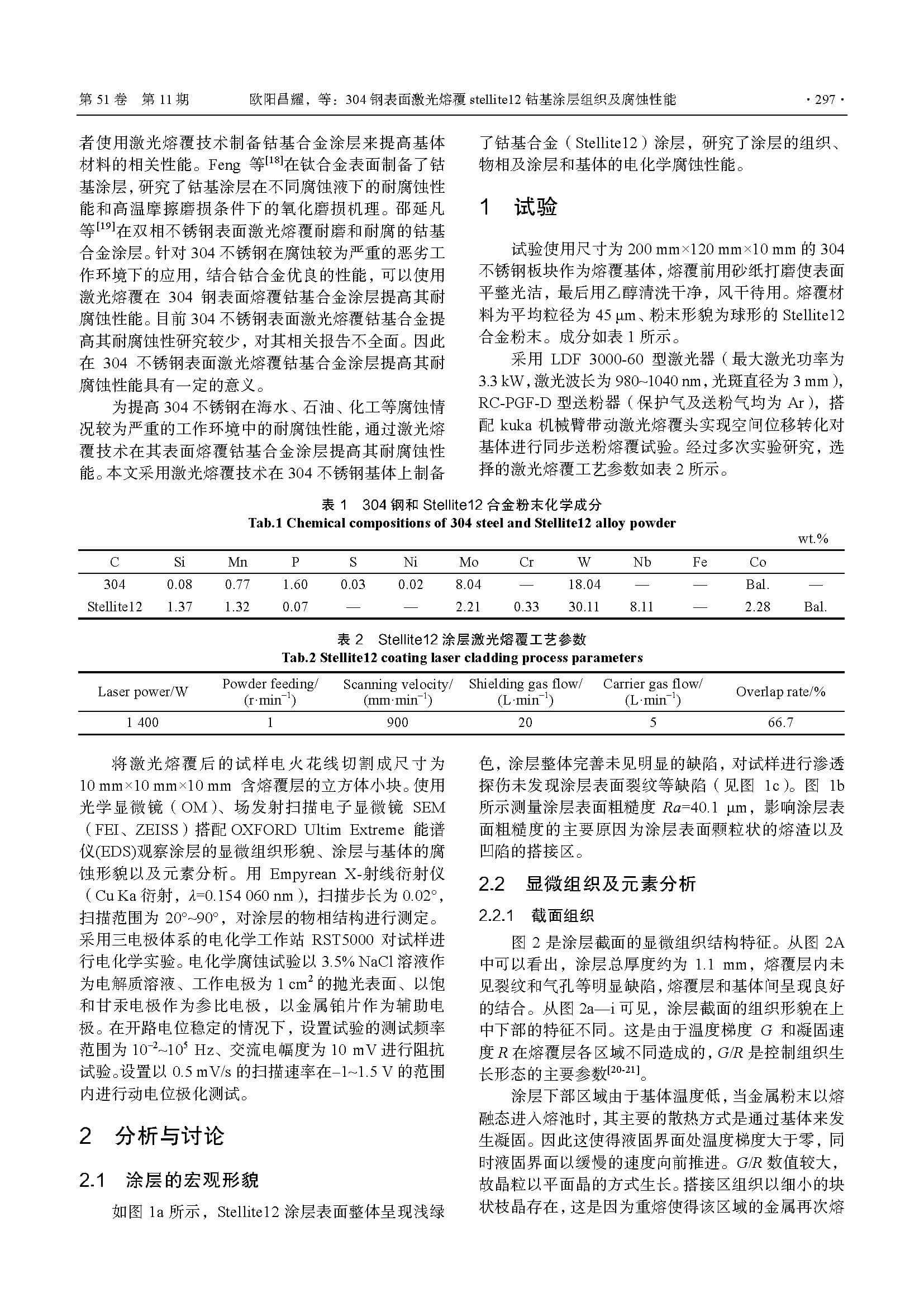 标签: 激光熔覆, Stellite12涂层, 304不锈钢, 电化学腐蚀, 腐蚀机理