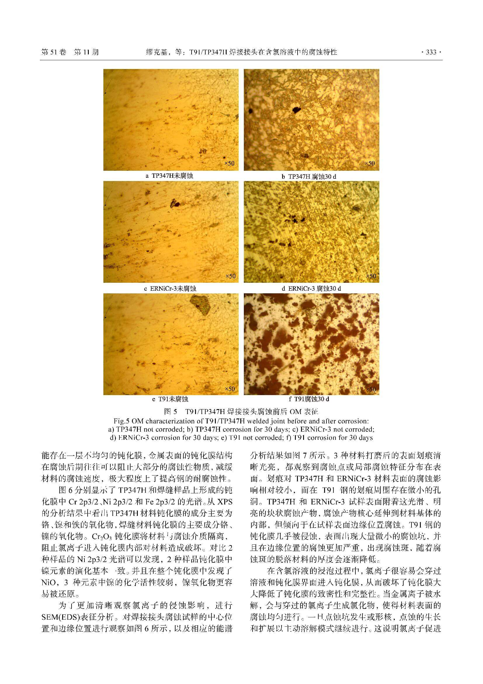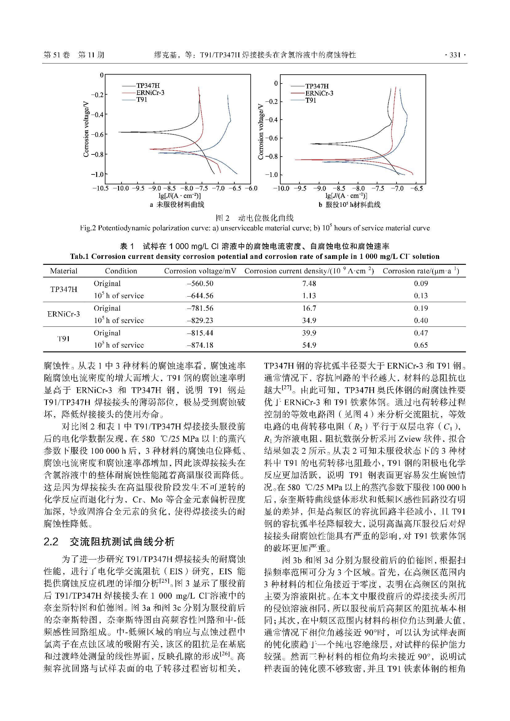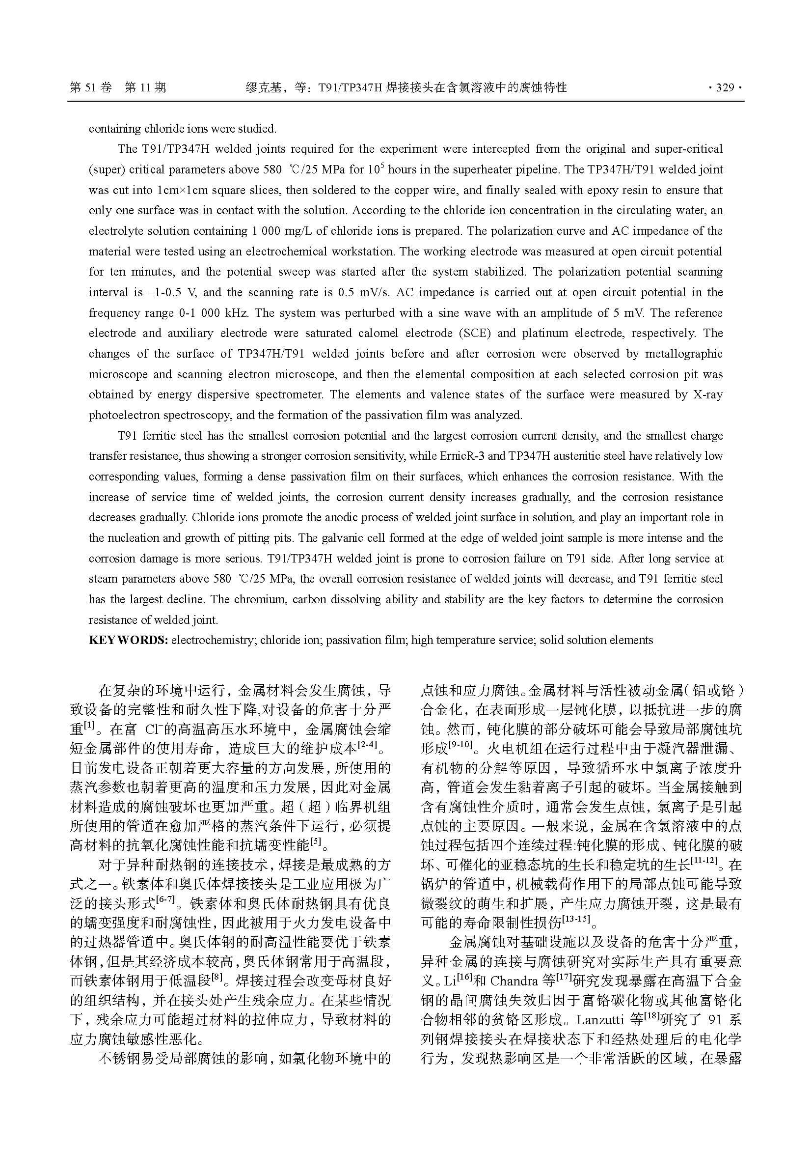 T91/TP347H焊接接头在含氯溶液中的腐蚀特性