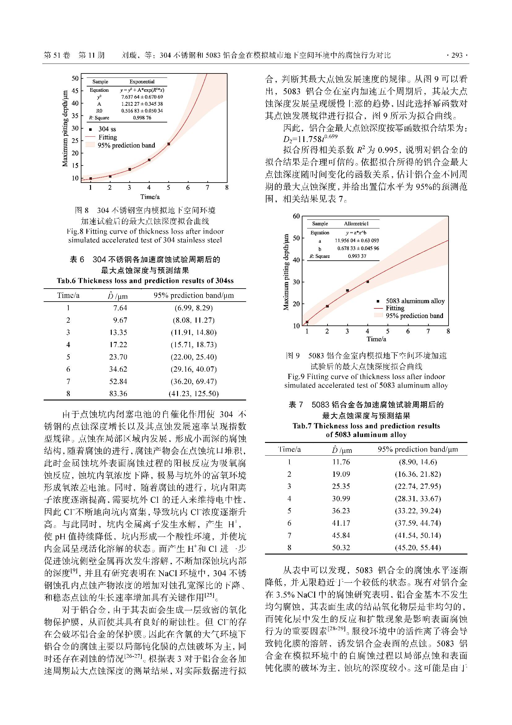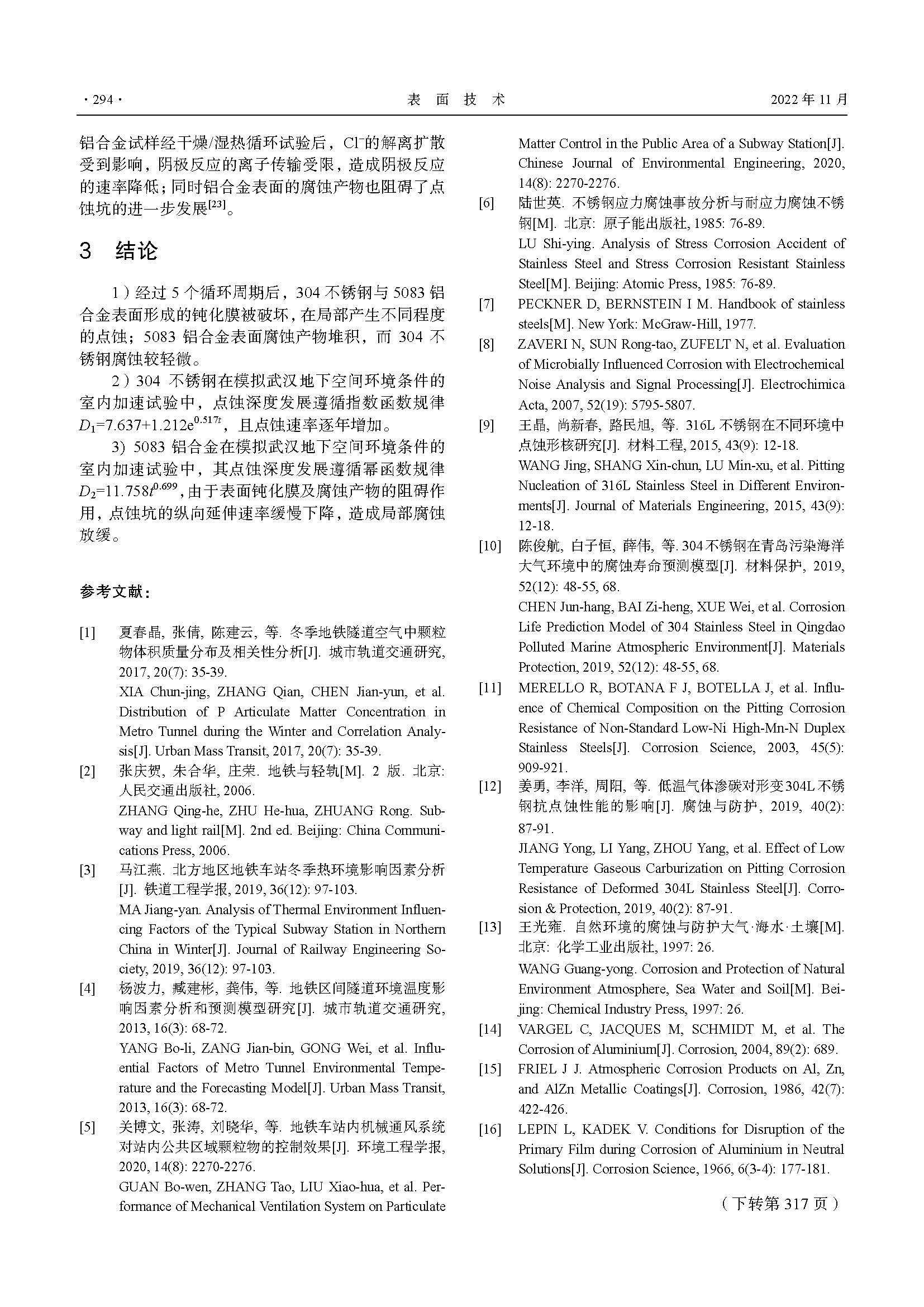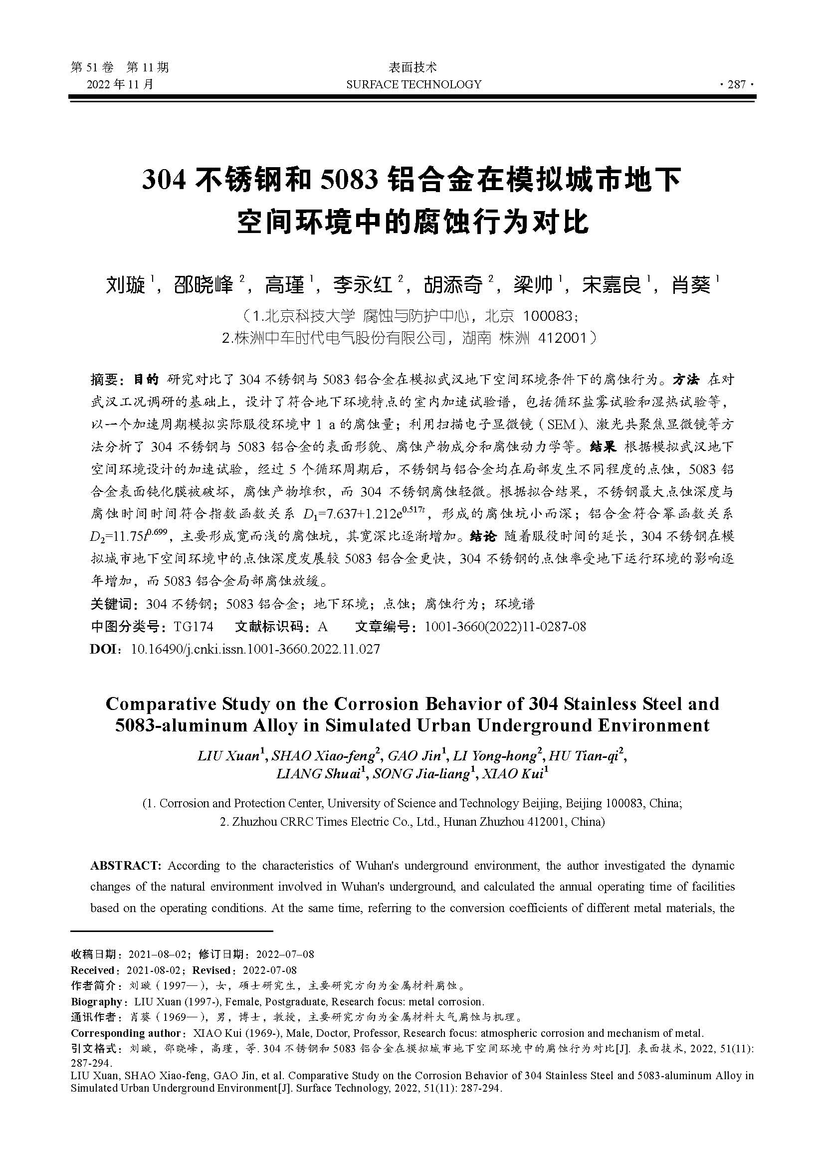 304不锈钢和5083铝合金在模拟城市地下空间环境中的腐