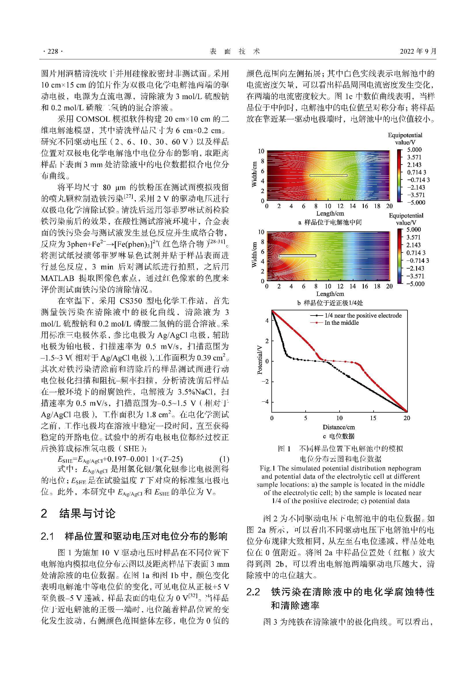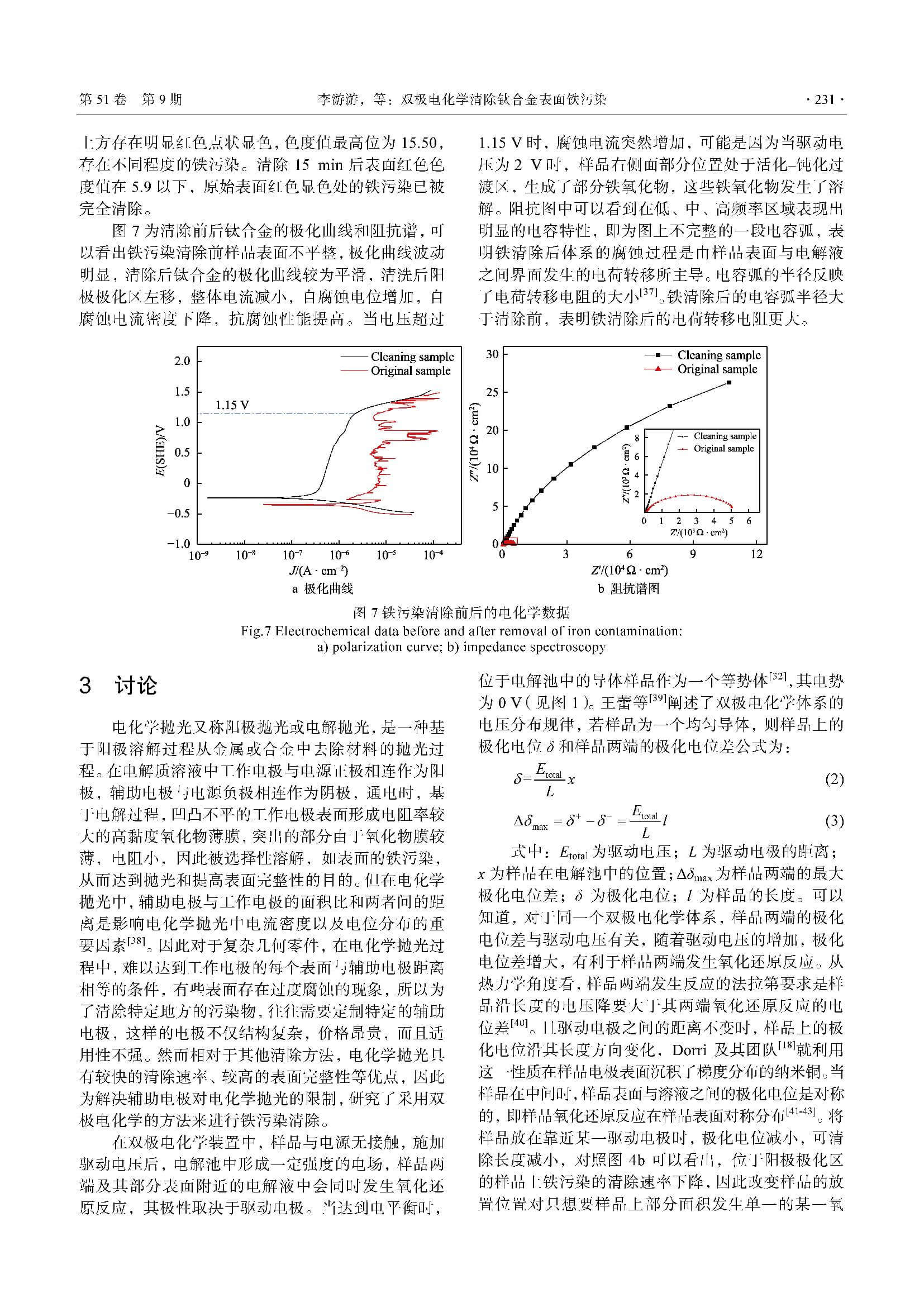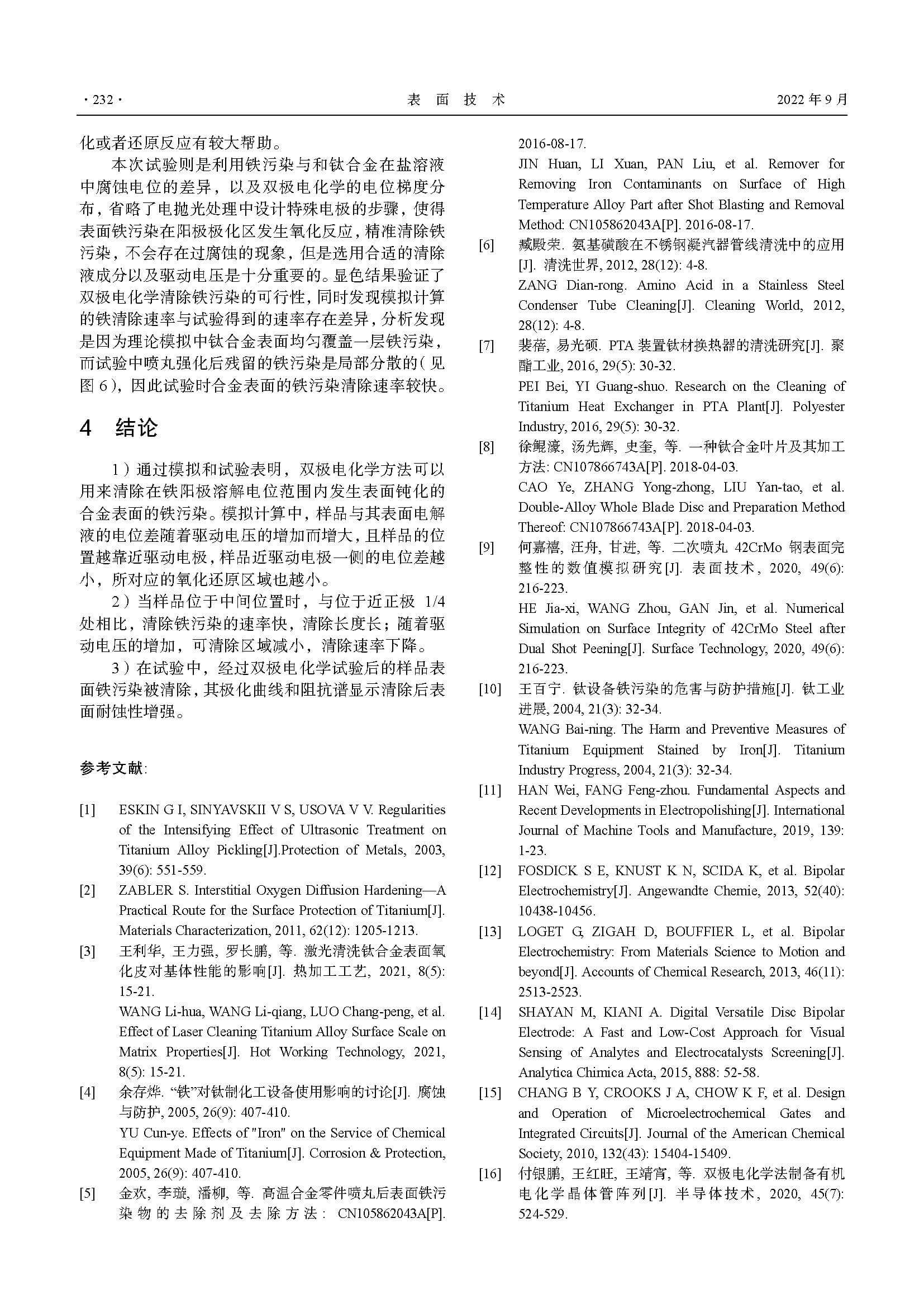双极电化学清除钛合金表面铁污染