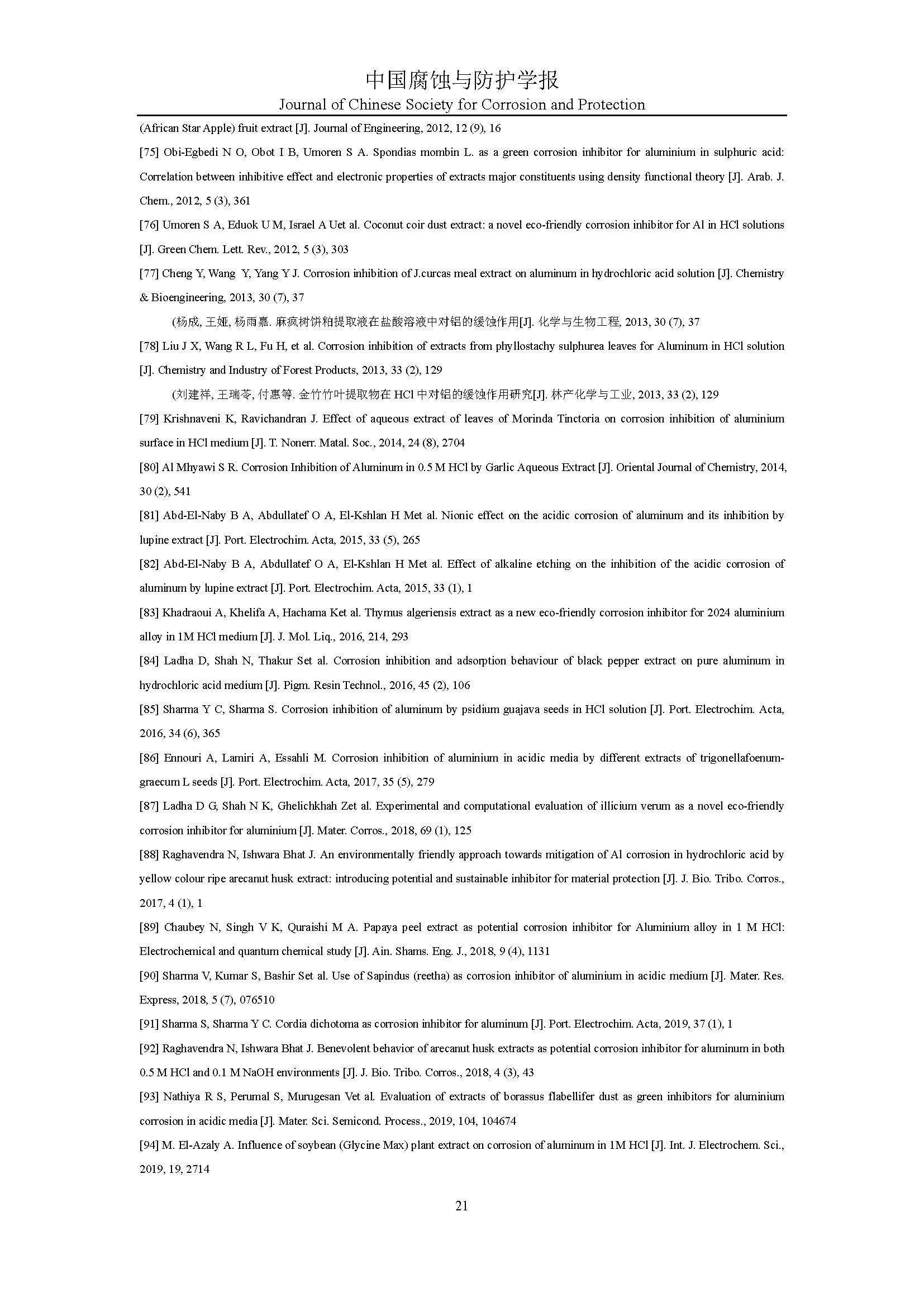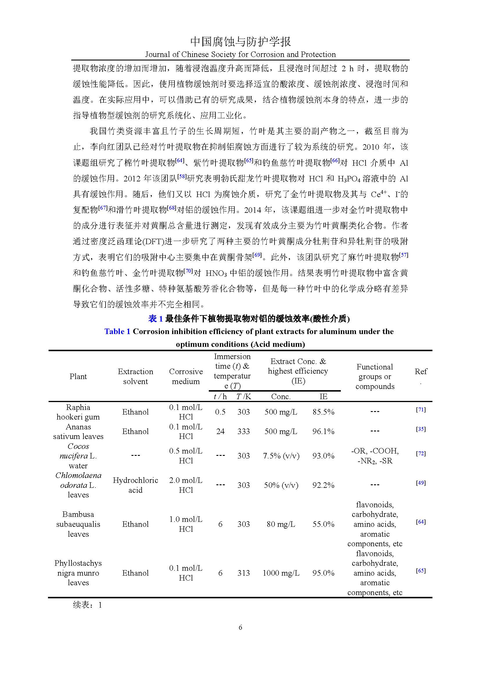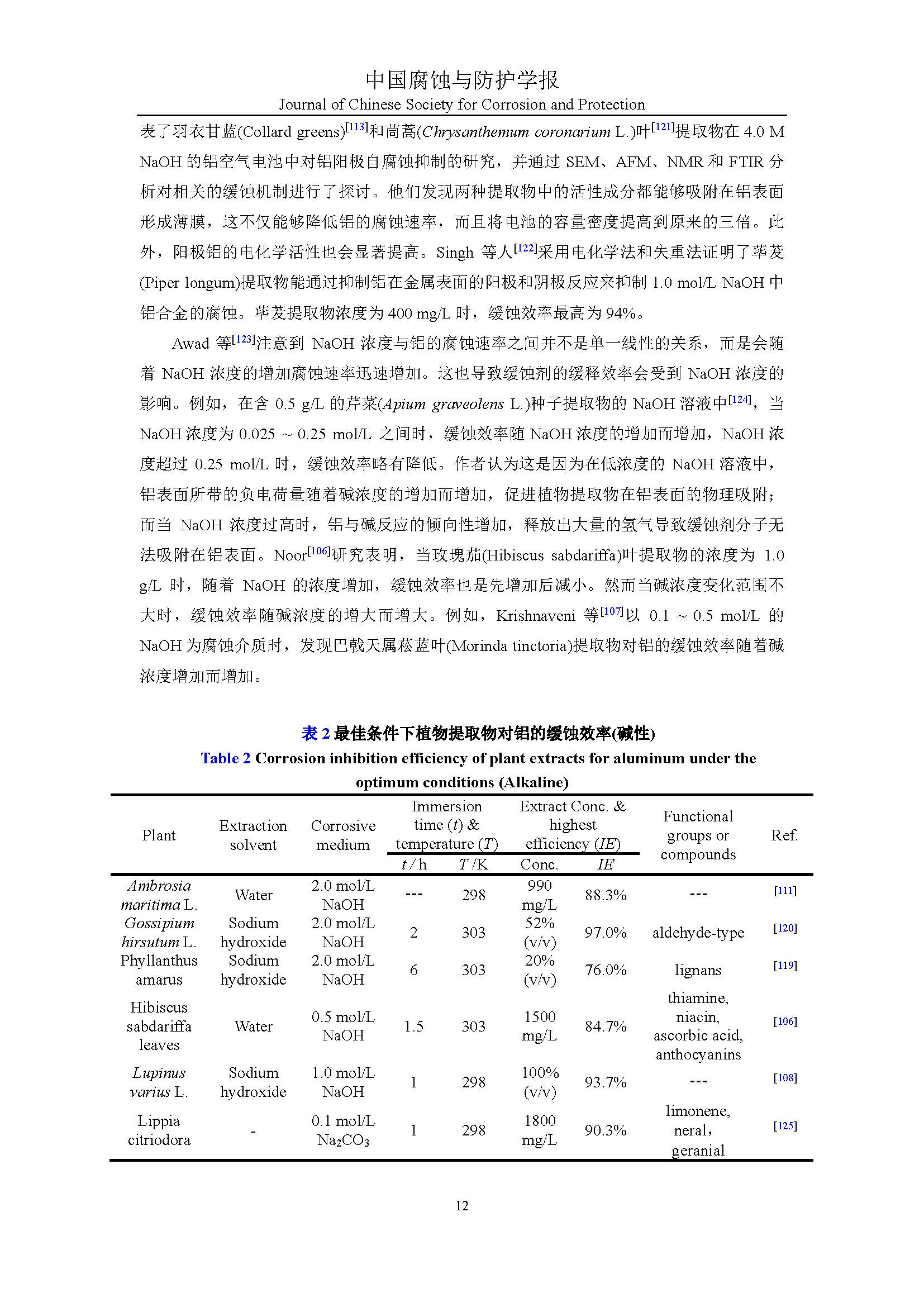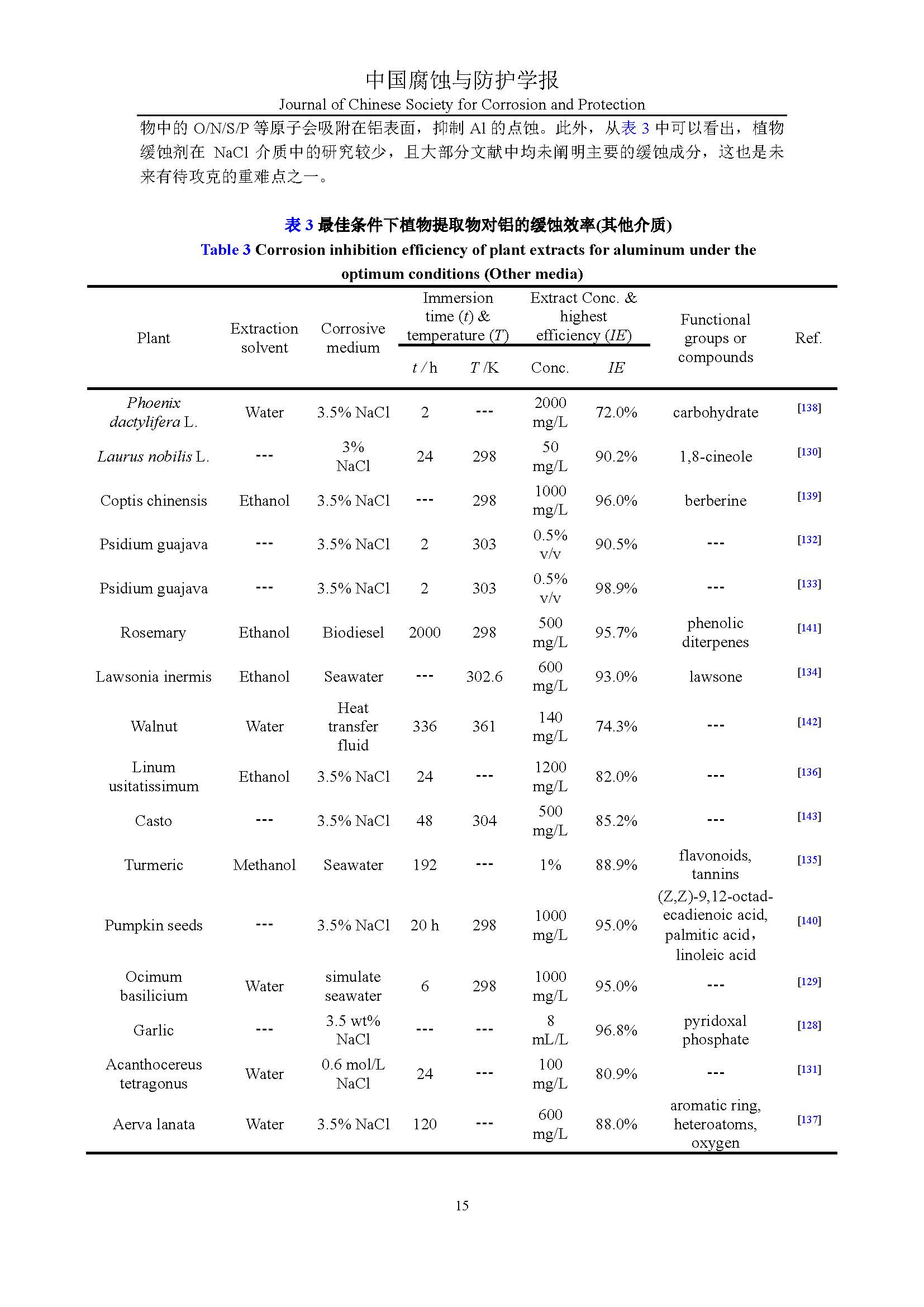植物缓蚀剂对铝的研究进展与展望