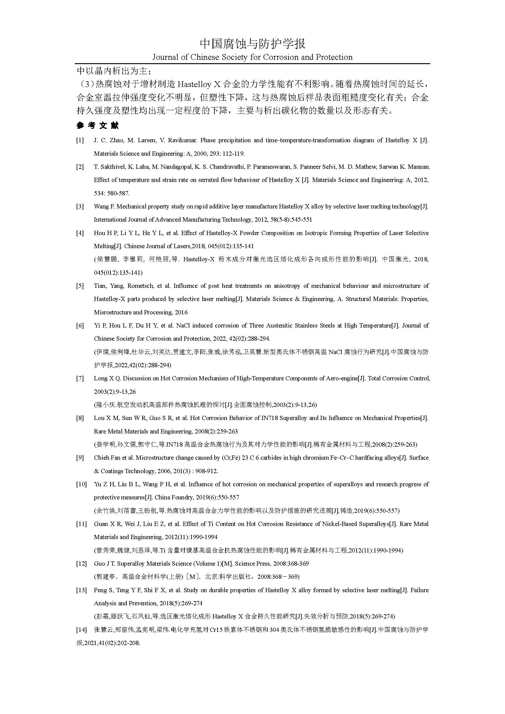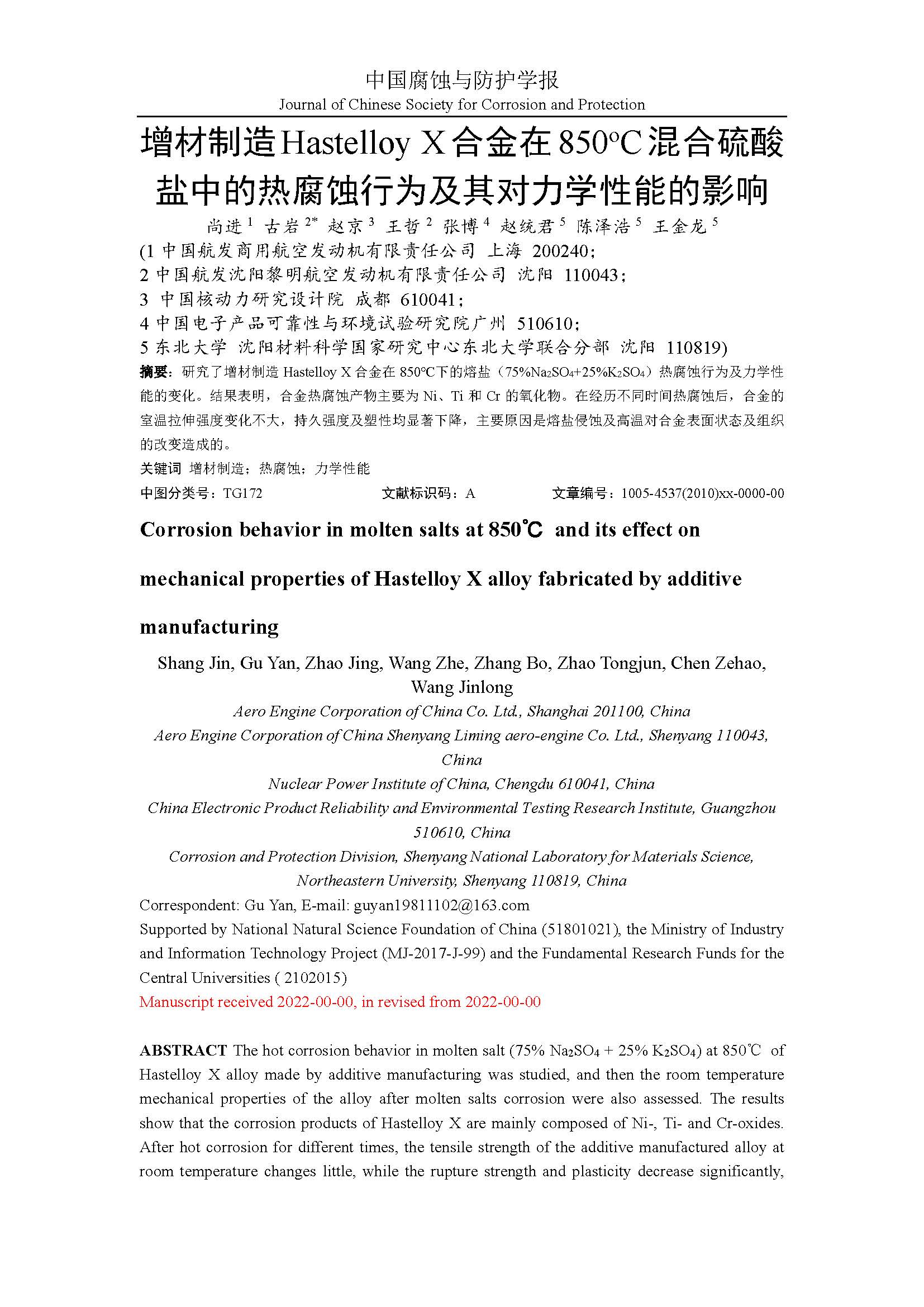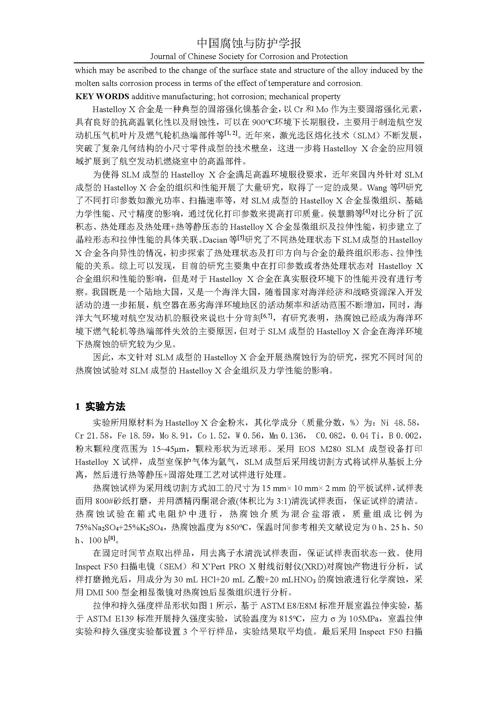 增材制造Hastelloy X合金在850o C混合硫酸盐中的热腐蚀行为及其对力学性能的影响