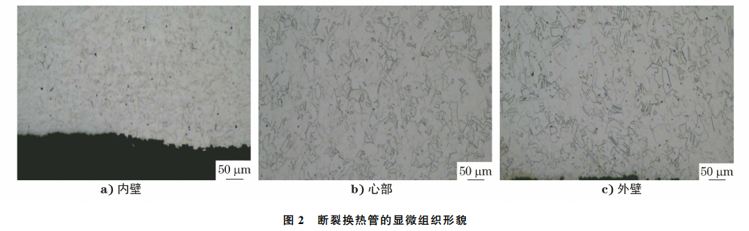 在断裂换热管截面处取样进行金相检验,结果如图2所示。