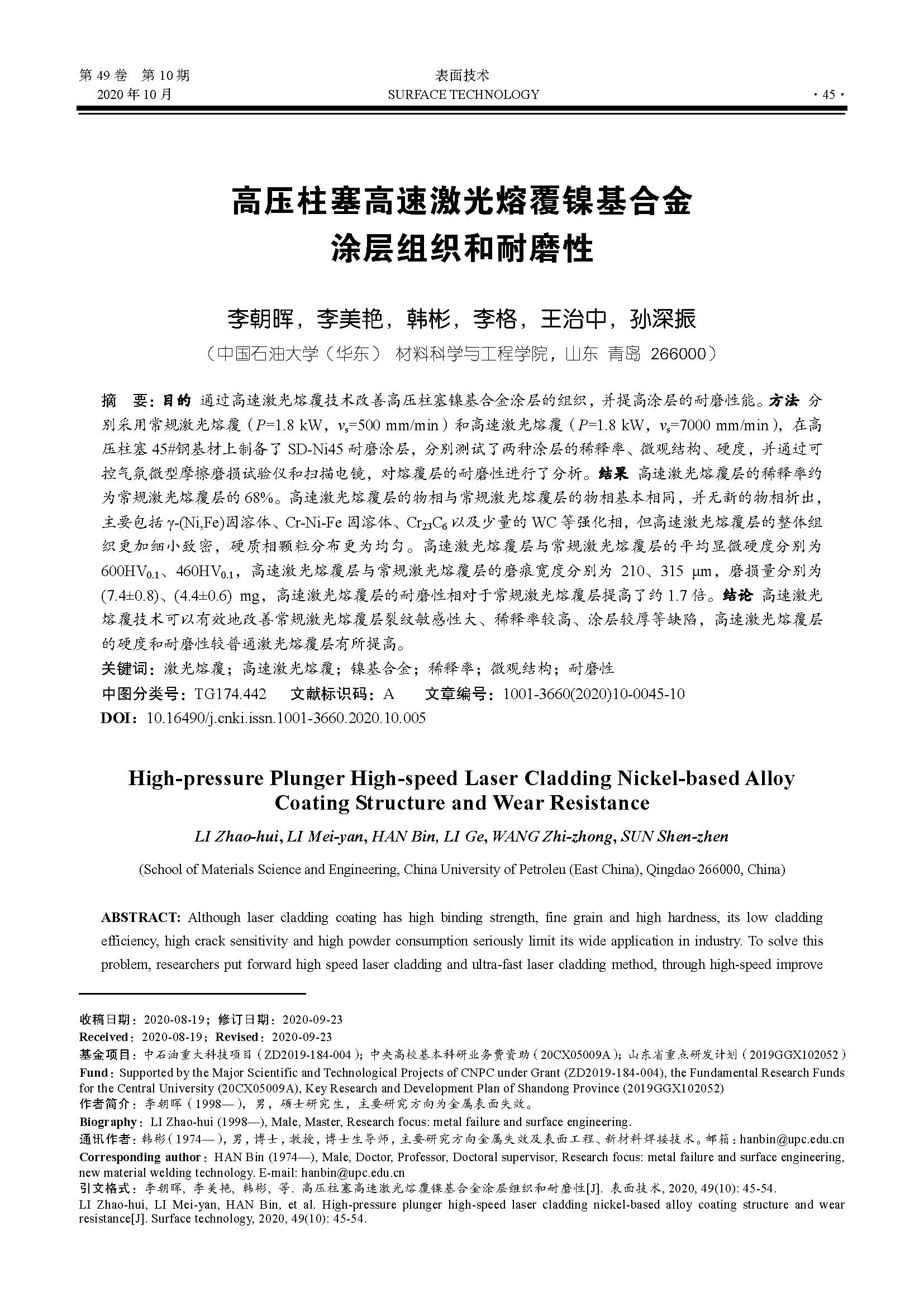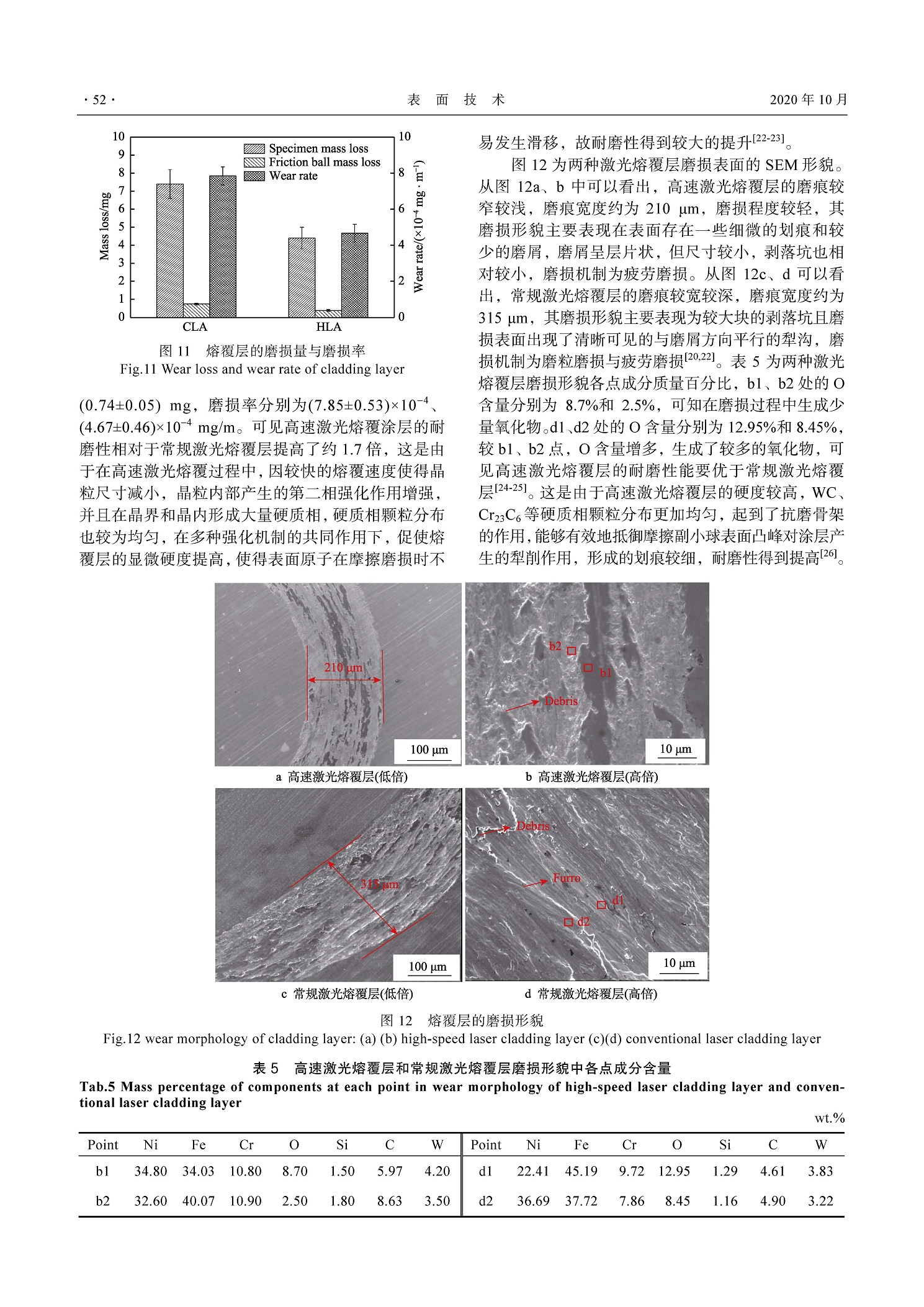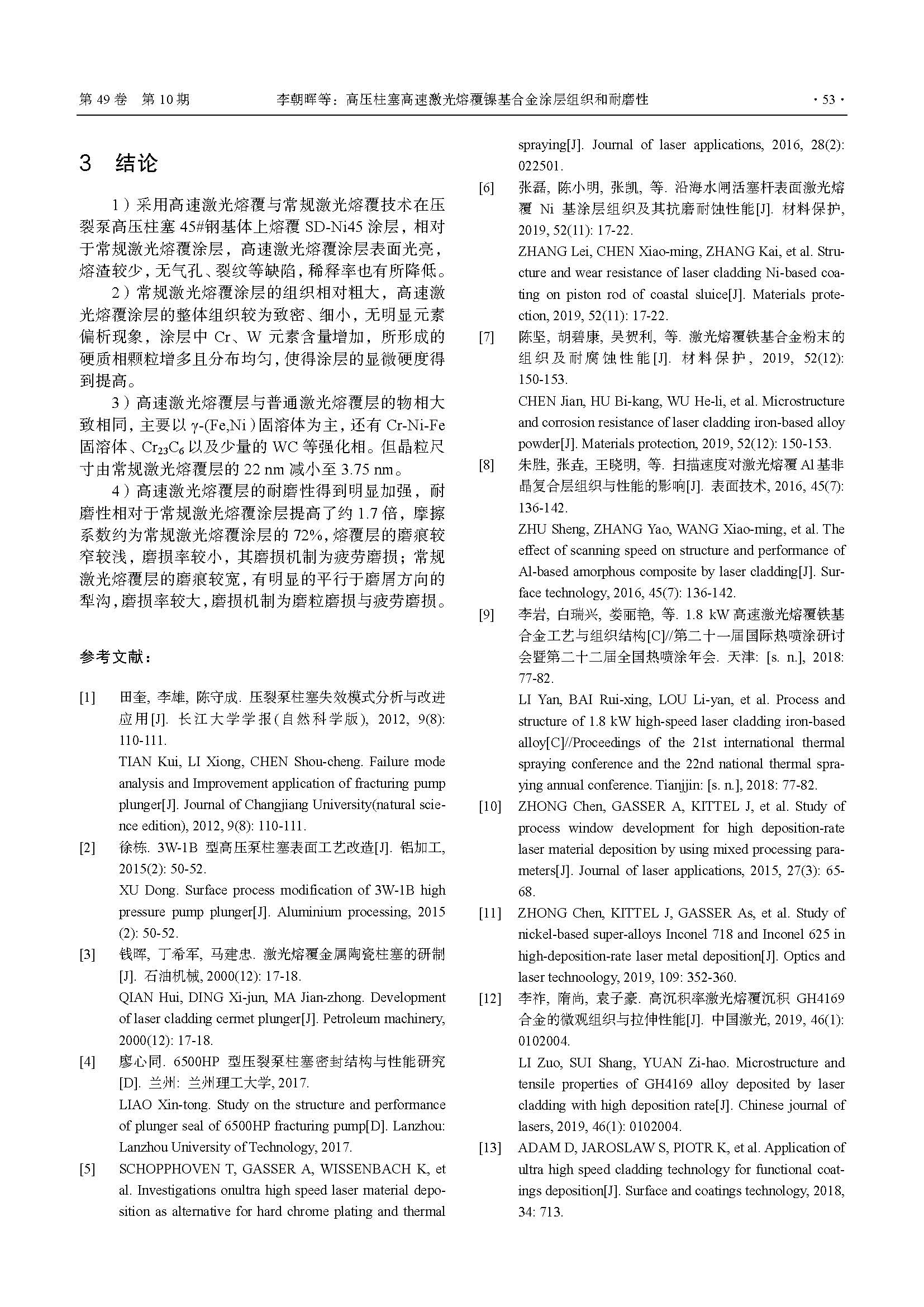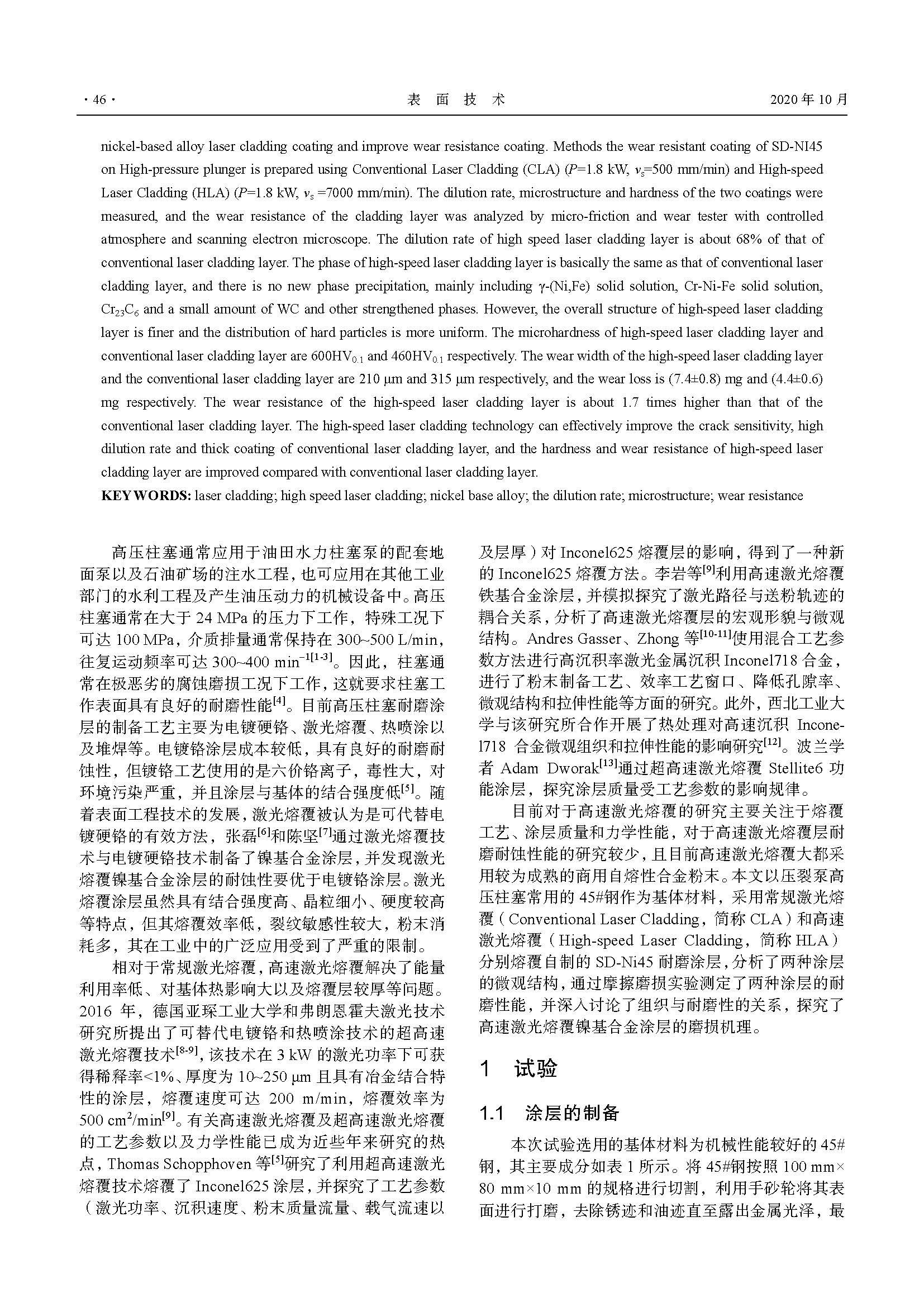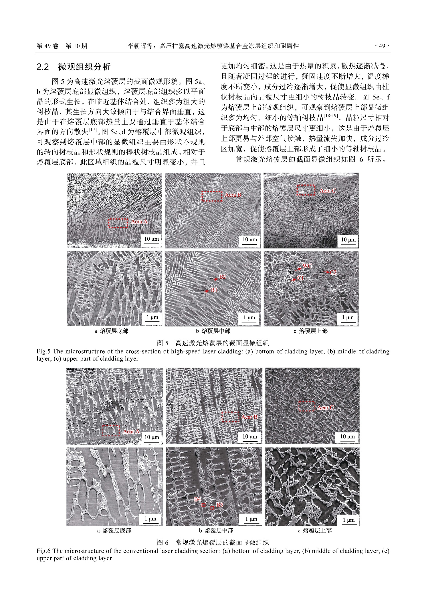高压柱塞高速激光熔覆镍基合金涂层组织和耐磨性