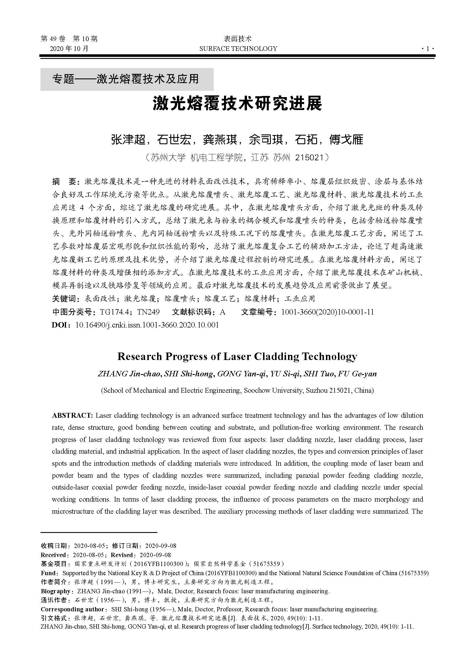 高压柱塞高速激光熔覆镍基合金涂层组织和耐磨性