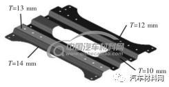 由于考虑纵梁前部的弯折工艺,在C形截面的基础上,纵梁前部删除部分翻边,改为U 形截面。