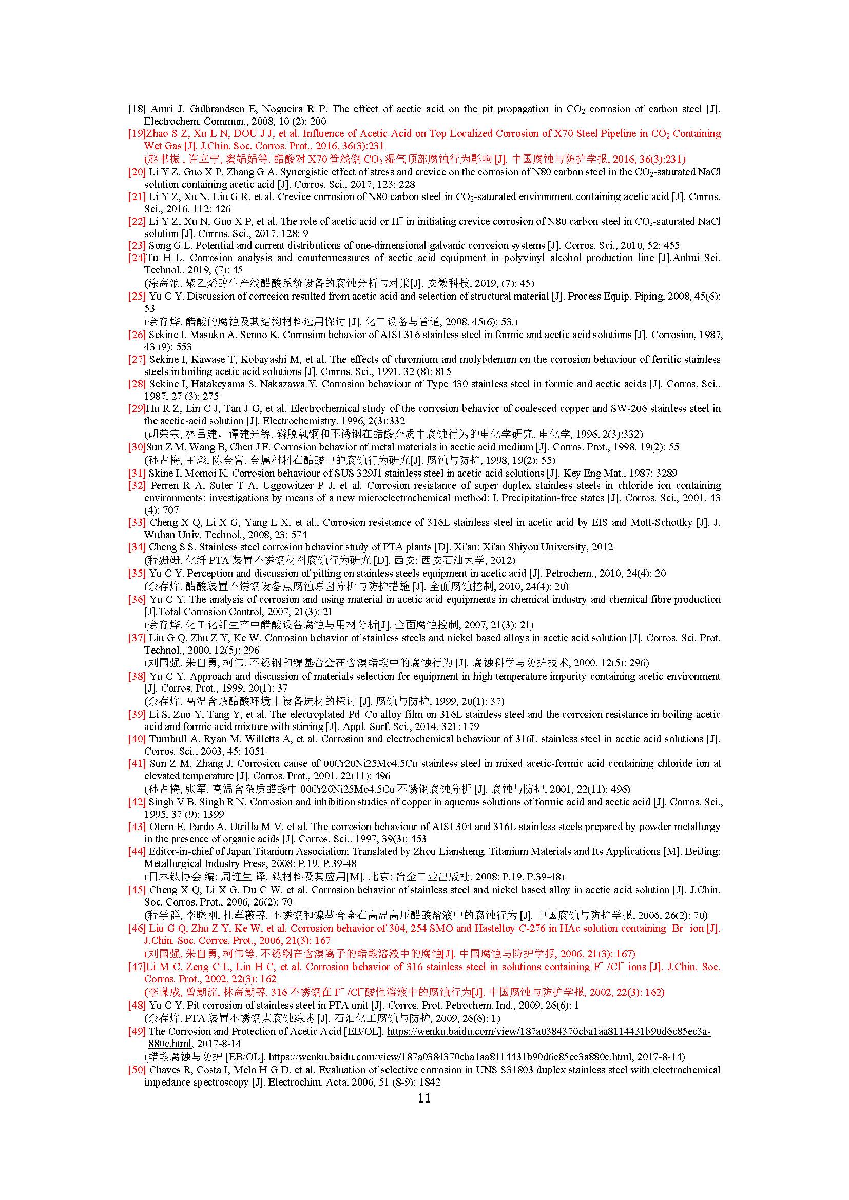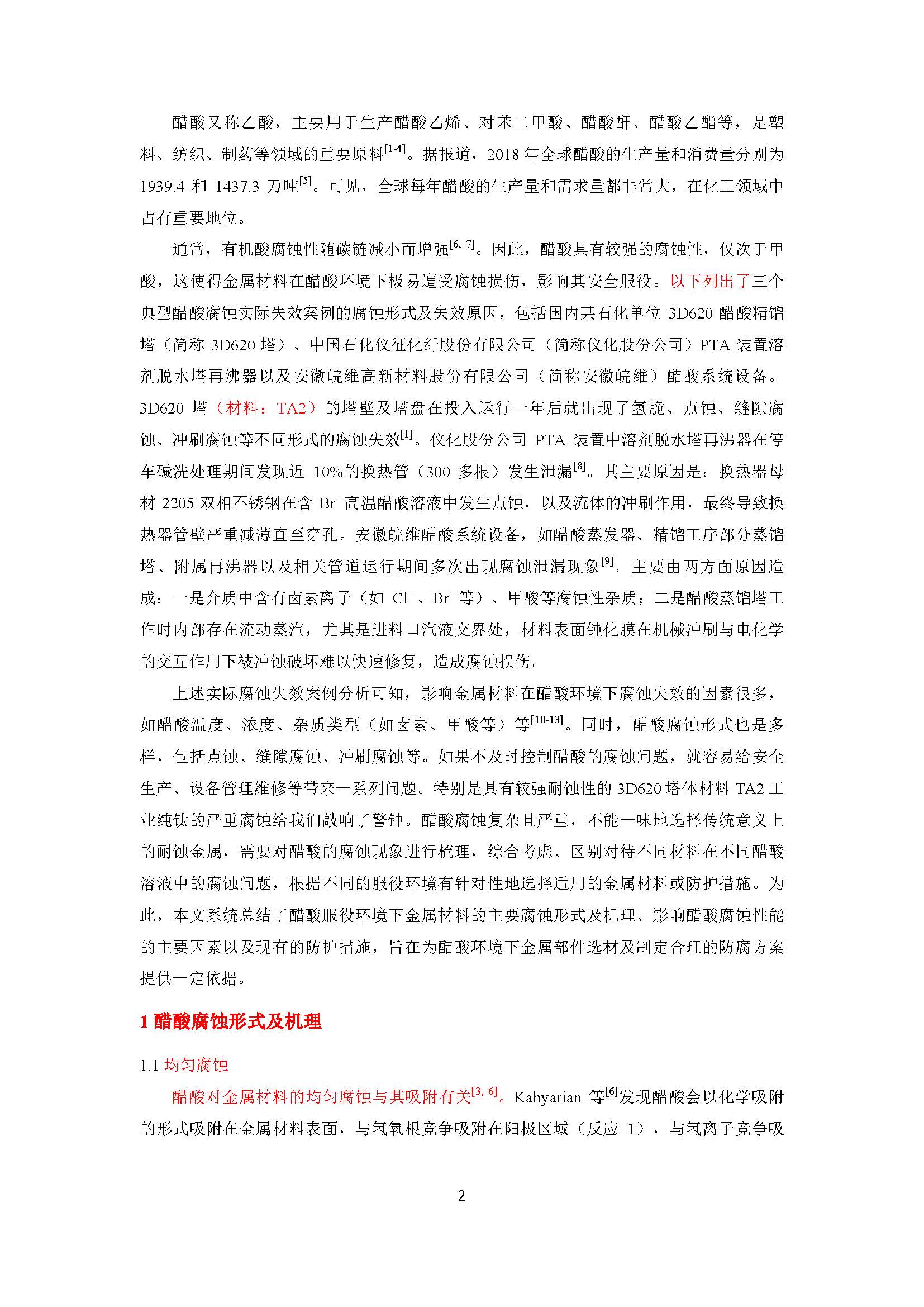 醋酸环境下金属材料腐蚀行为的研究进展