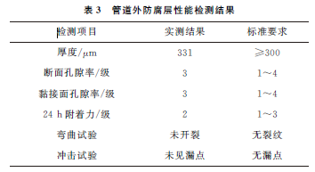 依据SY/T 0315—2013 《钢质管道熔结环氧粉末外涂层技术规范》,选取远离开裂部位外防腐层进行检测,结果如表3所示。由表3可知:管道外防腐层性能检测结果符合SY/T 0315—2013的要求。