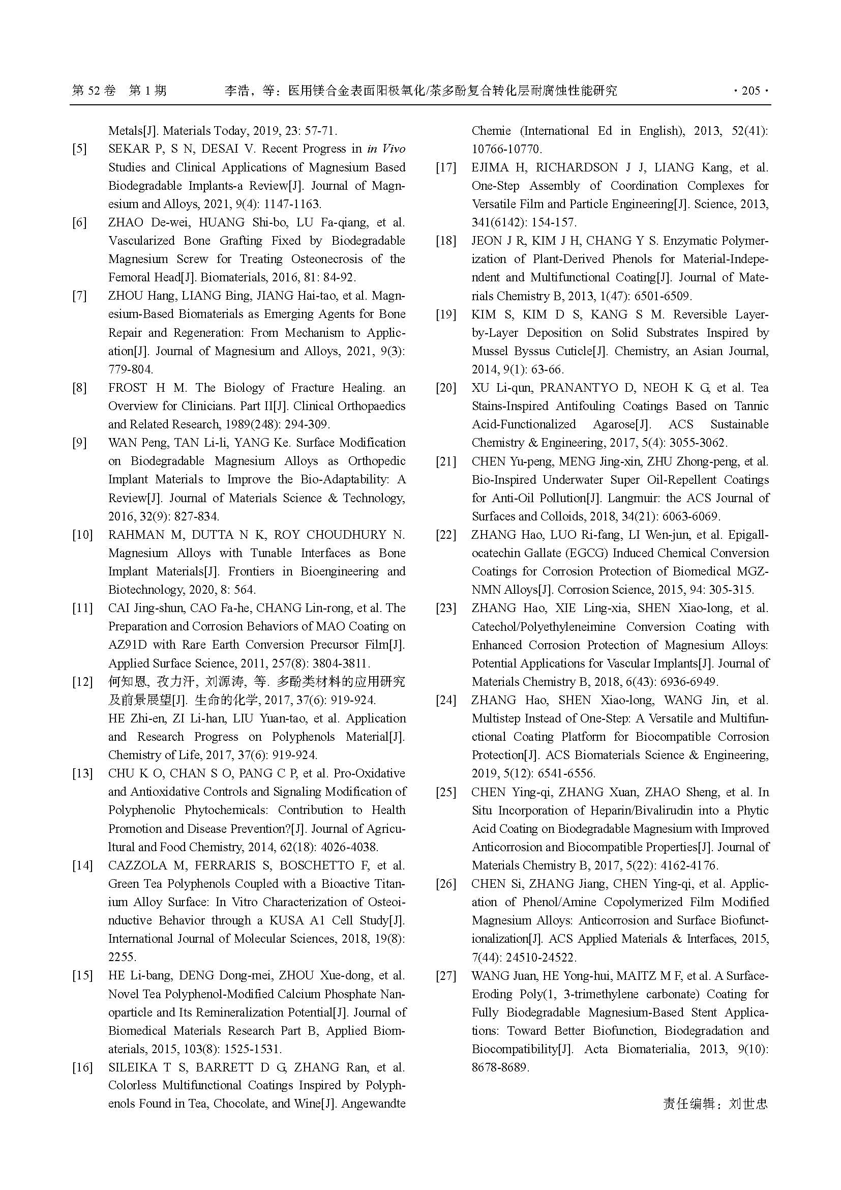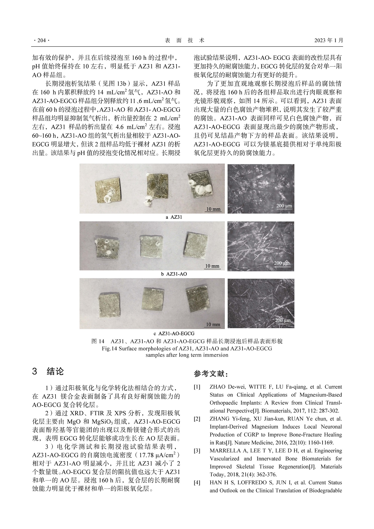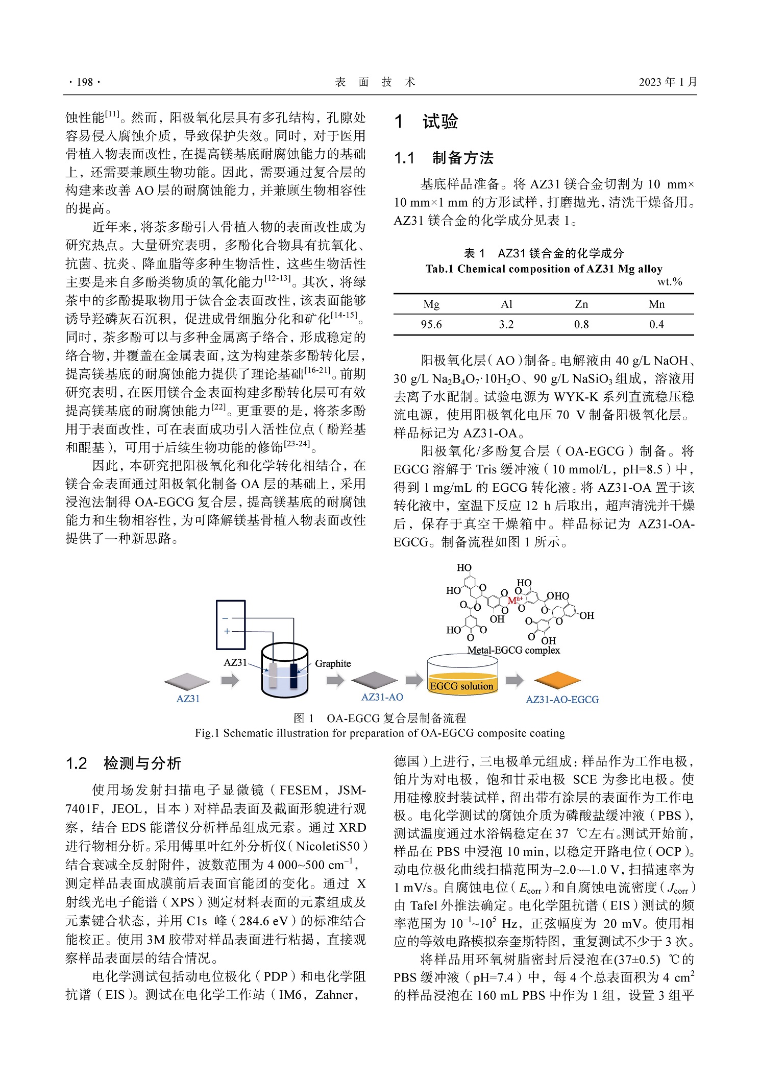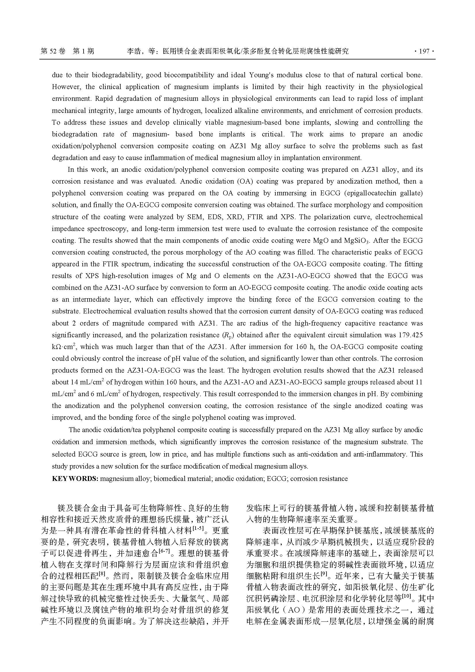 医用镁合金表面阳极氧化/茶多酚复合转化层耐腐蚀性能研究