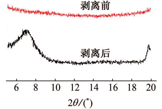通过图1可观测到经过剥离处理后的蒙脱土特征峰向左偏移,所以(001)晶面的晶面间距变大甚至完全剥离。