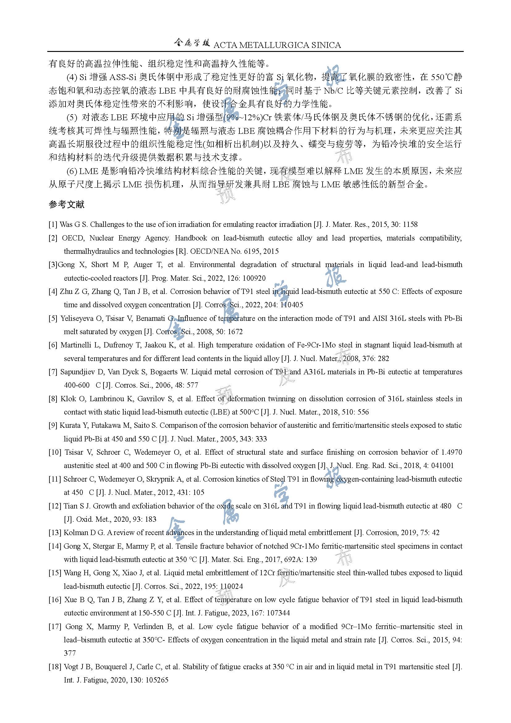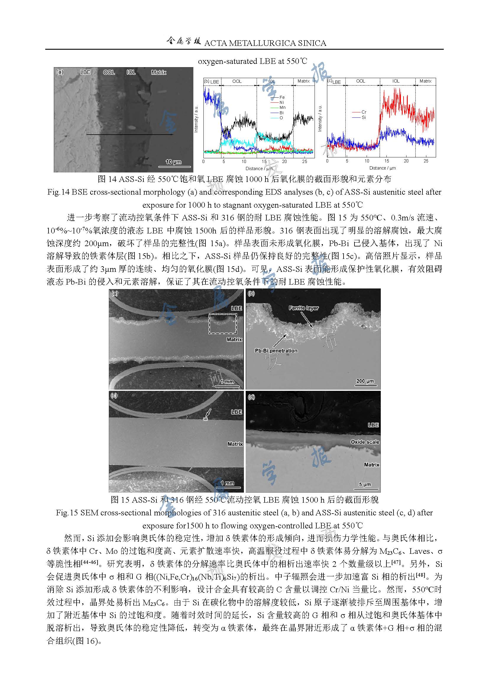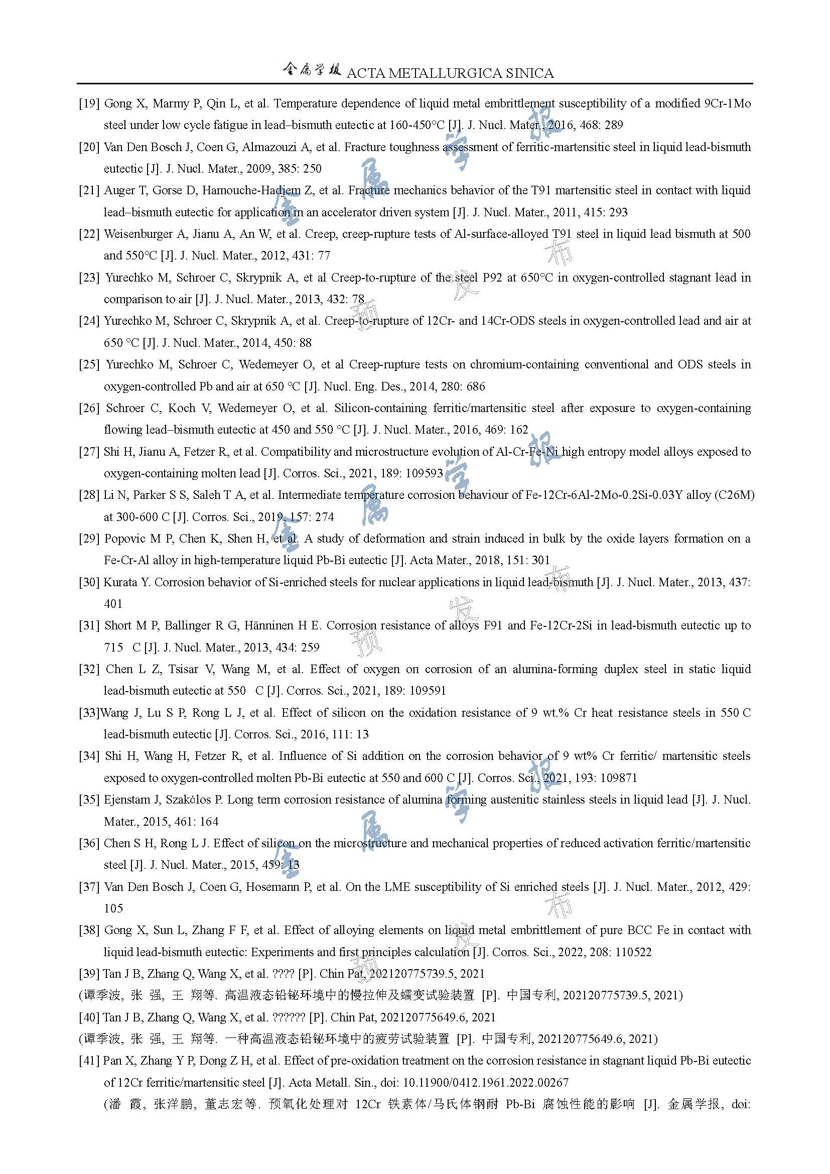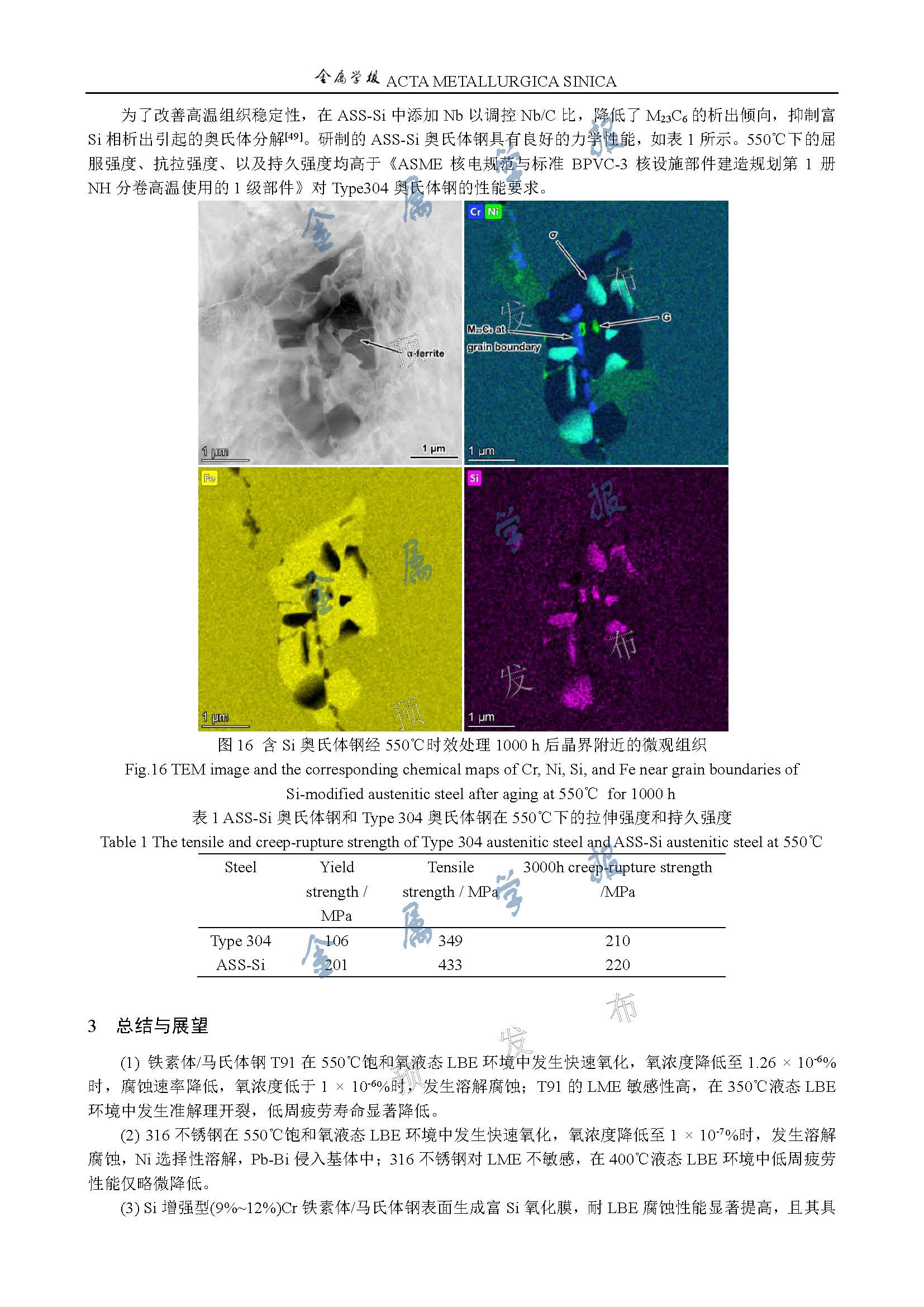 耐铅铋腐蚀铁素体/马氏体钢和奥氏体不锈钢的研究进展
