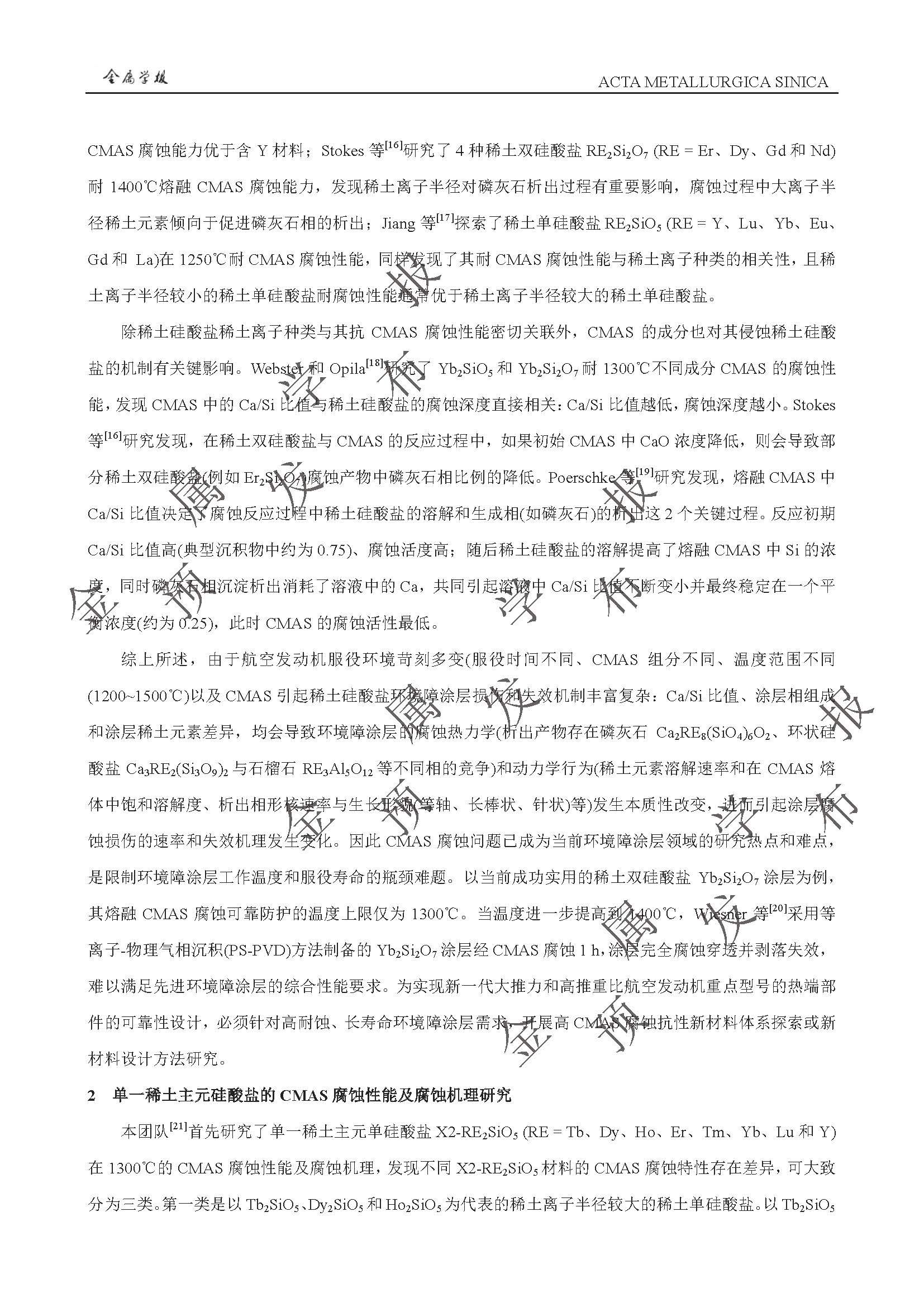 以抗CMAS 腐蚀为目标的稀土硅酸盐环境障涂层高熵化设计与性能提升