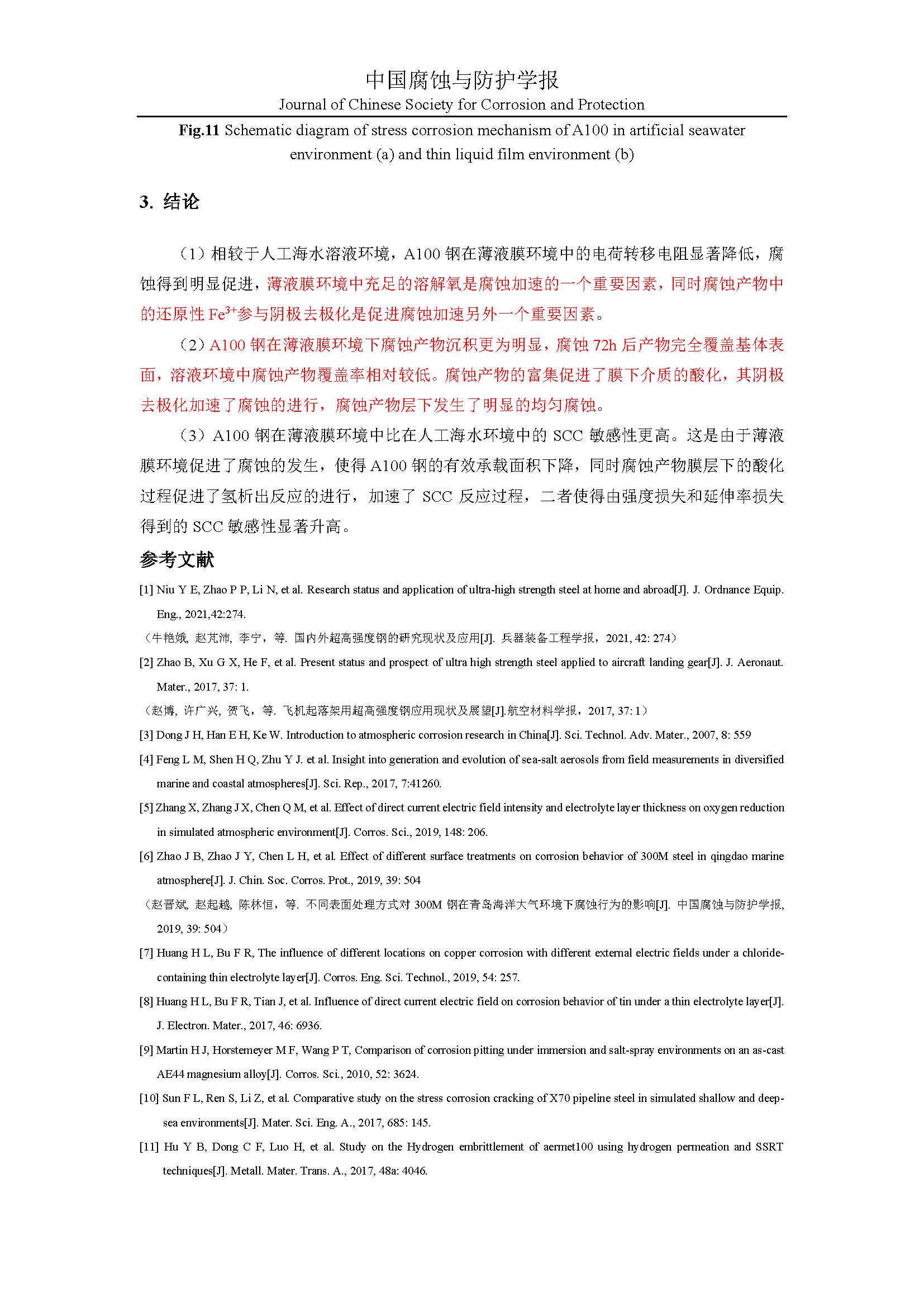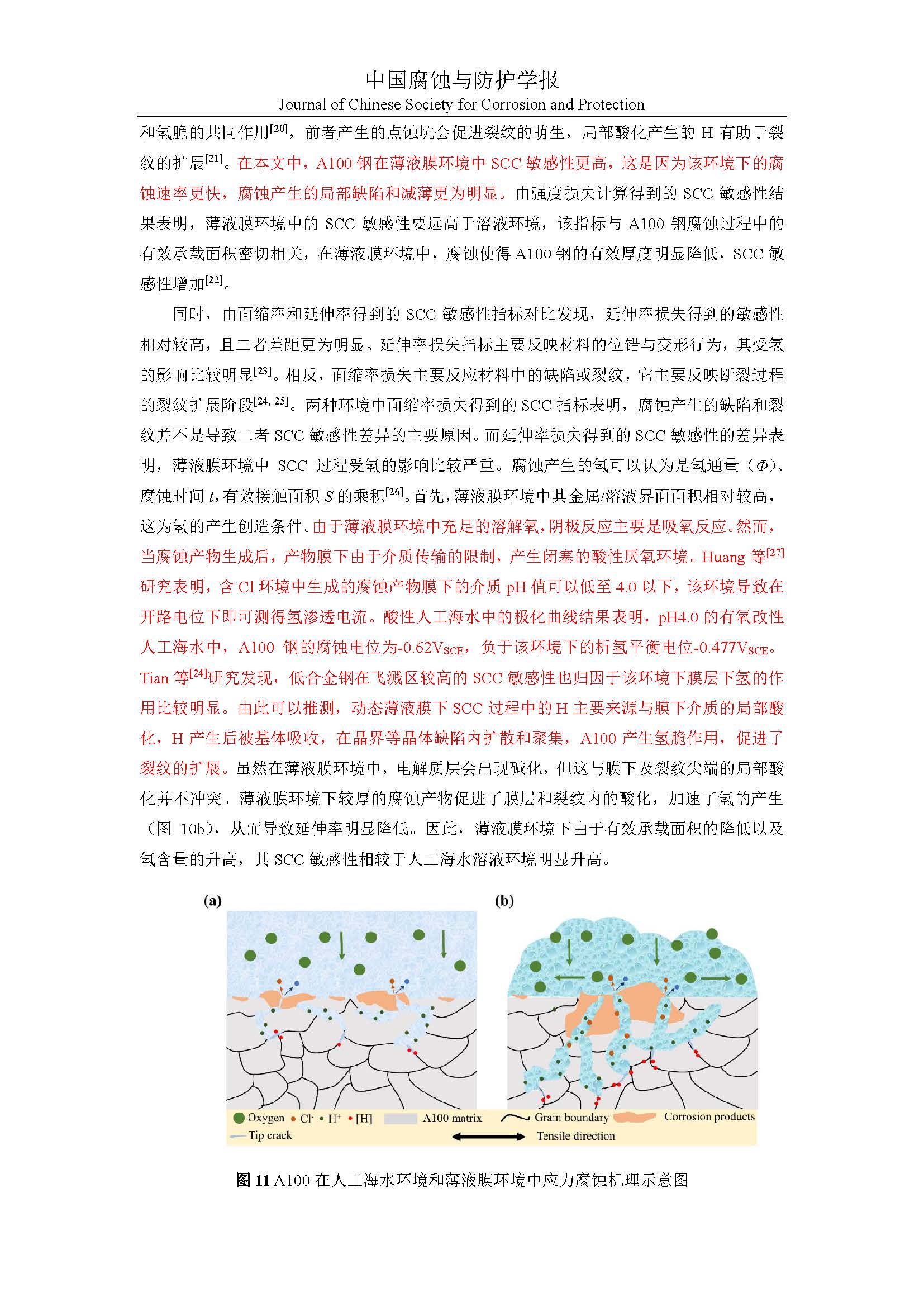 A100 在动态薄液膜和人工海水环境中的应力腐蚀行为对