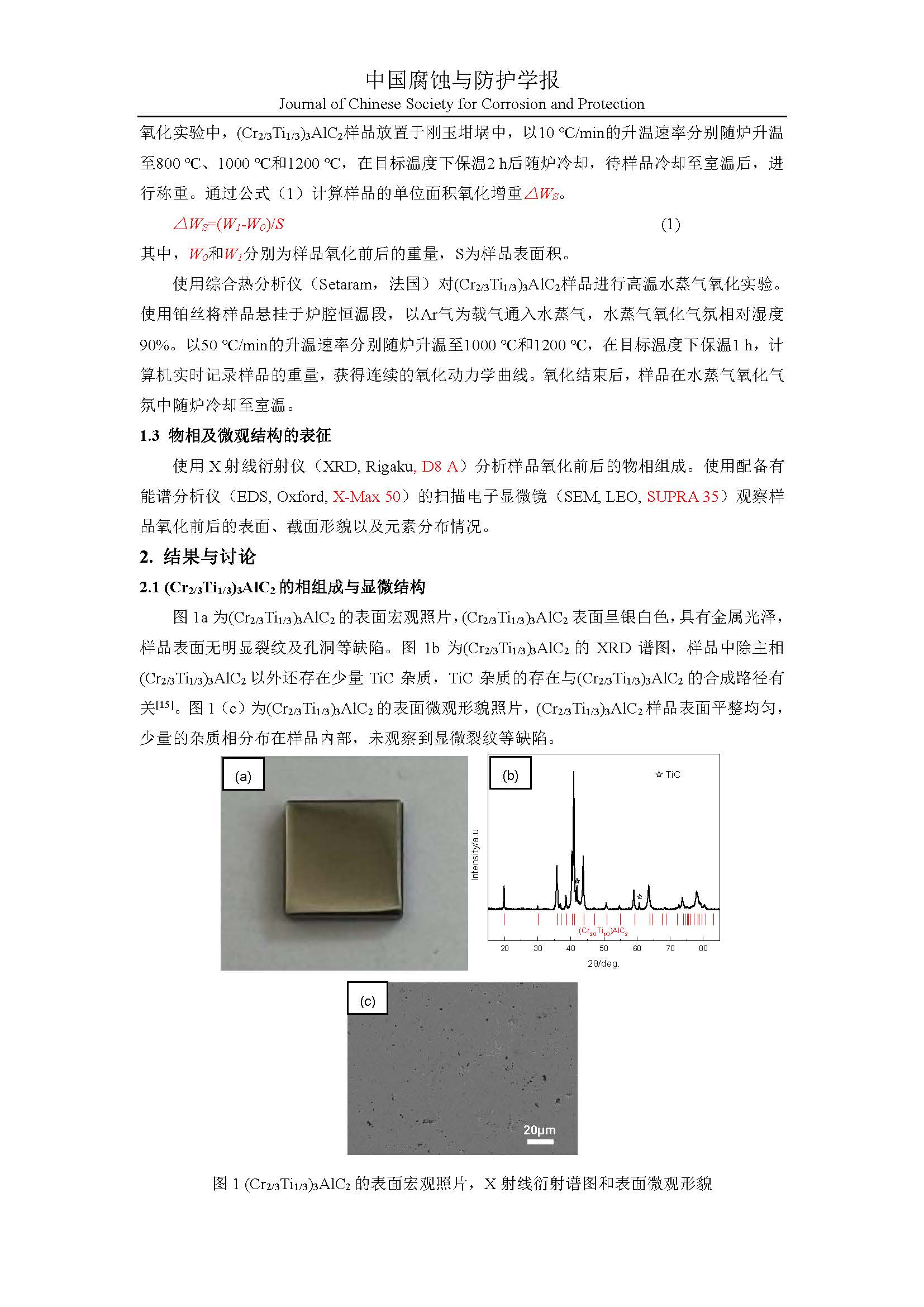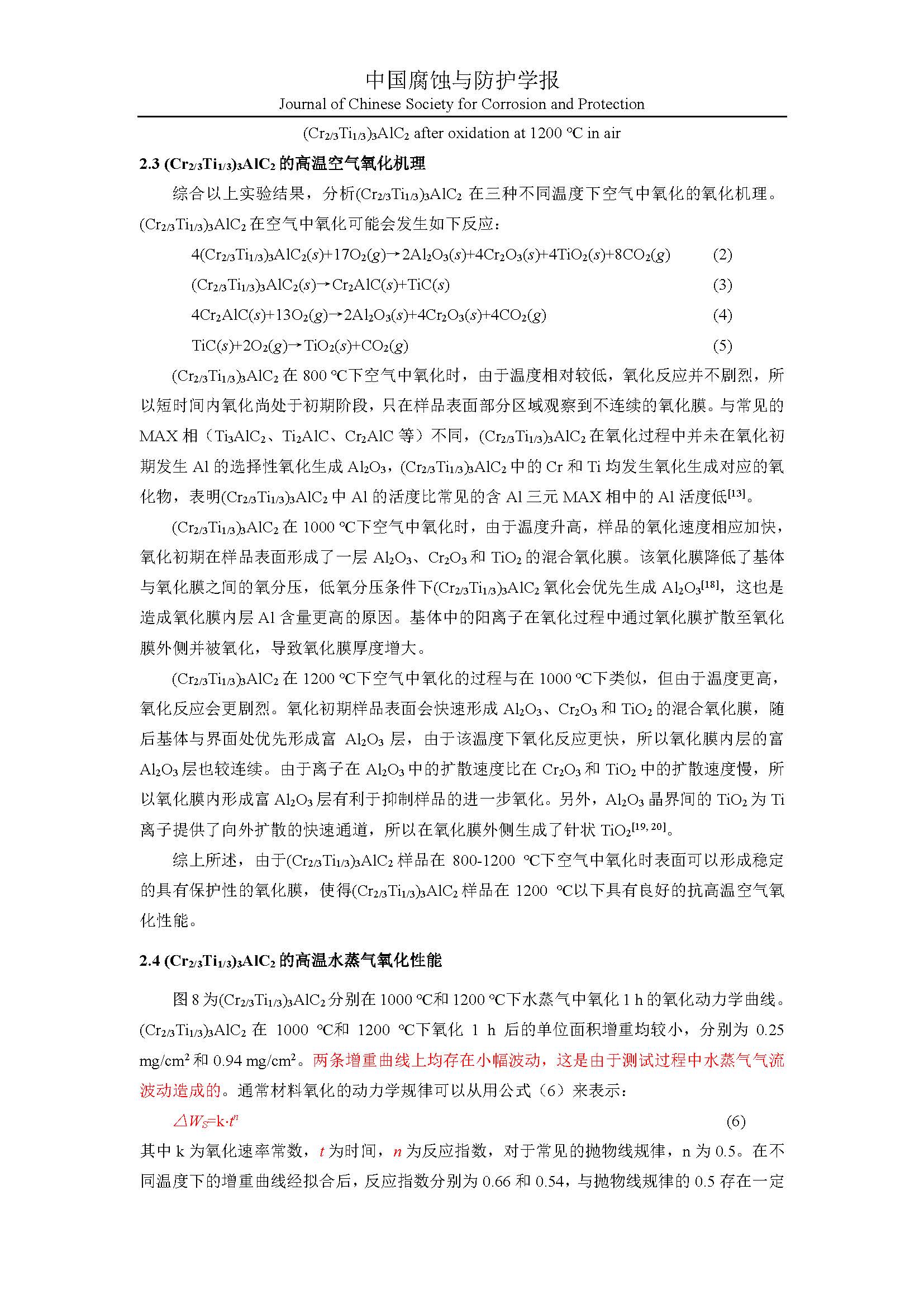 四元 MAX 相(Cr2/3Ti1/3)3AlC2在高温空气以及水蒸气气