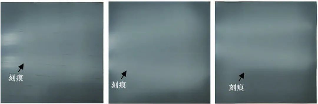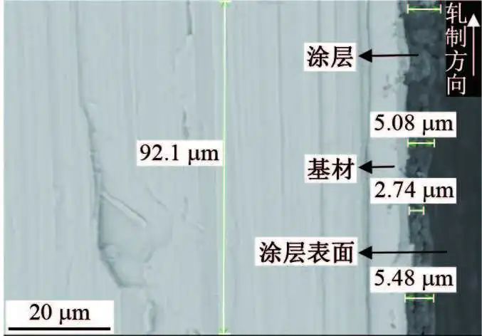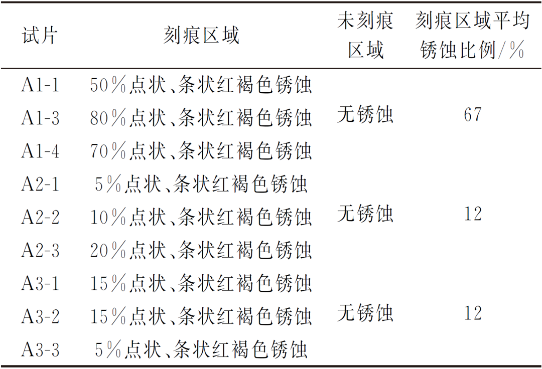 取向硅钢是一种通过形变和再结晶退火生产且晶粒择优取向的硅铁合金,通常作为变压器铁芯材料在电力行业广泛应用。随着能源行业快速发展及电力工业节能降耗的迫切需求,不断改善硅钢性能,降低其铁芯损耗(铁损),成为硅钢制造行业的竞争焦点与备受关注的研究课题。目前降低铁损的主要方法是磁畴细化技术,即通过减小取向硅钢磁畴宽度来降低反常涡流损耗(铁损的重要组成)的一类物理方法,包括机械刻痕法、激光刻痕法、等离子束照射法和局部加热法等。当前各大制造厂商主要采用激光刻痕法来降低铁损。 激光刻痕法是用激光束照射有绝缘涂层的取向硅钢表面,使其高温熔解、挥发,冷却后无规则凝聚,形成一定间距的线状或点状刻痕。在激光刻痕瞬间,涂层因高温过热会发生以沸腾和喷溅为形式的相爆炸而形成重熔物、飞溅物乃至孔洞等,刻痕区域涂层厚度均匀性和平整性遭到一定程度破坏,基材出现裸露,这增大了取向硅钢锈蚀的风险。目前,对于取向硅钢的研究主要是针对生产工艺优化和表面涂层性能改良,对于刻痕板的研究也只是对刻痕工艺,关于取向硅钢表面刻痕后的涂层变化和耐蚀性还缺乏系统的研究。随着电子、电气行业的持续发展,取向硅钢产能逐年增加,各大钢厂对取向硅钢刻痕板表面耐蚀性越来越重视,希望建立统一的试验室评价方法和完善的评价体系,优化取向硅钢表面激光刻痕工艺。 本工作以国内某大型钢厂生产的激光刻痕高磁感系列取向硅钢板为研究对象,通过表面微观形貌观察和化学成分检测,对比刻痕区域和非刻痕区域形貌、成分差异,分析激光刻痕技术对取向硅钢表面涂层的厚度、均匀性、平整性及耐蚀性的影响;通过硫酸铜点滴试验,分析激光刻痕取向硅钢板基体裸露情况;通过交变湿热试验和动态接触湿热试验对试片进行加速腐蚀,根据试片表面锈蚀程度分析激光刻痕对取向硅钢耐蚀性能的影响。 试验材料 试验材料为国内某大型钢厂生产的单面激光刻痕高磁感型取向硅钢板,刻痕状态为条状,沿钢板轧制方向延长,横向间距5 mm;试验钢板分为3个生产批次(分别标记为A1,A2,A3);每批次钢板数量为3~5张(A4纸大小,分别标记-1,-2,-3,-4,-5),从卷板不同的位置取样。 试验前用无水乙醇对钢板表面进行清洗,去除表面杂质、灰尘,干燥密封后保存。通过Phenom ProX型扫描电子显微镜观察钢板表面的微观形貌、测量刻痕尺寸,观察重熔物和孔洞分布,生成钢板3D图,观察钢板截面形貌;利用附带能谱仪对钢板表面元素进行分析。 激光刻痕形貌 图1 取向硅钢板激光刻痕区域的形貌 由图1可见,刻痕沿钢板轧制方向延长,刻痕长度为646 μm,宽度为98.3 μm;刻痕区域凸凹不平,凸起和凹坑分布无明显规律,统计结果显示凹坑占比大于85%,最大凹坑直径为19.8 μm。这是由于激光照射取向硅钢板表面使涂层高温熔解、挥发、冷却后无规则凝聚,形成大量的重熔物和孔洞,从而破坏了取向硅钢板表面涂层厚度的均匀性和平整性。 刻痕区域重熔物、孔洞分布 刻痕区域出现白点,且刻痕区域白点明显多于非刻痕区域,这说明钢板表面涂层已出现重熔物和孔洞,激光刻痕已经对涂层平整性造成破坏。刻痕区域重熔物和孔洞的比例反映了钢板表面涂层被破坏的程度。对重熔物和孔洞进行统计,结果如图2所示。 图2 不同试样激光刻痕区域重熔物和孔洞的比例 由图2可见,不同生产批次钢板表面涂层被破坏区域比例最大相差30%,而同一生产批次钢板表面涂层被破坏区域比例最大相差40%,这说明激光刻痕技术工艺稳定性不佳,导致质量一致性存在一定差异。 涂层厚度和孔洞深度 采用扫描电镜观察钢板的3D形貌以及截面微观形貌,结果如图3和图4所示,并测量了刻痕区域孔洞深度及涂层厚度,结果表明,刻痕区域孔洞最大深度为6.10 μm,涂层最大厚度为5.48 μm,取向硅钢板刻痕区域孔洞处有可能出现基材裸露的情况。 (a) 表面 (b) 侧面 图3 试样A3-3的3D图 图4 试样A3-3截面的微观形貌 铁含量 对取向硅钢板表面不同区域的铁元素含量进行分析,非刻痕区域未检测出铁,说明非刻痕区域涂层表面质量良好,基材未出现裸露情况;对比刻痕区域孔洞处和平整处,孔洞处铁质量分数为78.62%,是平整处(0.69%)的113倍,说明刻痕区域孔洞处基材已经裸露;刻痕区域面扫结果显示,该区域铁质量分数为1.95%,进一步证明取向硅钢板刻痕区域已经出现基材裸露的情况。 耐腐蚀性能试验 硫酸铜点滴试验参考GB/T 15519-2002《化学转化膜 钢铁黑色氧化膜 规范和试验方法》,将处理后的试片(75 mm×50 mm)浸泡在25℃、0.1%硫酸铜溶液中10秒,然后匀速提出,用脱脂棉蘸取无水乙醇擦去试片表面残留的硫酸铜溶液,通过试片表面变色情况分析激光刻痕后取向硅钢板刻痕区域和非刻痕区域耐蚀性差异,结果见表1,试样表面的宏观形貌如图5所示。结果表明:未刻痕区域无锈蚀,刻痕区域出现点状和条状红褐色锈蚀,且平均锈蚀比例高达67%,说明刻痕区域基材出现大面积裸露情况,取向硅钢板耐蚀性下降;不同生产批次钢板锈蚀程度存在明显差异,锈蚀比例相差55%;同一批次钢板不同位置的锈蚀比例也相差30%,这进一步说明激光刻痕技术工艺稳定性和质量一致性较差。 表1 各试样硫酸铜点滴试验结果 图5 硫酸铵铜点滴试验后试样A1-3,A2-2,A3-3表面宏观形貌 试验室加速腐蚀试验包括交变湿热试验和动态接触湿热试验。 交变湿