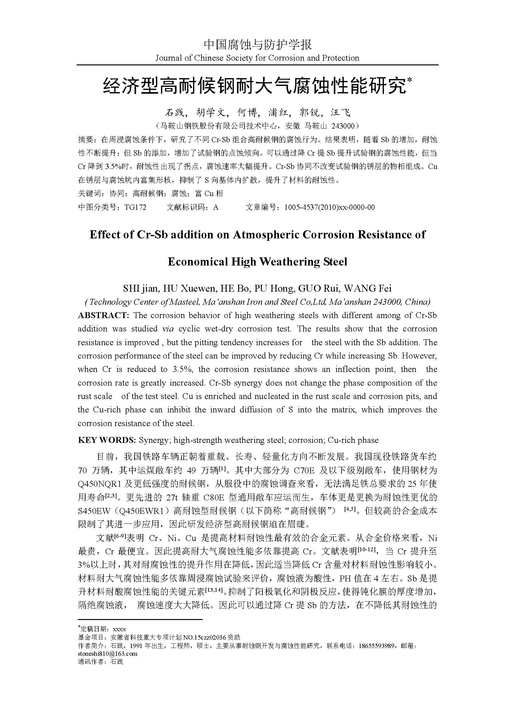 经济型高耐候钢耐大气腐蚀性能研究