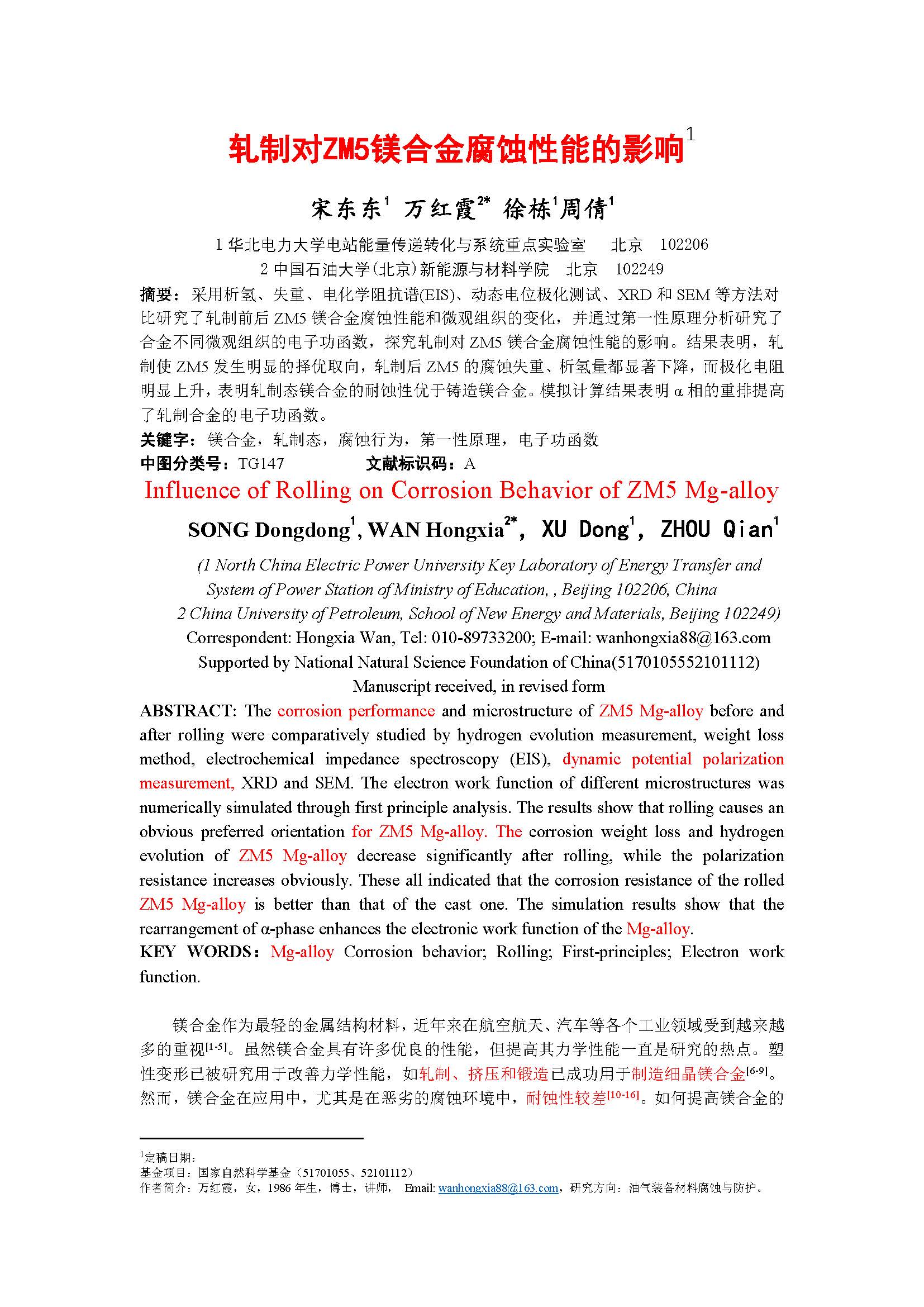 轧制对ZM5镁合金腐蚀性能的影响研究