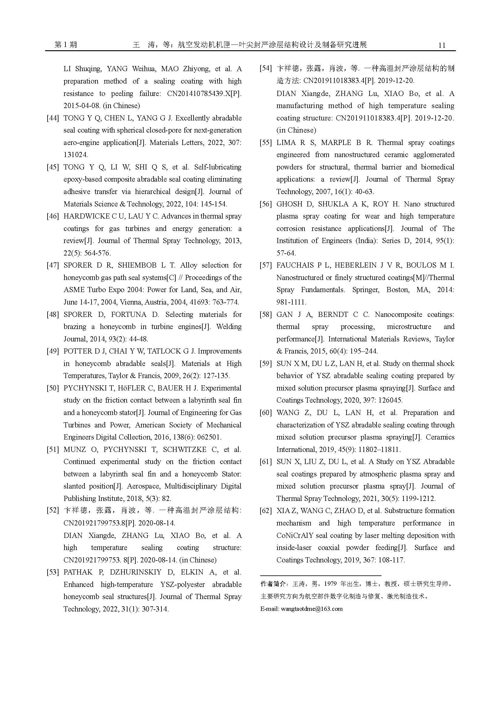 航空发动机机匣—叶尖封严涂层结构设计及制备研究进展
