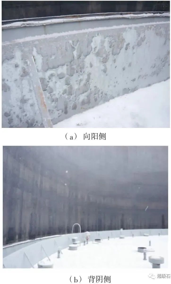 (5) 抗风圈踏板、扶梯的支撑等与罐壁焊接的附件位置,要做好与保温外护层的密封或采取导流措施,防止自然降雨通过支撑接触罐壁,造成保温层变潮湿进而形成腐蚀条件。